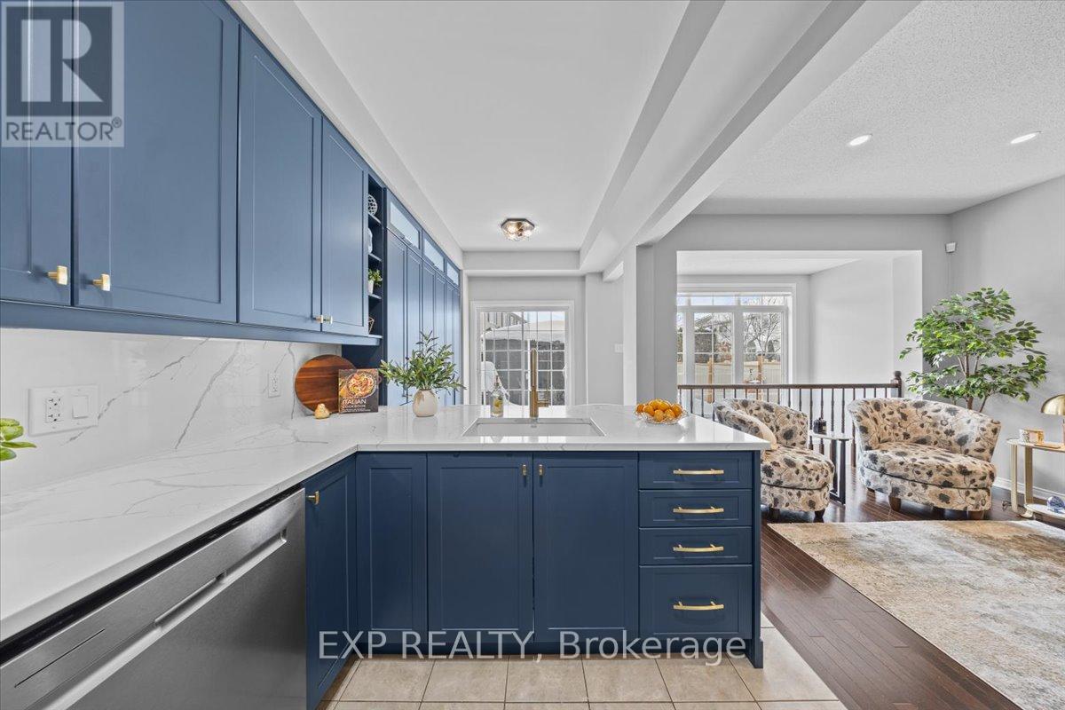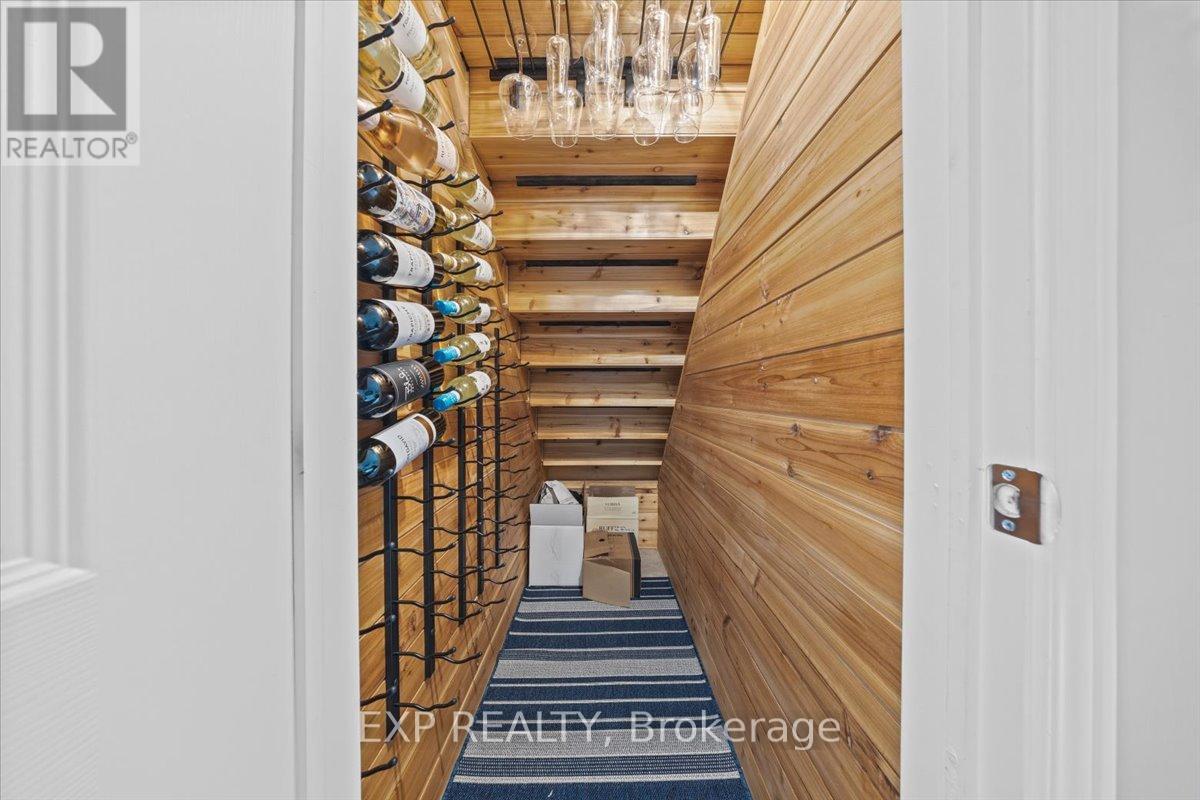 END UNIT EXECUTIVE TOWNHOME!!! This stunning Monarch-built 3-bedroom, 3-bathroom home features beautiful, rich hardwood flooring throughout the main floor and upper-level wowing you the moment you walk in. A large, walk-in coat closet and powder room are conveniently located just inside the front door. The open floor plan dining and living spaces are designed to impress with expansive windows flooding the space with natural light. The beautiful, updated kitchen (2021) is equipped with under-mount lighting, a gas stove, French door refrigerator, quartz countertops and backsplash and a full wall of pantry cabinets. Ascend the stunning wooden staircase to the upper level, where you'll find a generously sized primary bedroom with TWO walk-in closets, one with a recently added beautiful Pax wardrobe system and a spacious ensuite bathroom. Two additional bedrooms provide ample accommodation, while a large family bathroom and second-story laundry room enhance practicality. The fully finished basement offers a rec room with a gas fireplace and a newly added cedar wine cellar. The stunning backyard deck, complete with a gazebo and raised garden beds, provides an inviting outdoor space. This beautiful family home, only a short 10-minute walk to SmartCentres Kanata is an absolute must-see property!! (id:64974)