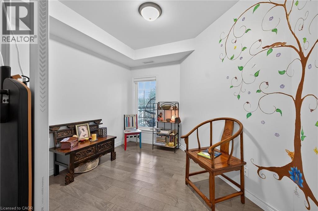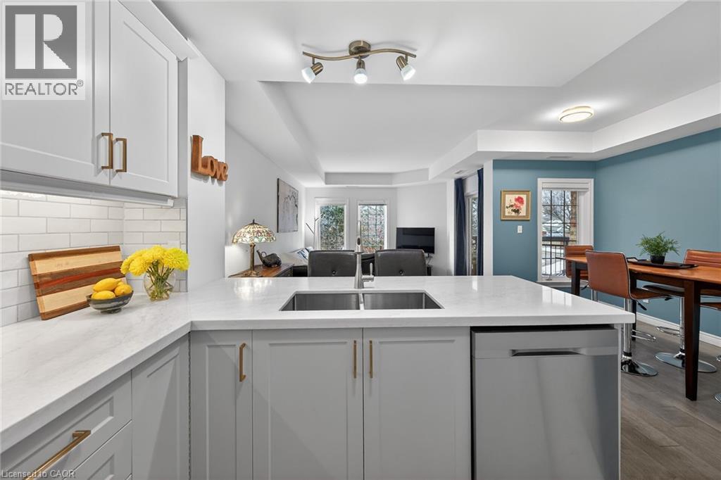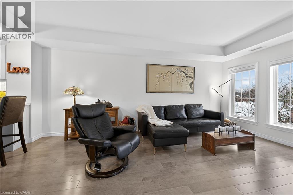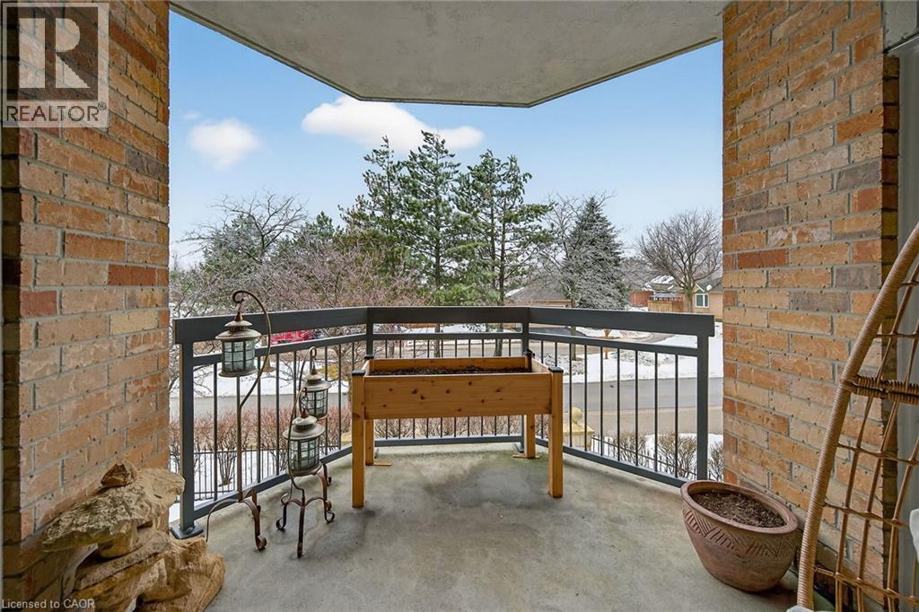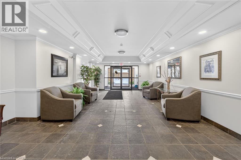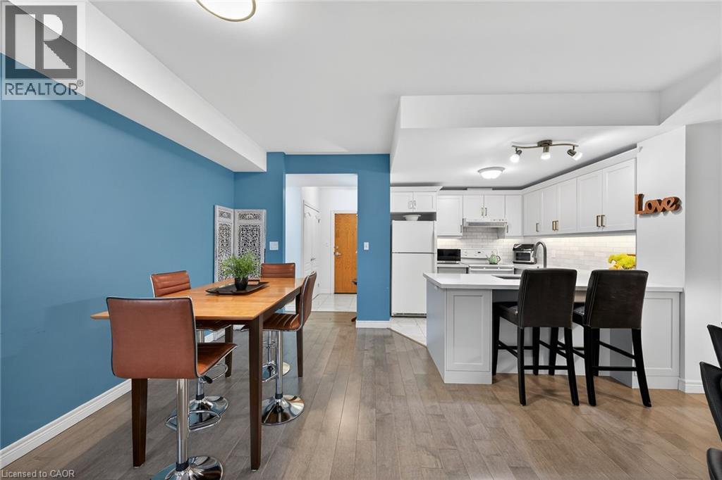 WELCOME TO TWENTY PLACE! The ultimate in adult lifestyle living! This spacious two bedroom, two bathroom condo apartment features an in-suite laundry room with good storage space, two owned parking spaces and an owned locker. If you like to entertain, you'll love this open concept floor plan with a beautifully updated kitchen which overlooks the living room and dining room, featuring porcelain tile flooring, modern cabinet doors, quartz countertops with breakfast bar, undercabinet lighting and sharp backsplash tiles. Beautiful engineered hardwood flooring is featured throughout most of this clean, move-in ready suite. The private, west-facing balcony is surrounded by mature trees, has a pond view, and is accessible from the living room, as well as from your primary bedroom! Aside from the amenities available to you in the building, which has two elevators, you're just a few steps to the spectacular residents' clubhouse. Here, you'll enjoy the indoor pool, sauna, whirlpool, the gym, library, games and craft rooms, and a large party room for the many great events held in the community. There is also tennis/pickleball court, shuffleboard and much more! When you think of low-maintenance, turn-key living, think Twenty Place! One of Southern Ontario's most popular adult-lifestyle communities! (id:64974)