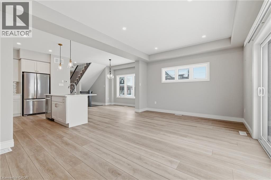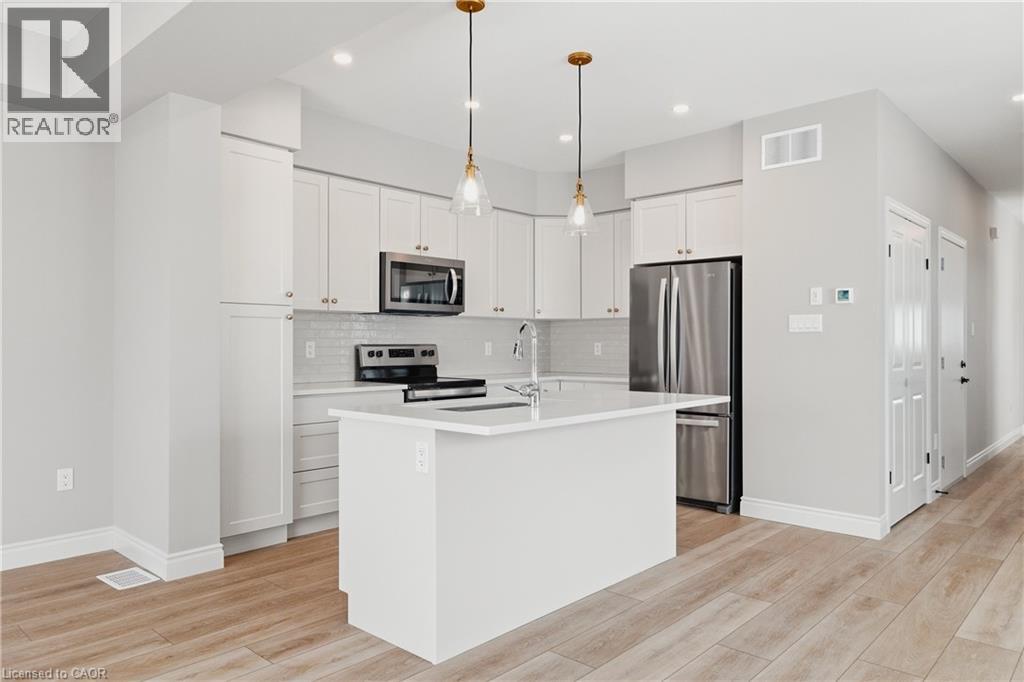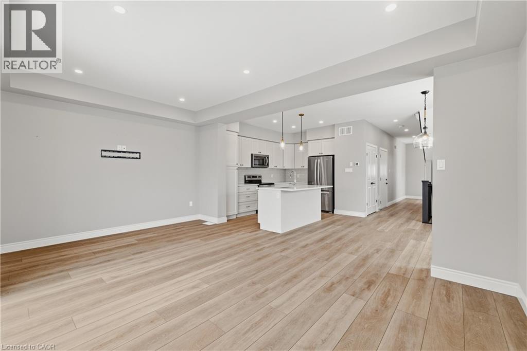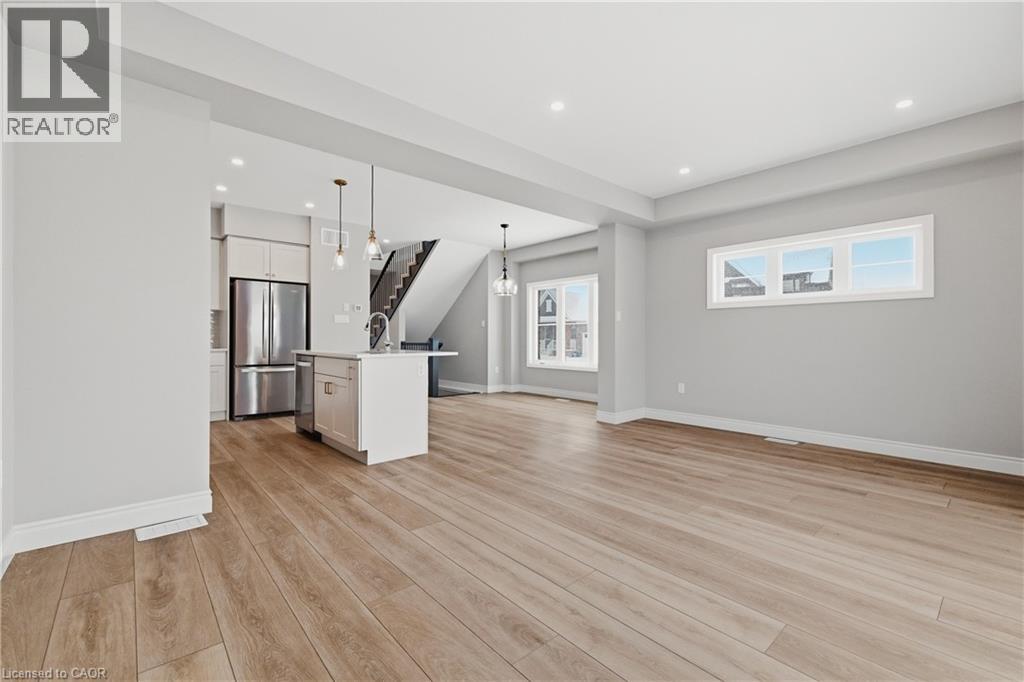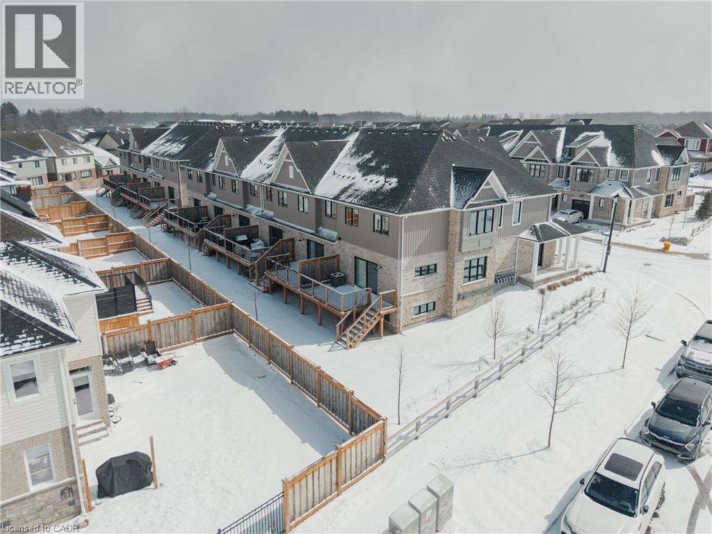 Welcome to easy, modern living in the South River community of Elora. This bright and beautifully finished end unit townhouse offers the perfect blend of style, space, and convenience, all just a short walk to the shops, restaurants, and charm of downtown. Built in 2022 and thoughtfully upgraded throughout, this home features an open concept main floor with 9 ft ceilings and an abundance of windows that fill the space with natural light. The kitchen is both functional and elevated, complete with upgraded cabinetry, quartz countertops, and seamless flow into the living and dining areas, ideal for everyday living or hosting. Offering 3 bedrooms and 3.5 bathrooms, this home provides flexibility for families, guests, or a work from home setup. Upstairs, a versatile loft space creates the perfect spot for a home office, reading nook, or additional lounge area. The fully finished basement adds even more living space, complete with a 3 piece bathroom, making it ideal for a rec room, guest suite, or private retreat. Additional upgrades include a drywalled garage with opener, custom laundry cabinetry, and a clean, modern aesthetic throughout. Step outside to a large deck, perfect for relaxing or entertaining, while enjoying the ease of low maintenance living. Condo services take care of lawn care, irrigation, and winter road clearing, giving you more time to enjoy everything Elora has to offer. Vacant and ready for quick possession, this is a move in ready opportunity in one of Elora’s most sought after communities. (id:64974)