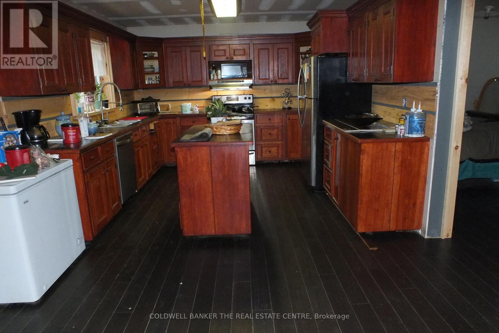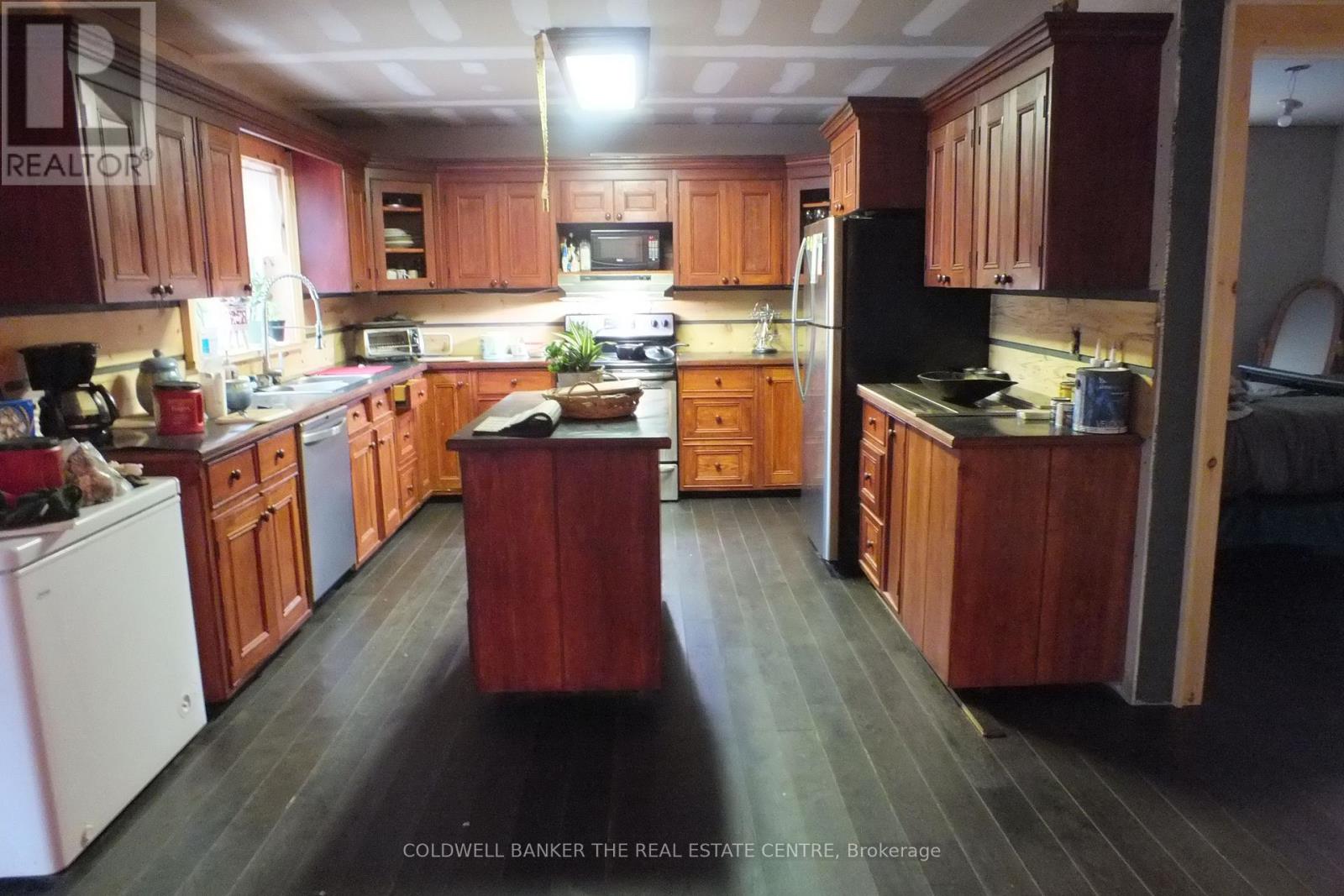 Home on Manitoulin Island, surrounded by ceder trees, view of farm land. Beautiful kitchen with custom cupboards. Hardwood floors, open concept, w/o to 36 foot deck off living room. W/O basement with in floor heating. (id:64974)