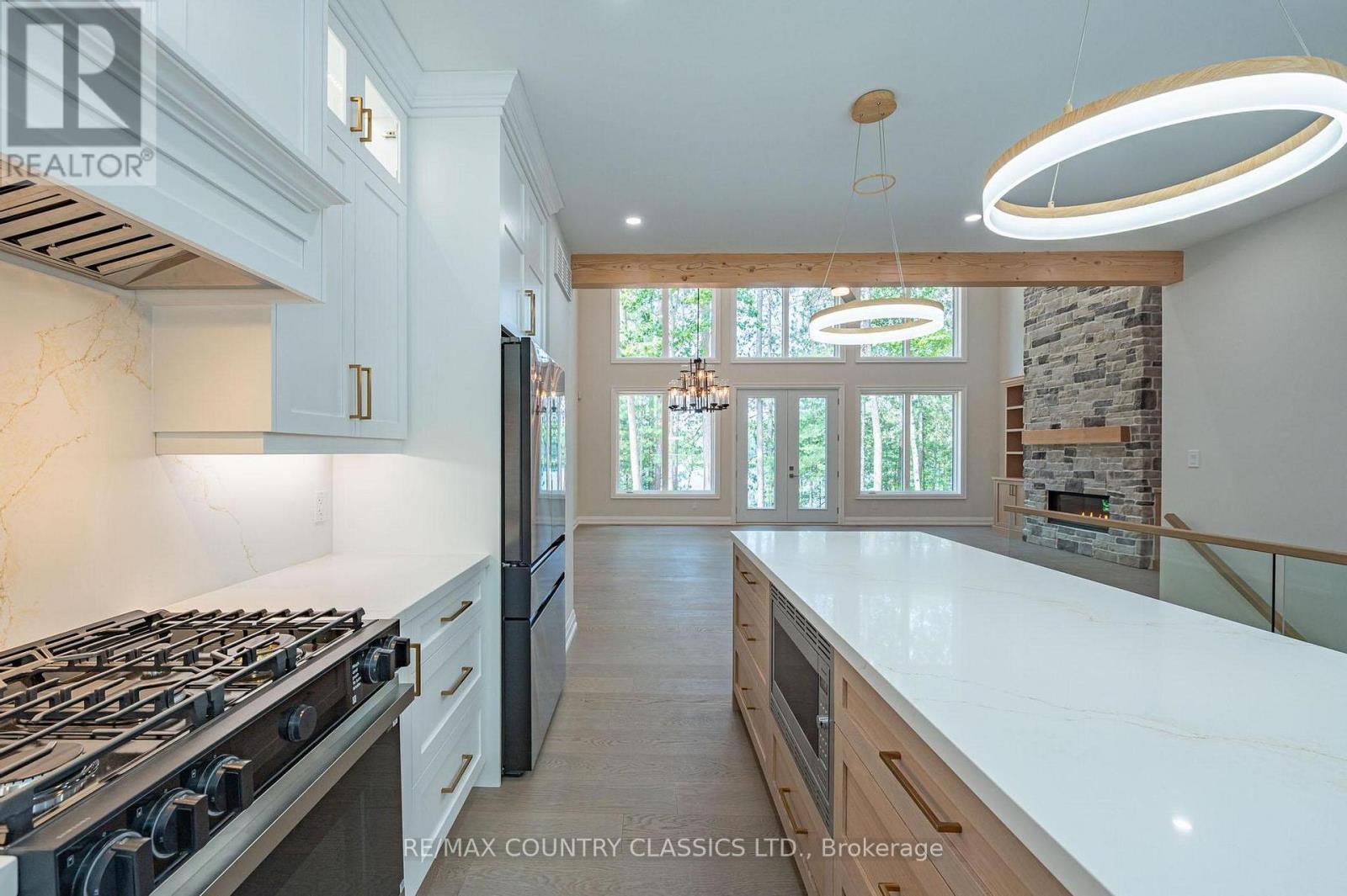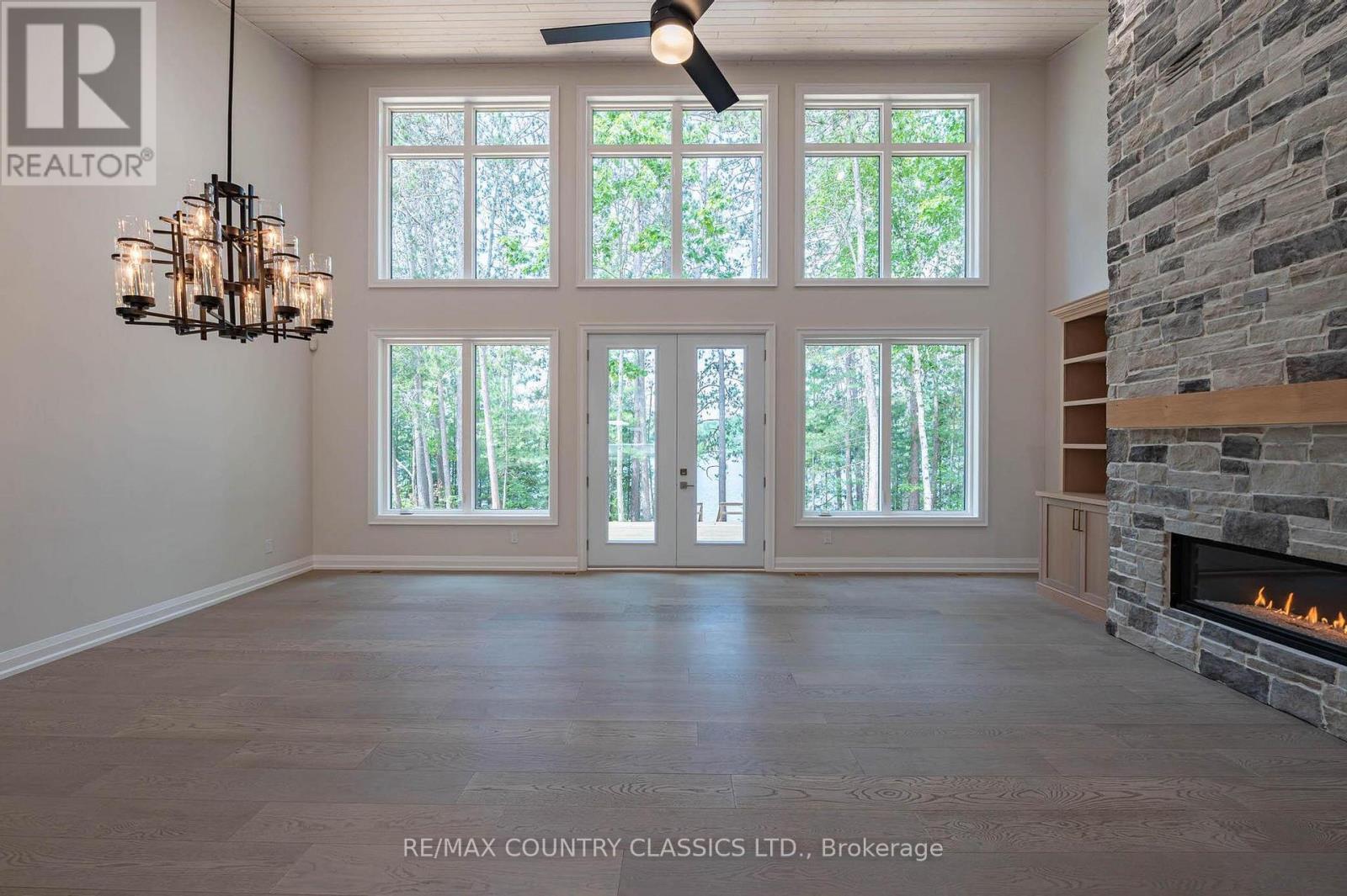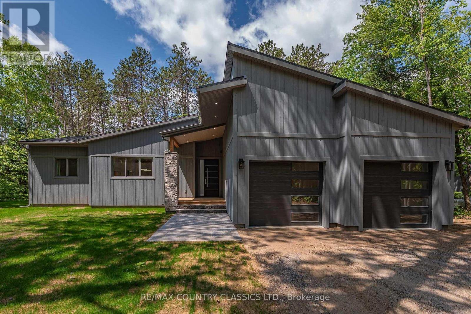 Welcome to your dream retreat on the shores of Bow Lake where luxury meets tranquility in this stunning five bedroom, three and a half bathroom, four season home. Perfectly positioned on a private cul de sac, with a west facing orientation, you'll savor breathtaking sunsets over the water, creating a picture perfect backdrop for your evenings. Crafted with high end finishes and appliances, this home showcases refined elegance in every detail. The spacious, open concept design allows for seamless entertaining, while large windows bring in natural light and offer panoramic lake views. A gourmet kitchen equipped with top of the line appliances and custom cabinetry makes cooking a delight, while cozy yet sophisticated living spaces feature a fireplace to keep things warm in cooler months. On the main level the Great Room and Kitchen with walk in pantry provide ample space for family and guests, while the primary suite offers a luxurious private retreat, complete with an ensuite spa like bathroom. An additional two bedrooms, four piece bathroom, laundry room as well as a half bathroom are designed with premium fixtures and elegant finishes, ensuring comfort and convenience. Downstairs, on the lower level, you will find a large recreation room, two additional bedrooms, a gym, an office, utility room and three piece bathroom. Step outside to experience true lakeside living whether it's from the expansive deck, the beautifully landscaped yard, or the private waterfront. The access is perfect for boating, swimming, or simply relaxing by the shore. The attached over sized two car garage offers plenty of space for vehicles and storage, making it easy to enjoy every season in this exceptional home. Located just ten minutes from Bancroft, ON, you'll enjoy the perfect blend of peaceful lake living with access to nearby amenities, charming shops, and outdoor adventures. This home is more than just a residence, it's a lifestyle waiting to be embraced. (id:64974)