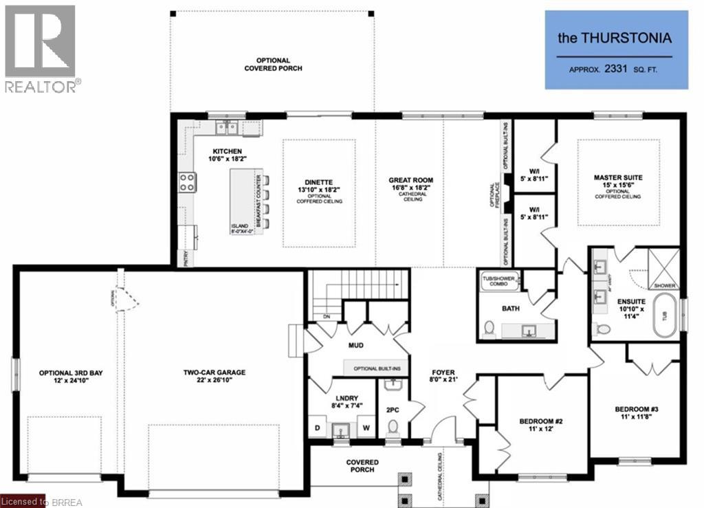 Introducing Small Town Luxury Living! Welcome to a to-be-built Thurstonia model by respected local builder Lecki Homes, offering 2,331 sq ft of thoughtfully designed living space above grade. This elegant bungalow blends timeless curb appeal with a layout built for modern living, flexibility, and long-term comfort. The heart of the home is the open-concept kitchen, dinette, and great room, designed for both everyday living and entertaining. The kitchen features a large island with breakfast bar, ample cabinetry, and a walk-in pantry, flowing seamlessly into the dinette and great room. Optional cathedral ceilings elevate the space, creating a bright, airy atmosphere ideal for gatherings or quiet evenings at home. The primary suite is privately positioned and offers a spacious walk-in closet along with a well-appointed ensuite. Two additional bedrooms are located on the opposite wing of the home, providing excellent separation for family, guests, or a home office setup. A convenient 2-piece bath, main-floor laundry, and mudroom with direct garage access add everyday practicality. Downstairs, a massive unfinished basement presents outstanding future potential with in-law capability, additional bedrooms, recreation space, or a custom layout tailored to your needs. Attached 3 Bay Garage plus additional 6 spaces on driveway. Buyers have the opportunity to customize finishes and select optional features, including covered porch options, allowing you to create a home that truly reflects your lifestyle. Located in the welcoming community of Otterville, this property offers the perfect balance of small-town charm, quality craftsmanship, and modern design. (id:64974)