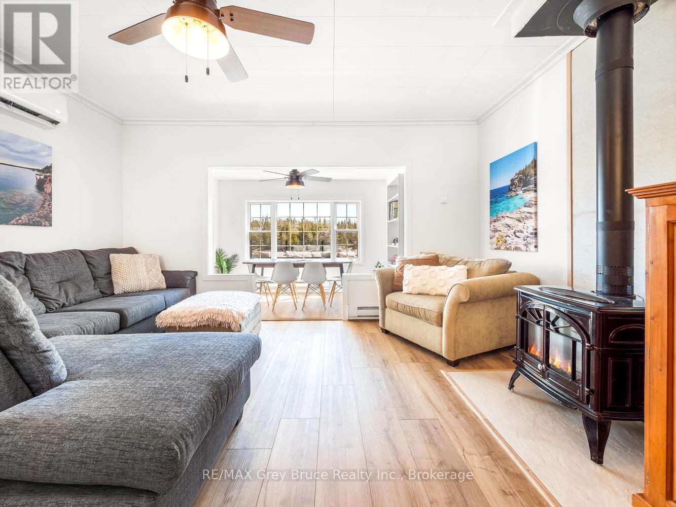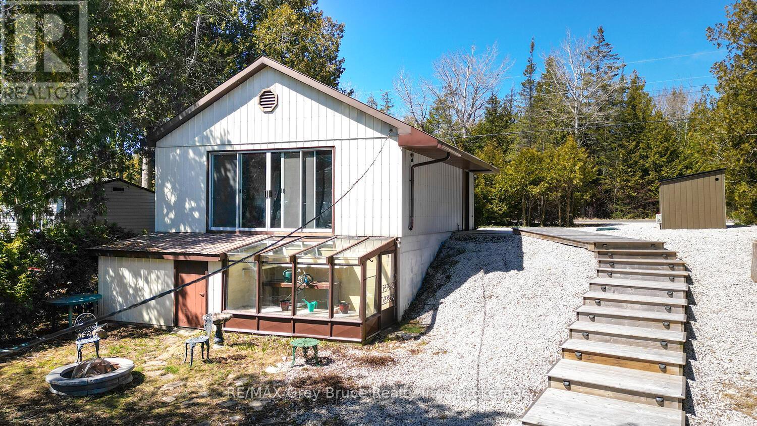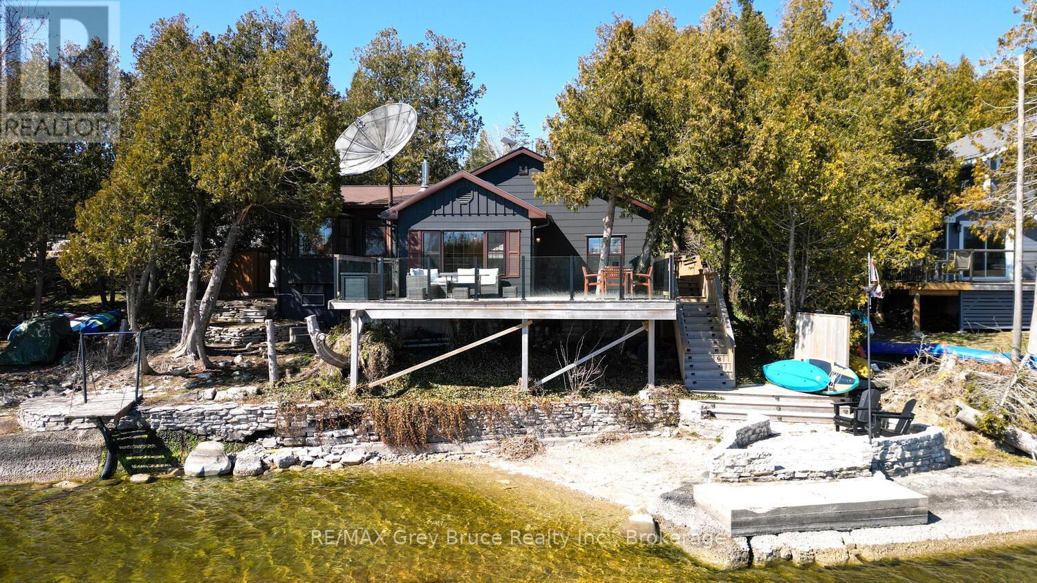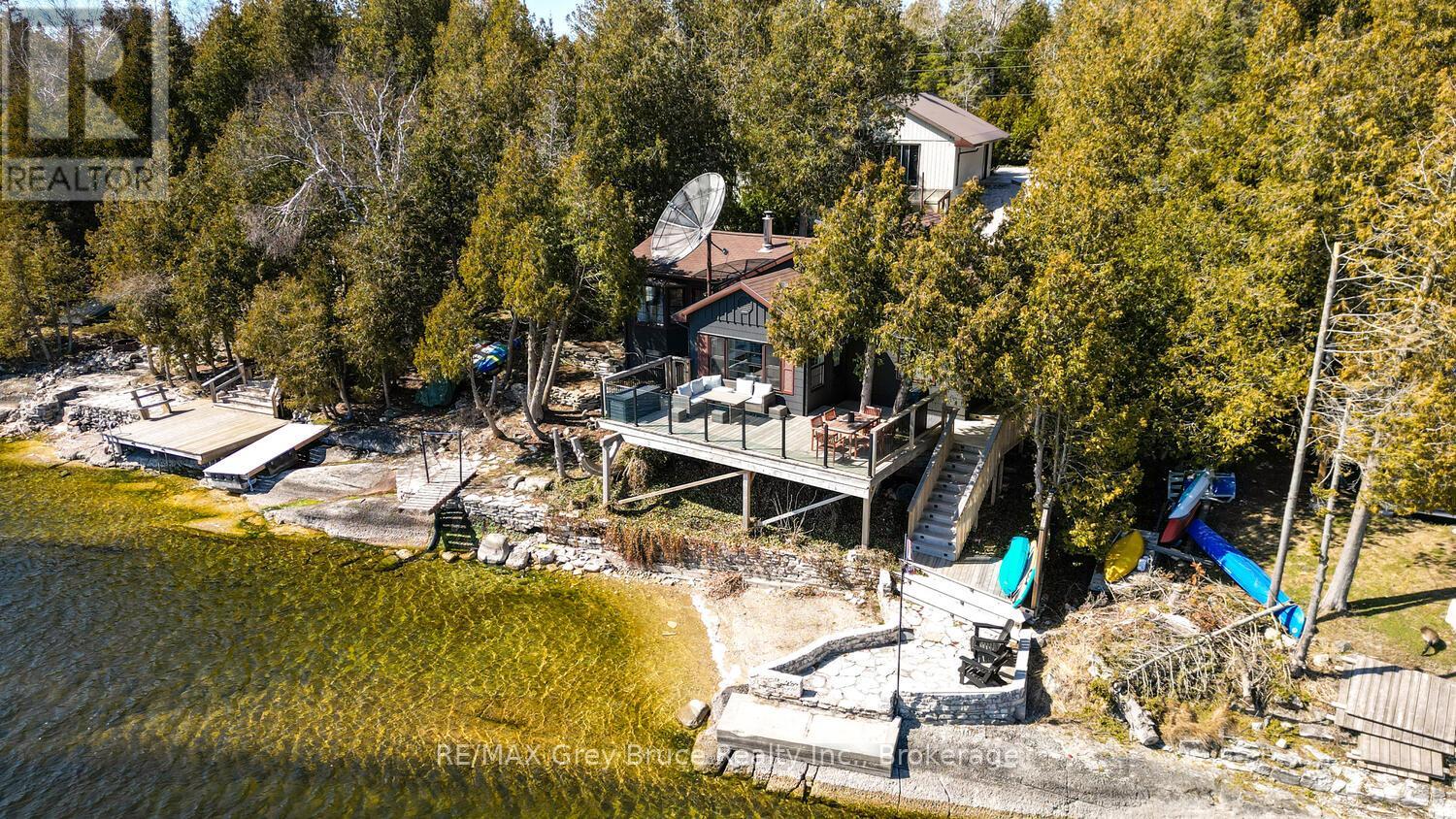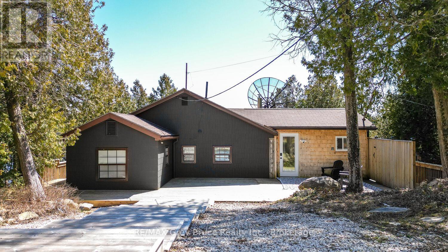 RENOVATED, TURN-KEY & WAITING FOR YOU! This renovated, turnkey, 4-season home or cottage getaway is located in the charming town of Tobermory and offers 1080sq.ft. of modern living. The home sits proudly on a 66' x 165' waterfront lot. The property's shoreline is highly desired with both a shallow swimming area (perfect for kids) along with access to deeper water off the dock for small boats or easy kayak launching. The shoreline is clean, rocky and protected in Hay Bay with easy access to Lake Huron. Get your canoe or kayak ready to enjoy life on the lake! The exterior of the property is low maintenance - why work, when you can relax... enjoy a campfire, watch the sunsets or take in the amazing stars at night. Inside you are greeted with a fully-furnished and turnkey 3 bedroom & 2 bathroom oasis. Fully renovated in 2021 - including a new drilled well, septic system, plumbing, electrical, interior finishes, furniture and more! Peace of mind and comfort afforded by the UV water treatment system and the two heat pump units providing both heat & cooling. Cozy up to the fireplace, enjoy family games at the table or entertain on the back deck overlooking the bay. Whether cooking inside or barbecuing outside, you have stunning views of the bay. The detached garage allows for storage, games room or a workshop. Plus, if you have a green thumb, the greenhouse structure waits for your personal touch to grow your own veggies or flowers. Kids will love the Bunkie structure on stilts! Bike into town, go out for dinner or grab an ice cream. Tobermory offers a dog park, Bruce Trail access and Pickleball court. Close to recreational activities and amenities Tobermory has to offer, yet tucked away on a paved year-round road. Move in and start making those family memories! (id:64974)