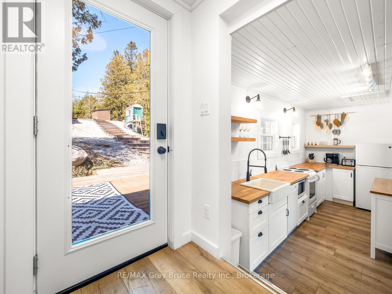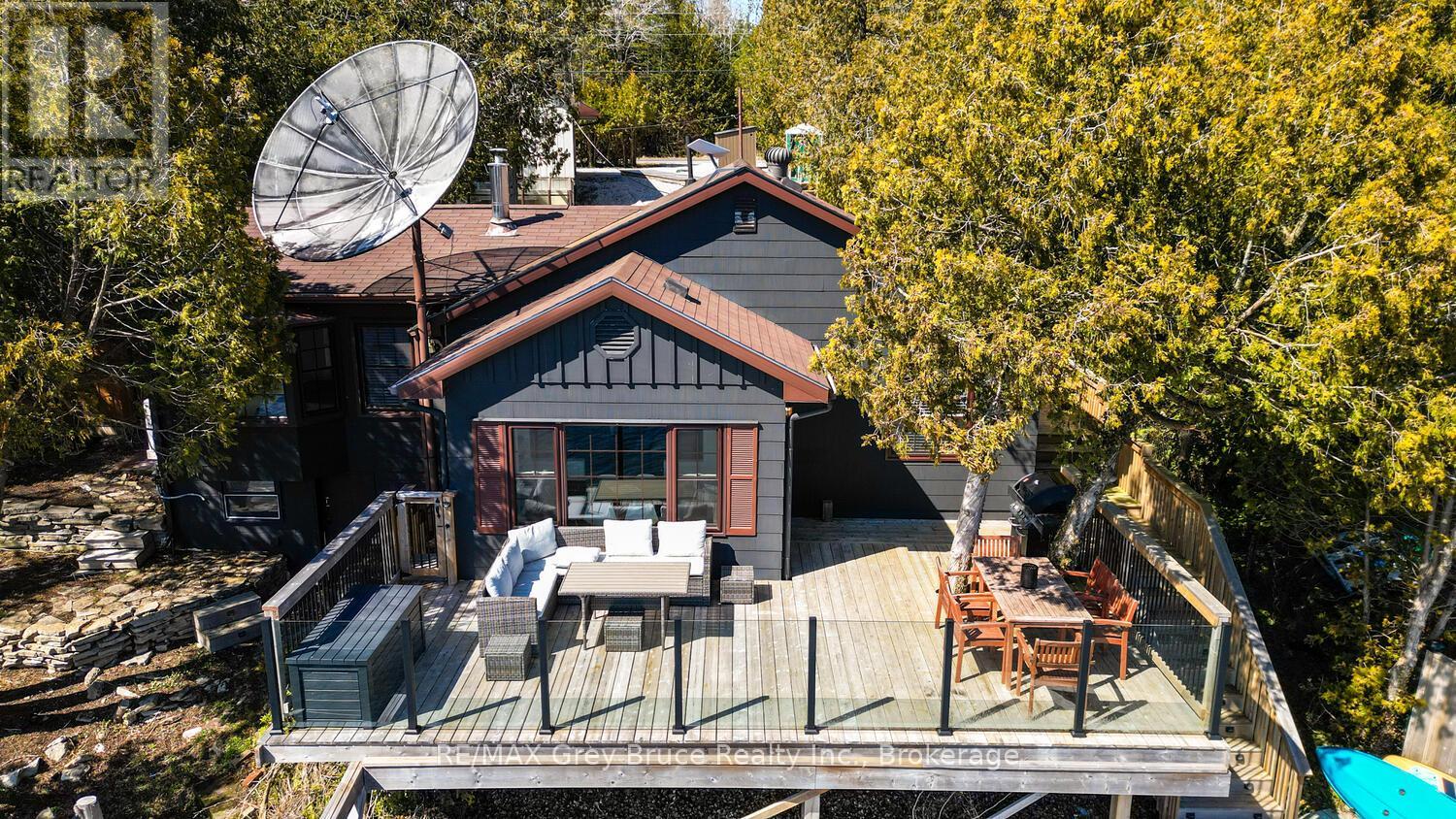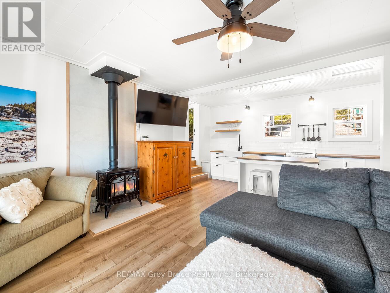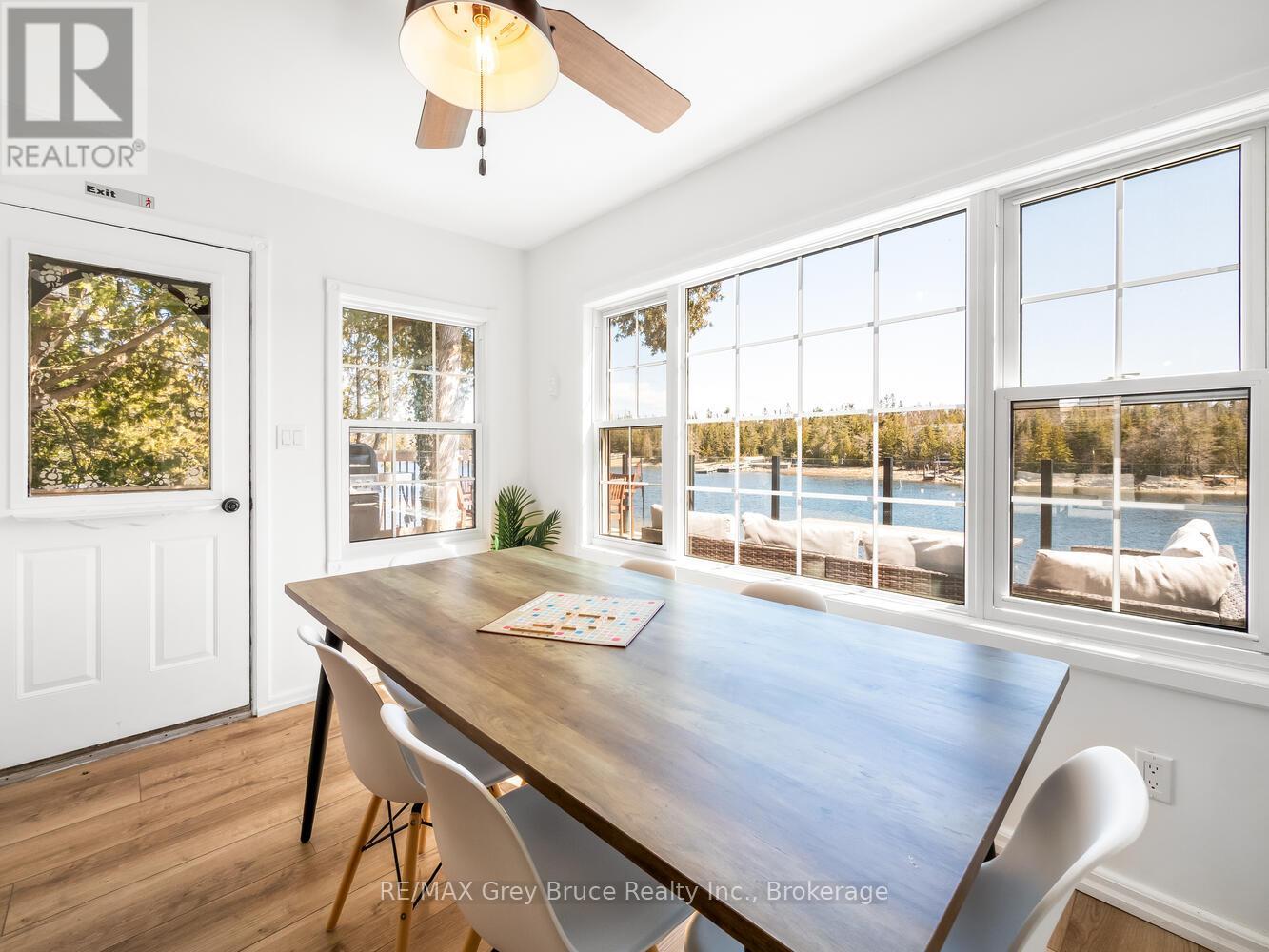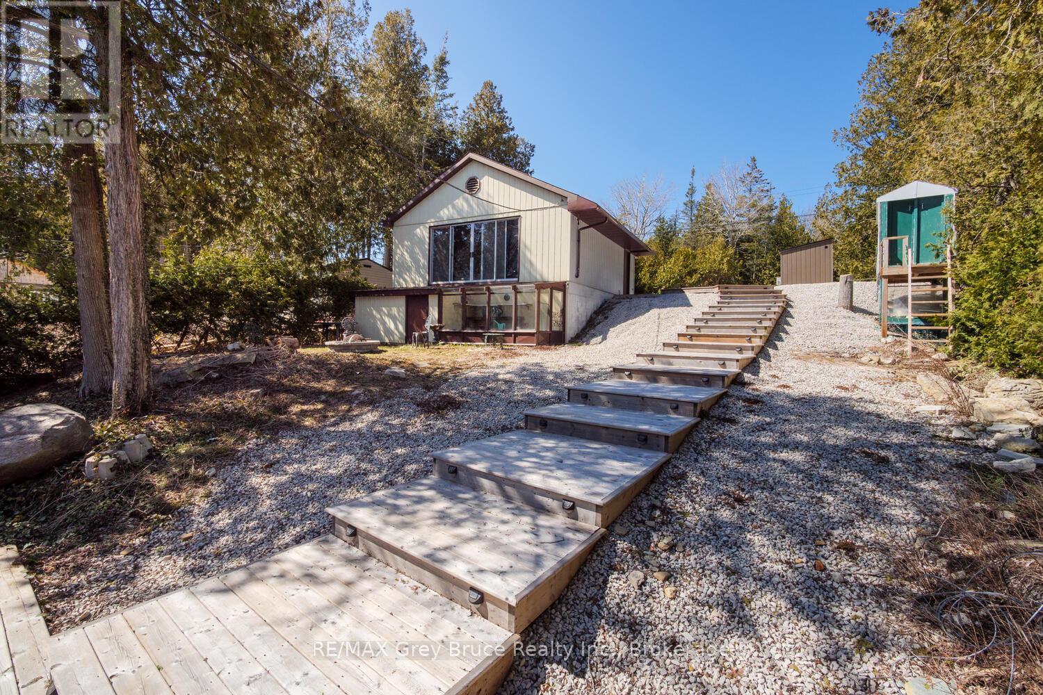 RENOVATED, TURN-KEY & WAITING FOR YOU! This renovated, turnkey, 4-season home or cottage getaway is located in the charming town of Tobermory and offers 1080sq.ft. of modern living. The home sits proudly on a 66' x 165' waterfront lot. The property's shoreline is highly desired with both a shallow swimming area (perfect for kids) along with access to deeper water off the dock for small boats or easy kayak launching. The shoreline is clean, rocky and protected in Hay Bay with easy access to Lake Huron. Get your canoe or kayak ready to enjoy life on the lake! The exterior of the property is low maintenance - why work, when you can relax... enjoy a campfire, watch the sunsets or take in the amazing stars at night. Inside you are greeted with a fully-furnished and turnkey 3 bedroom & 2 bathroom oasis. Fully renovated in 2021 - including a new drilled well, septic system, plumbing, electrical, interior finishes, furniture and more! Peace of mind and comfort afforded by the UV water treatment system and the two heat pump units providing both heat & cooling. Cozy up to the fireplace, enjoy family games at the table or entertain on the back deck overlooking the bay. Whether cooking inside or barbecuing outside, you have stunning views of the bay. The detached garage allows for storage, games room or a workshop. Plus, if you have a green thumb, the greenhouse structure waits for your personal touch to grow your own veggies or flowers. Kids will love the Bunkie structure on stilts! Bike into town, go out for dinner or grab an ice cream. Tobermory offers a dog park, Bruce Trail access and Pickleball court. Close to recreational activities and amenities Tobermory has to offer, yet tucked away on a paved year-round road. Move in and start making those family memories! (id:64974)