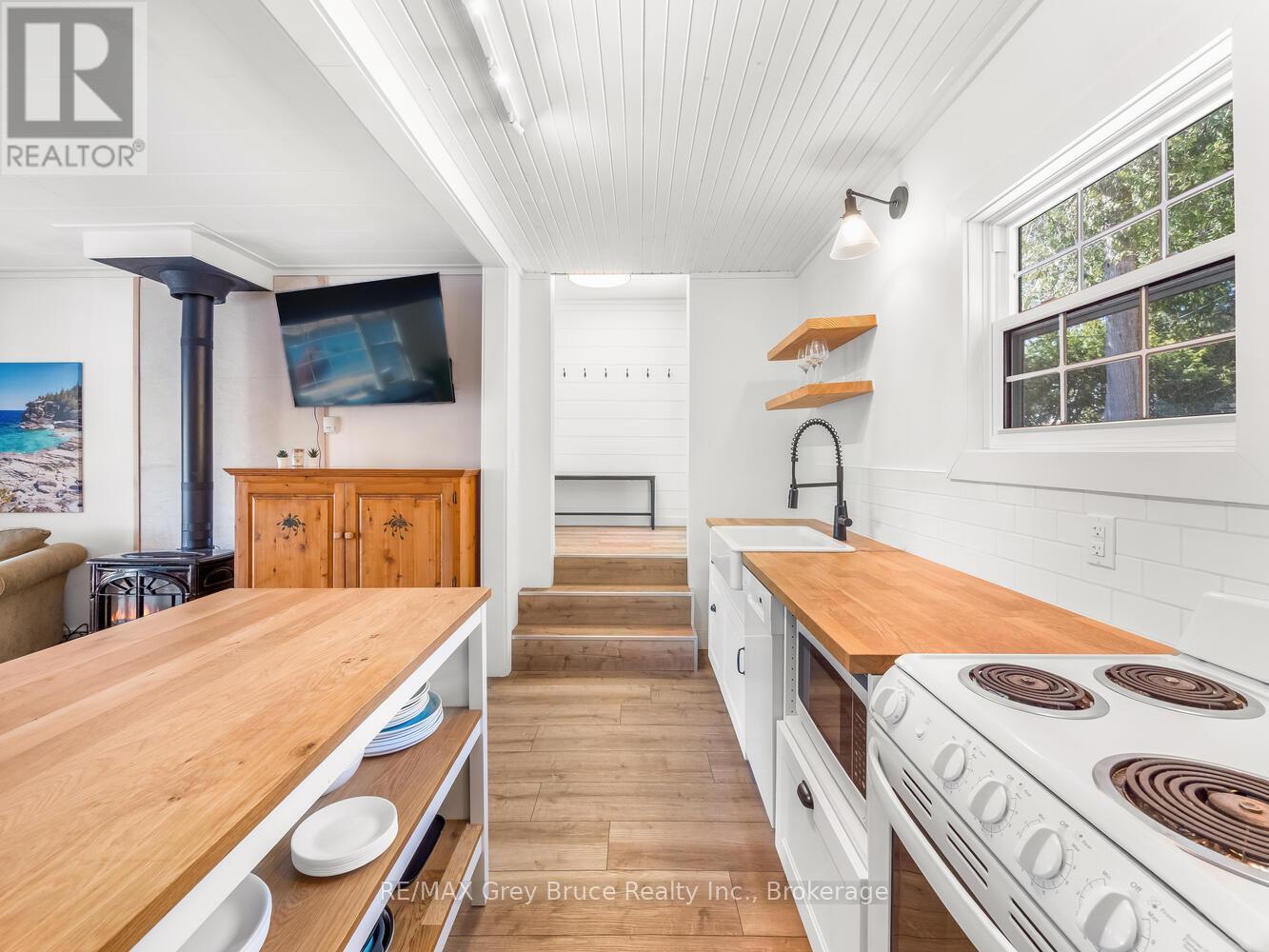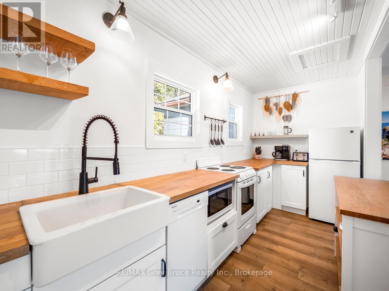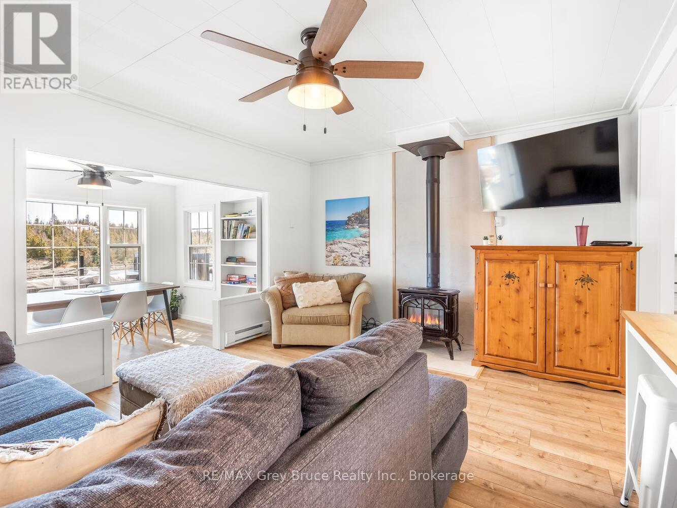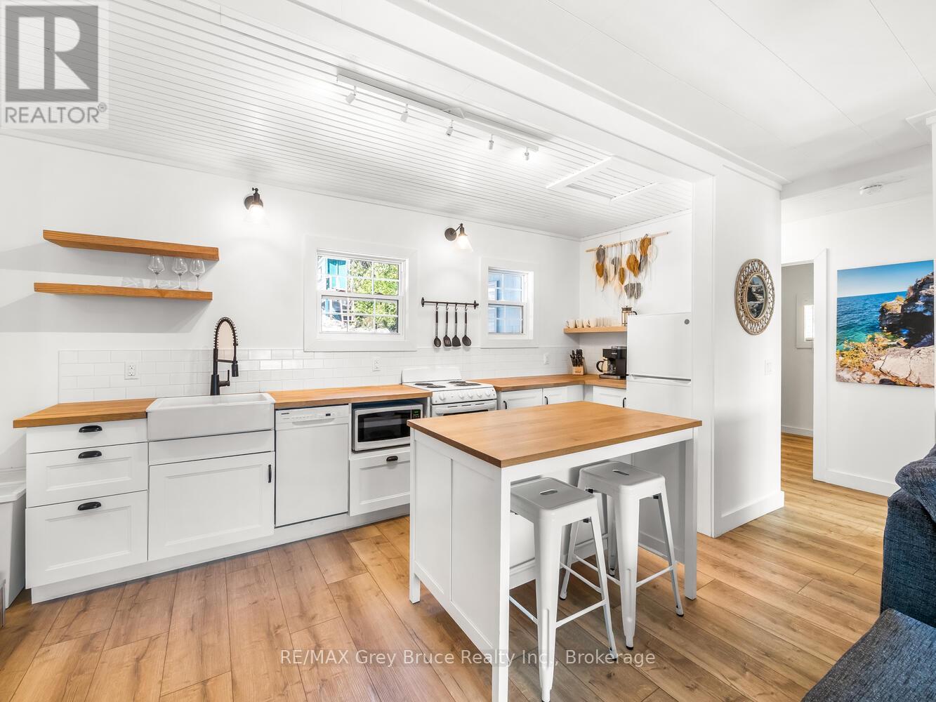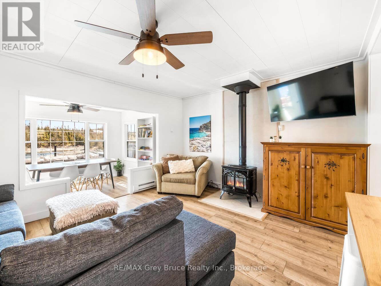 RENOVATED, TURN-KEY & WAITING FOR YOU! This renovated, turnkey, 4-season home or cottage getaway is located in the charming town of Tobermory and offers 1080sq.ft. of modern living. The home sits proudly on a 66' x 165' waterfront lot. The property's shoreline is highly desired with both a shallow swimming area (perfect for kids) along with access to deeper water off the dock for small boats or easy kayak launching. The shoreline is clean, rocky and protected in Hay Bay with easy access to Lake Huron. Get your canoe or kayak ready to enjoy life on the lake! The exterior of the property is low maintenance - why work, when you can relax... enjoy a campfire, watch the sunsets or take in the amazing stars at night. Inside you are greeted with a fully-furnished and turnkey 3 bedroom & 2 bathroom oasis. Fully renovated in 2021 - including a new drilled well, septic system, plumbing, electrical, interior finishes, furniture and more! Peace of mind and comfort afforded by the UV water treatment system and the two heat pump units providing both heat & cooling. Cozy up to the fireplace, enjoy family games at the table or entertain on the back deck overlooking the bay. Whether cooking inside or barbecuing outside, you have stunning views of the bay. The detached garage allows for storage, games room or a workshop. Plus, if you have a green thumb, the greenhouse structure waits for your personal touch to grow your own veggies or flowers. Kids will love the Bunkie structure on stilts! Bike into town, go out for dinner or grab an ice cream. Tobermory offers a dog park, Bruce Trail access and Pickleball court. Close to recreational activities and amenities Tobermory has to offer, yet tucked away on a paved year-round road. Move in and start making those family memories! (id:64974)