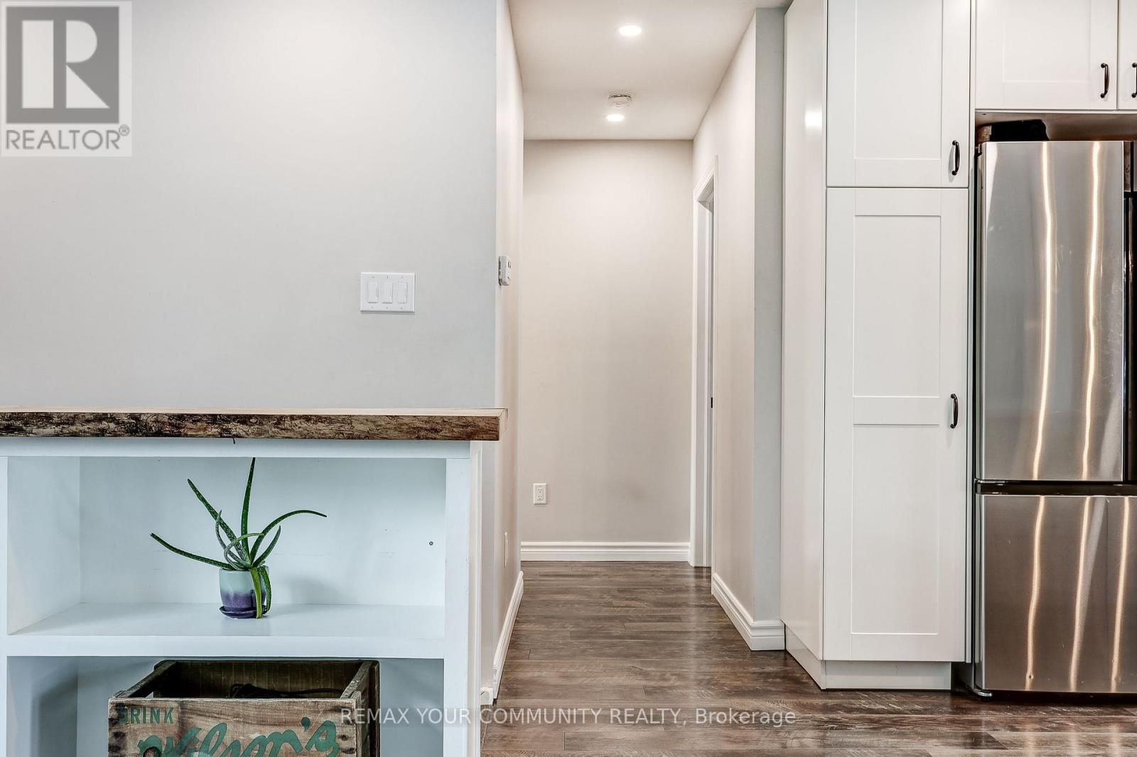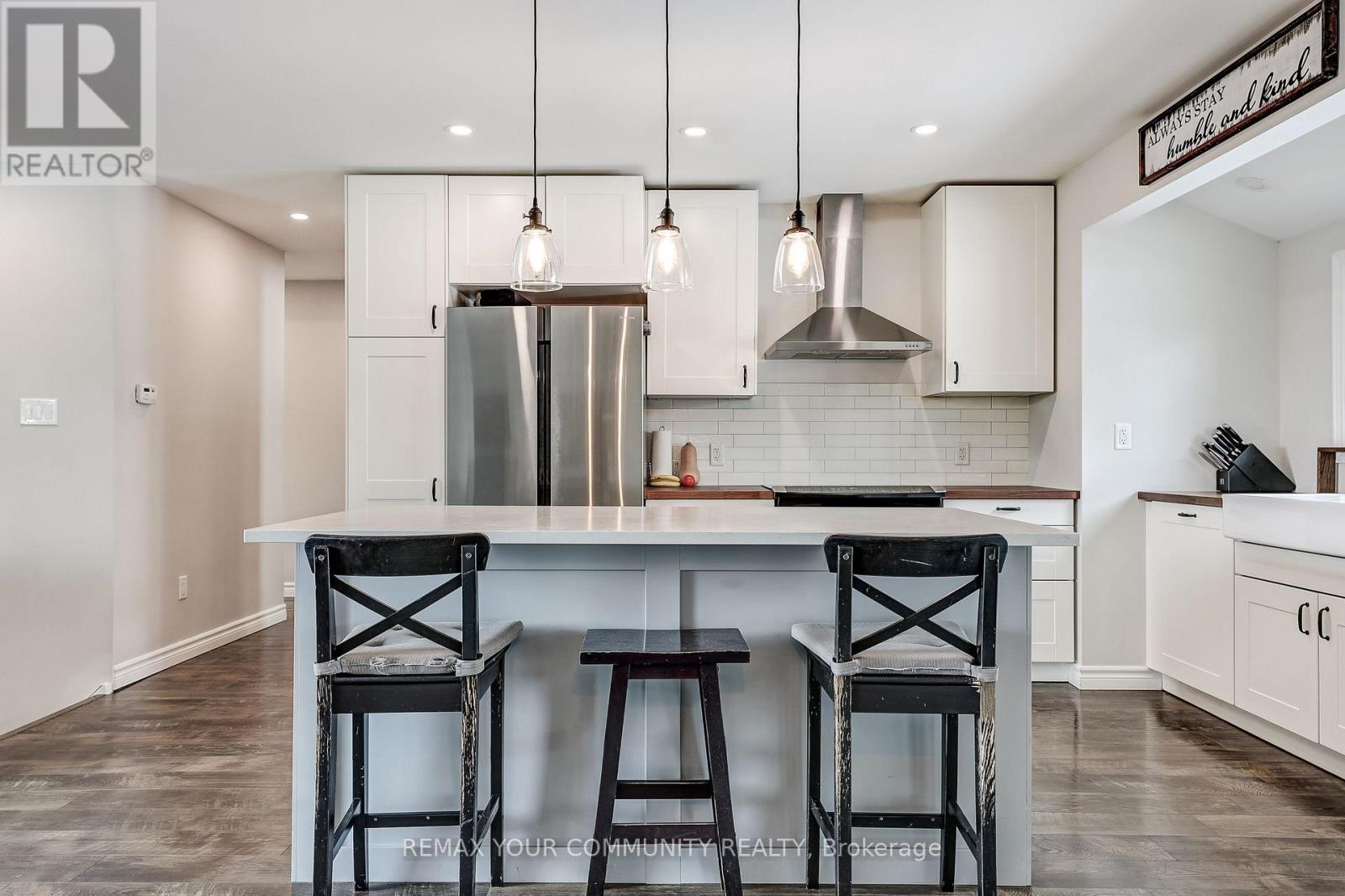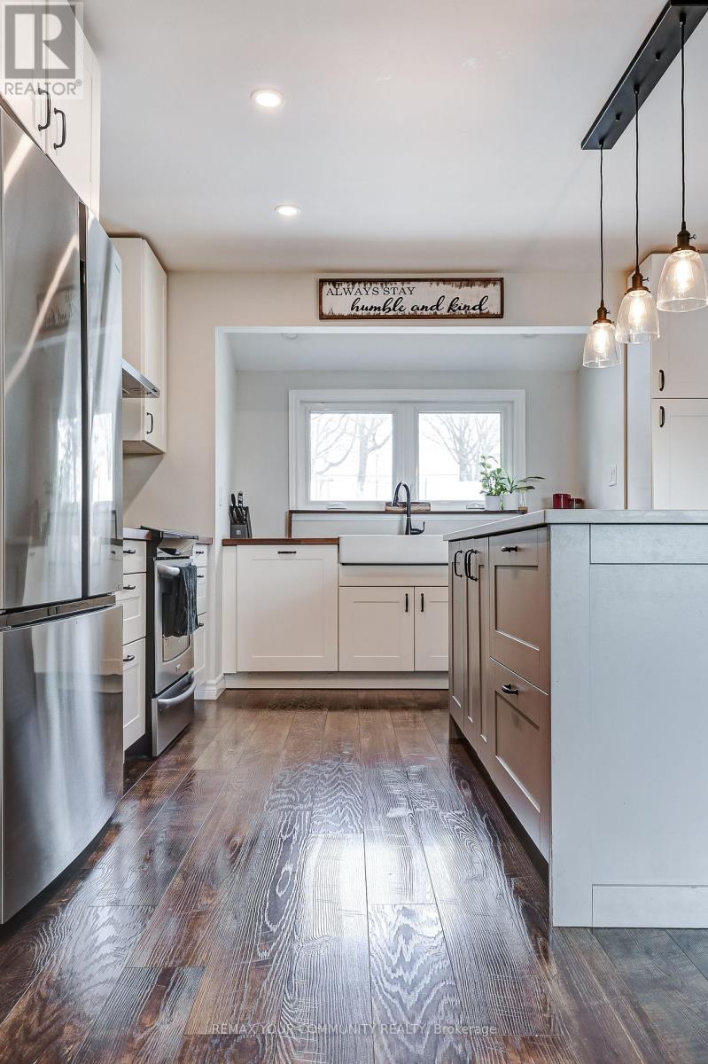 Nestled on a quiet cul-de-sac with direct access to the beautiful Nokidaa Trail, this fully refinished and updated home sits on a private fenced 140' lot and offers flexible living for families of all sizes. The bright main level features an open-concept kitchen, dining, and living area designed for comfortable everyday living and effortless entertaining. The renovated kitchen showcases stainless steel appliances, quartz and butcher block counters, and a large centre island with breakfast bar. An oversized picture window fills the space with natural light, while built-in bookshelves and a cozy gas fireplace add warmth and character. The dining area opens through garden doors to a newly constructed deck, perfect for morning coffee or summer evenings overlooking the spacious backyard. Three bedrooms are located on the main level, including a primary suite with wall-to-wall closets and private access to the deck. The fully above-grade entry level adds exceptional versatility with two additional bedrooms, a 4-piece bath, and a spacious great room with kitchen facilities, ideal for extended family, guests, or potential in-law accommodation. Move-in ready and conveniently located close to schools, shopping, transportation, and highway access. Enjoy the perfect balance of privacy, nature, and everyday convenience. View the virtual tour for photos and floor plans. (id:64974)