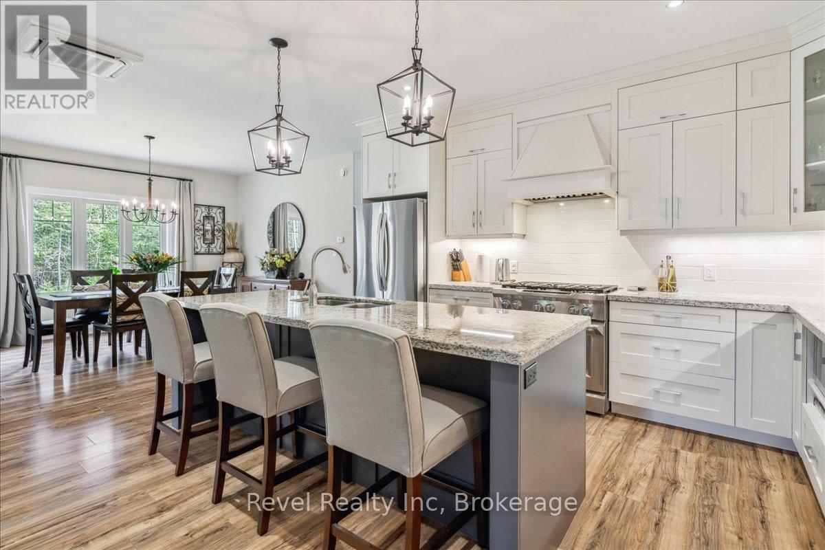 Your Four-Season Escape Near Georgian Bay! Embrace relaxed living in a serene, nature-filled setting just a short walk from the sparkling shores of Georgian Bay. Here, you'll enjoy peaceful surroundings without sacrificing convenience - high-speed internet, charming local delis, and cozy restaurants are close by, while major retailers, theatres, museums, and historic attractions are only 20 minutes away. This nearly new modern ranch bungalow offers over 2,000 sq. ft. of beautifully finished main-floor space, including three generous bedrooms and two full bathrooms. The bright, full-height basement is ready for your vision, already roughed-in for a third bath. Comfort is built in with in-floor radiant heating on both levels, a welcoming gas fireplace in the great room, and discreet in-ceiling air conditioning for warm summer days - all naturally shaded by mature trees. Step outside to a thoughtfully landscaped yard with full irrigation and a private wooded backdrop, perfect for quiet evenings around the fire or relaxing on the covered deck. The open-concept kitchen is designed for gathering, featuring a large island, granite countertops, and premium appliances. A double-car garage with inside entry leads to a convenient main-floor laundry room, adding everyday practicality to this exceptional home. If you're seeking the perfect blend of nature, comfort, and modern ease, this is the lifestyle you've been waiting for. (id:64974)