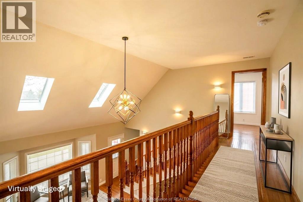 1.75 storey cape cod home, approximately 3500 sq ft, is set on a gorgeous landscaped 75x190 ft lot. Large main floor primary suite, walk in closet, renovated ensuite bath, huge barrier free shower. Large great room, soaring ceilings, skylights, hardwood floor. Formal dining room, newly renovated kitchen, stainless steel appliances, rolling island, large eating area with bay window. Main floor laundry. Also a family/play/games room & mudroom. An extra wide solid wood staircase leads to the 2nd floor, features a Juliette balcony, 2 bedrooms, HWF, 4pc bath and a 20x29 bonus room with angled ceiling, skylights. Cement patio 2024. (id:64974)
