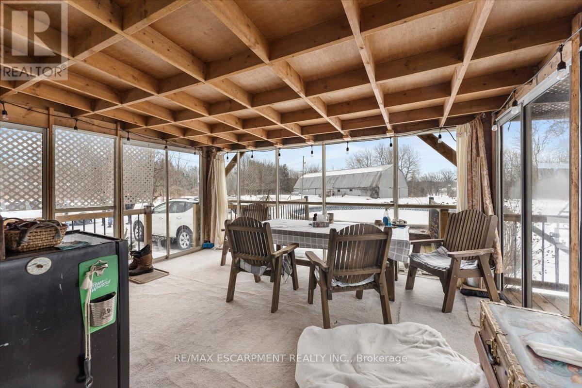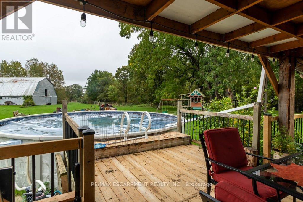 Welcome to 5914 Canborough Road, a serene rural retreat just outside Wellandport. This nearly 8.5-acre property offers just under 500 feet of Welland River frontage, perfect for riverside activities or simply enjoying the views. The land is beautifully maintained with a mix of trees and open spaces, providing privacy with enough cleared areas for trails or a hobby farm. The charming century home, built before 1900, features 4 spacious bedrooms, an updated 4-piece bathroom (2023), a 3-piece bathroom (2020), a country kitchen, and a cozy family room. Step out to the covered back deck with access to an above-ground pool and peaceful surroundings. The property includes a large two-storey 120 x 40 barn (1975), ideal for farming, hobbies, or storage. Located just 15 minutes from Dunnville and Smithville, it offers the perfect balance of rural tranquility and convenience. Don't miss out on this unique property. (id:64974)