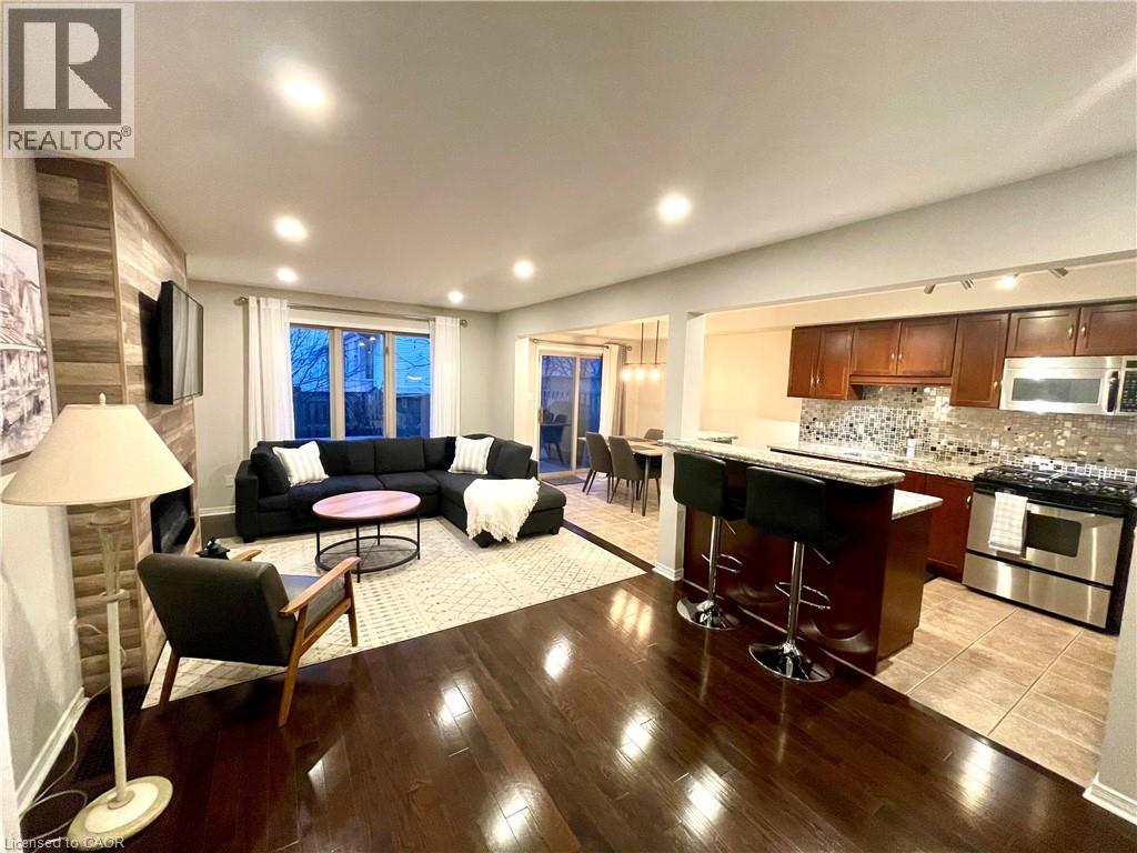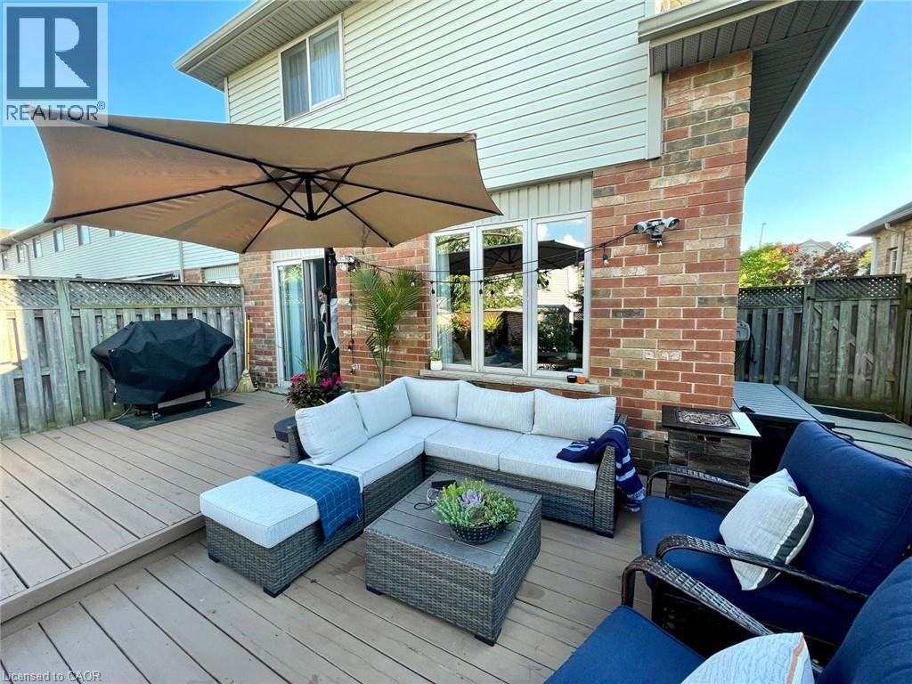 Rare freehold end-unit townhome with no condo or road fees, offering the space, privacy, and feel of a semi-detached home. This well-maintained property features 3 bedrooms, 2.5 bathrooms, and approximately 1,539 sq ft above grade, plus a finished basement with over 400 sq ft of additional living space. A large foyer with multiple windows fills the entryway with natural light and makes the space feel open and airy. The foyer is partially open to above (approximately 1.5 storeys) and includes a spacious double pantry with shelving-perfect for storing cookware, seasonal items, and more. From the foyer, there is convenient access directly into the garage. The main floor features hardwood flooring throughout the living areas, with ceramic tile in the foyer and eat-in kitchen. The kitchen includes granite countertops, a stainless steel backsplash, stainless steel appliances, and a raised breakfast bar. Pot lights on the main floor and in the finished basement. An elegant oak staircase leads to the second floor, which features hardwood flooring throughout. The desirable two-wing layout provides extra privacy: one side offers a spacious primary bedroom with a fully renovated (2024) ensuite, while the opposite side features two additional bedrooms and a full bathroom. Toilets in all 3 bathrooms recently replaced. Garage door (2025). Step outside to a private backyard retreat featuring a large wooden deck and gas BBQ hookup. With no rear neighbours, the space offers excellent privacy and a peaceful setting for outdoor living. Ideally located on a quiet street in a desirable neighbourhood, close to scenic trails and parks. Enjoy convenient access to major highways, public transportation, schools, and a full range of everyday amenities. A rare opportunity to own a freehold end-unit townhome combining space, privacy, and an exceptional location with no monthly fees. (id:64974)