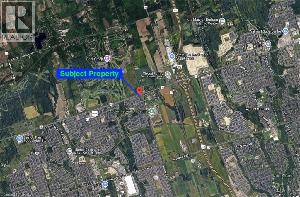 Great opportunity to purchase a 2.3 acre development parcel with zoning in place allowing for 88 stacked townhouse units and 8 traditional row townhomes. Located in the southwest corner of Taunton Rd E & Audley Rd. Prime Ajax location, close proximity to Highways 412, 401 and 407. Easy access to transit, near Deer Creek Golf Course, rec center, great local area amenities and huge residential development nearby. Property sold under Power of Sale on an 'as is, where is' basis, land value only. Comprehensive deliverable package available with signed confidentiality agreement. (id:64974)