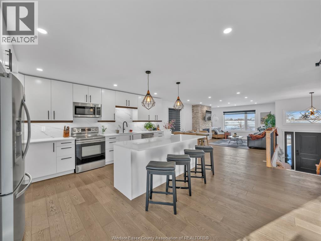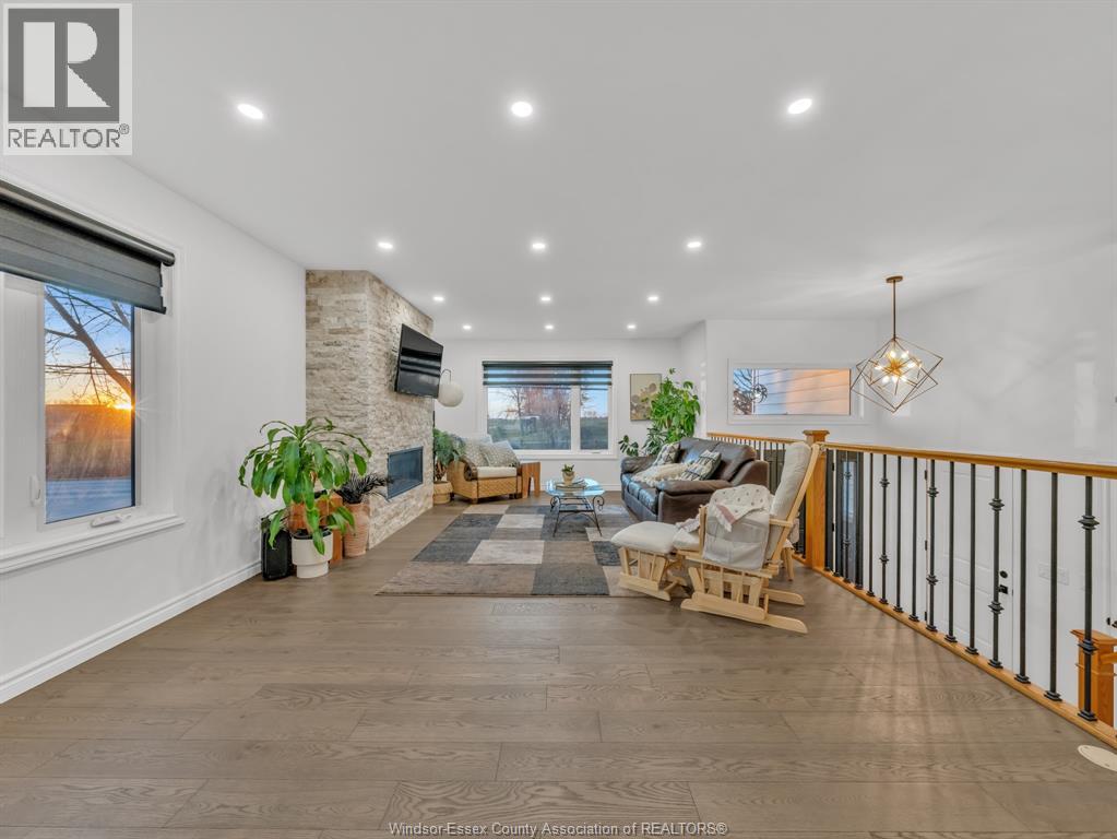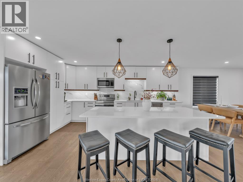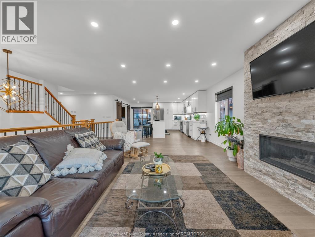 Move-In Ready (2022) Raised Ranch w/ Bonus Room & Income Suite in LaSalle, offering over 3,000 sq ft of total living space with beautiful sunset views of Ambassador Golf Course. This property features a grade entrance, modern hardwood flooring, and a gas fireplace with stone feature wall. The main kitchen showcases custom cabinetry, quartz countertops, a massive island, brand-new backsplash, and custom blinds throughout. The bright, open-concept main floor includes two bedrooms, main-floor laundry, a full bath, and expansive living space overlooking the course, with direct access to a large covered back deck. Above the 2-car garage is a spacious bonus room currently used as a primary bedroom, complete with a walk-in closet, private ensuite, and balcony. The fully finished lower level offers a self-contained mother-in-law suite with two bedrooms, full bath, open-concept living area, second kitchen, private entrance, and its own laundry hookup, making it ideal for Airbnb, out-of-town golfers, Gordie Howe Bridge workers, or long-term tenants/multi generational living. Conveniently located close to amenities, major routes, and the upcoming Gordie Howe Bridge, this home offers exceptional flexibility and income potential. (id:64974)