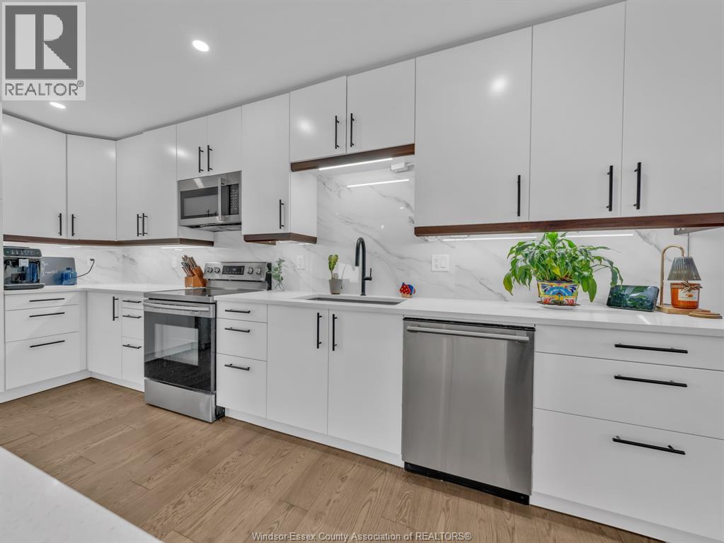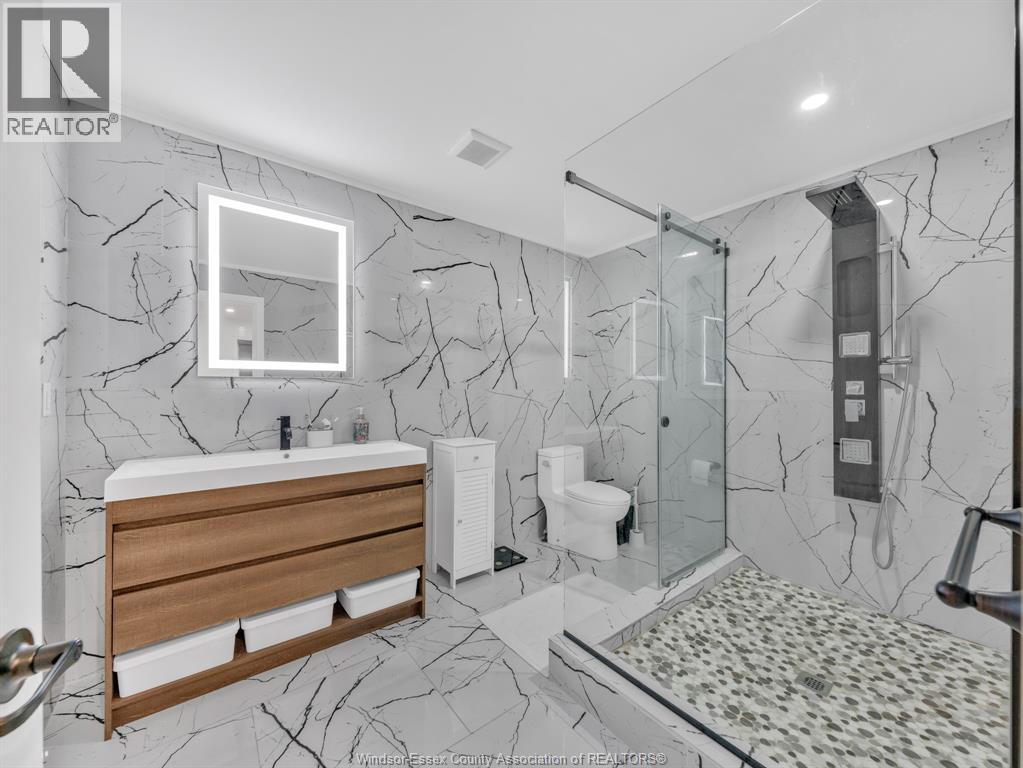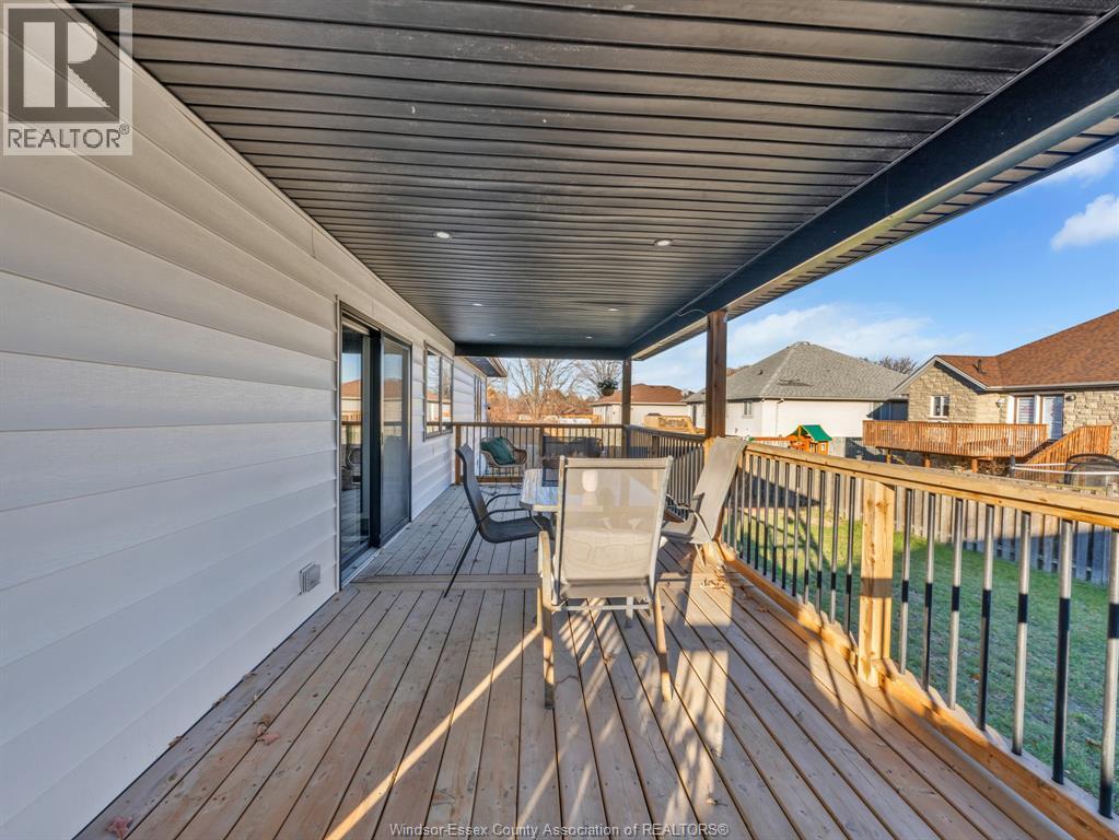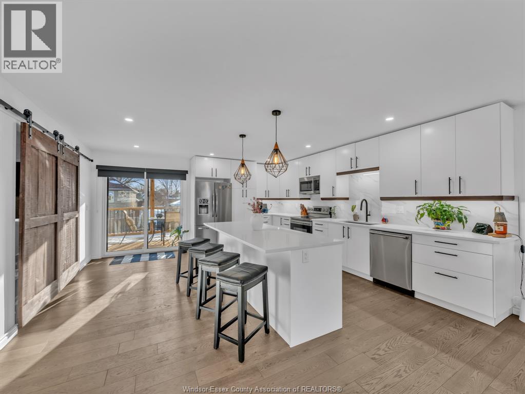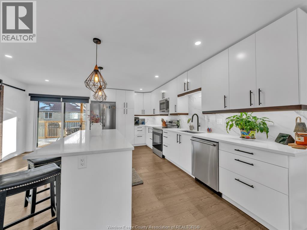Move-In Ready (2022) Raised Ranch w/ Bonus Room & Income Suite in LaSalle, offering over 3,000 sq ft of total living space with beautiful sunset views of Ambassador Golf Course. This property features a grade entrance, modern hardwood flooring, and a gas fireplace with stone feature wall. The main kitchen showcases custom cabinetry, quartz countertops, a massive island, brand-new backsplash, and custom blinds throughout. The bright, open-concept main floor includes two bedrooms, main-floor laundry, a full bath, and expansive living space overlooking the course, with direct access to a large covered back deck. Above the 2-car garage is a spacious bonus room currently used as a primary bedroom, complete with a walk-in closet, private ensuite, and balcony. The fully finished lower level offers a self-contained mother-in-law suite with two bedrooms, full bath, open-concept living area, second kitchen, private entrance, and its own laundry hookup, making it ideal for Airbnb, out-of-town golfers, Gordie Howe Bridge workers, or long-term tenants/multi generational living. Conveniently located close to amenities, major routes, and the upcoming Gordie Howe Bridge, this home offers exceptional flexibility and income potential. (id:64974)