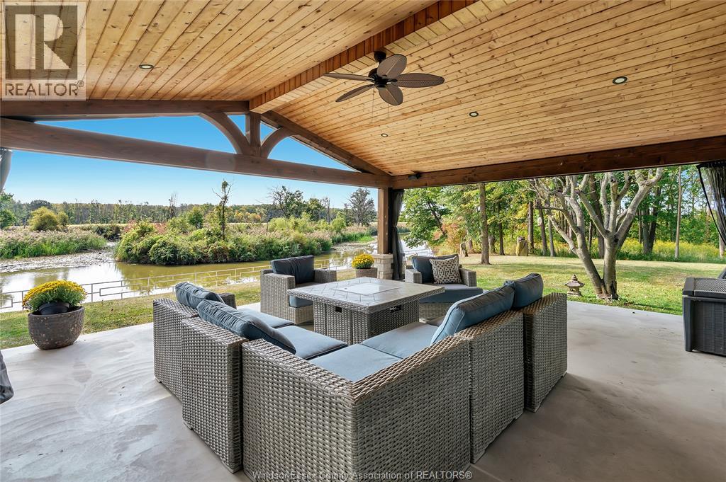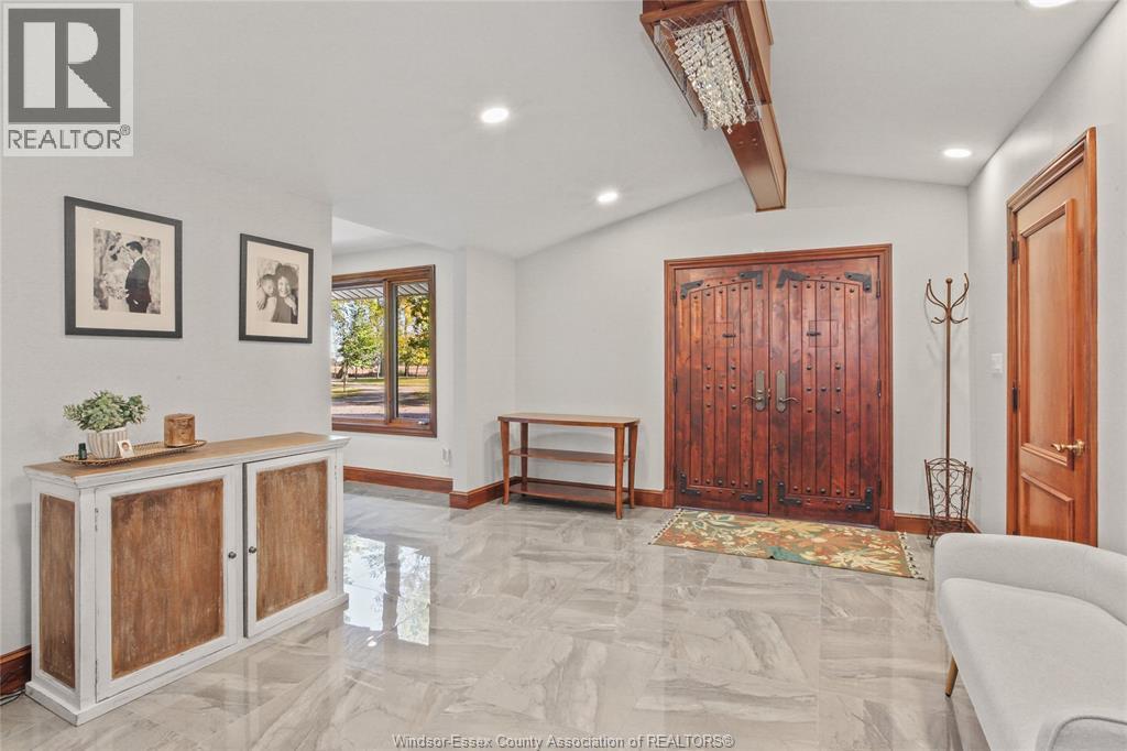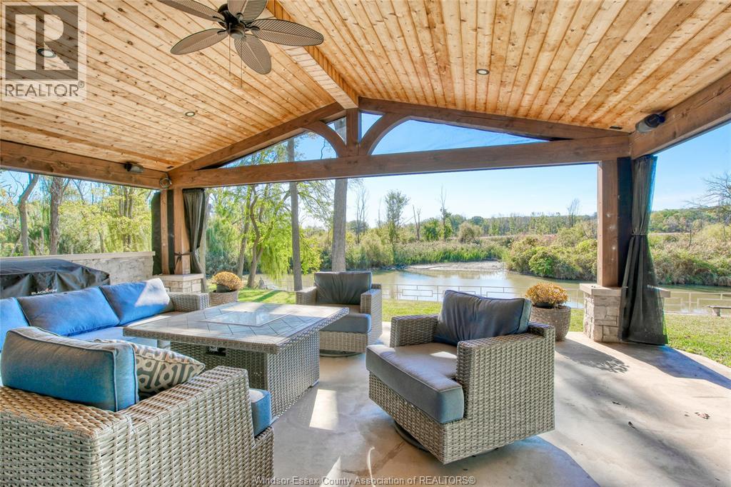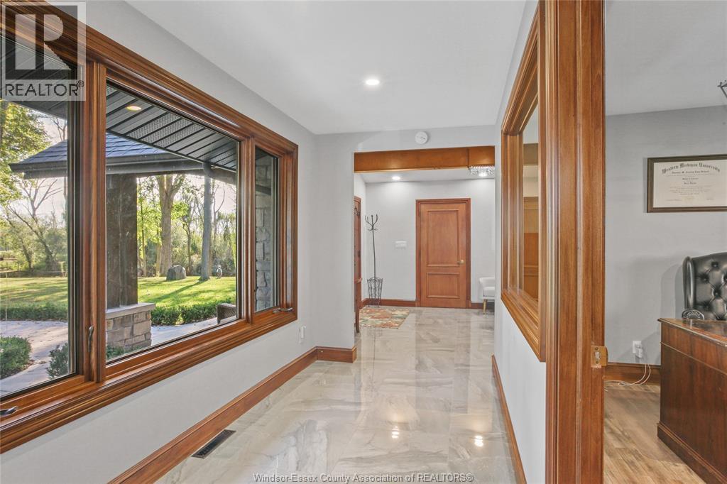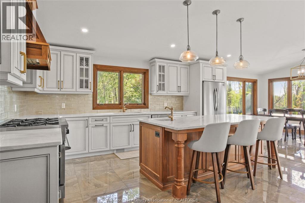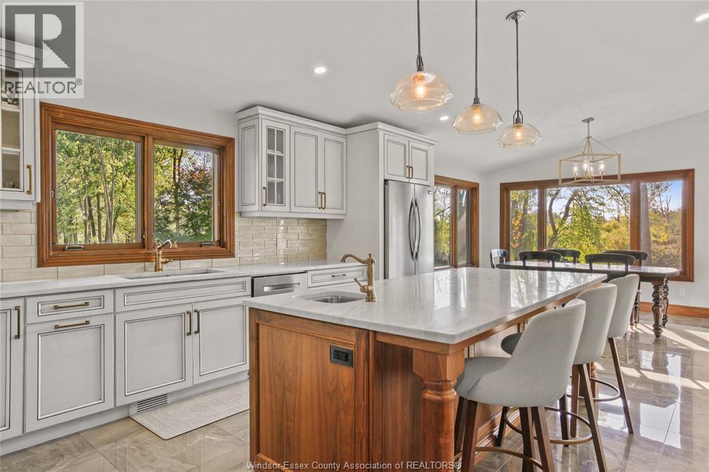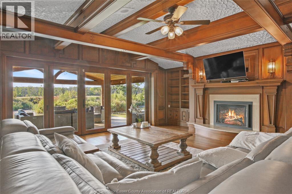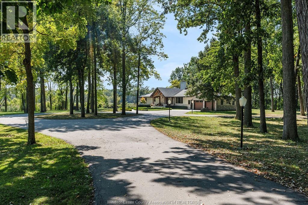 Welcome to an extraordinary 11.5 acre family compound estate, offered for the first time and steeped in heritage and timeless elegance. A tree-lined, gated approach sets the tone for the private, park-like grounds adorned with towering mature trees and navigable waterways protected by steel and concrete breakwalls, leading directly to the Detroit River. The 4+2 bedrooms, 4 bathrooms residence features a spacious primary suite with a walk-out balcony. The main level boasts an updated kitchen, wood paneled family room warmed by a natural fireplace equipped with bi-fold sliding doors that open the entire room to the covered patio offering stunning views of River Canard. This home is nestled deep within a serene forest setting, blending privacy with prestige. This property is located close to schools, golf, and amenities and is short drive to most towns in Windsor-Essex County. Designed for multi- generational living and a luxury lifestyle, this property embodies the essence of legacy. (id:64974)