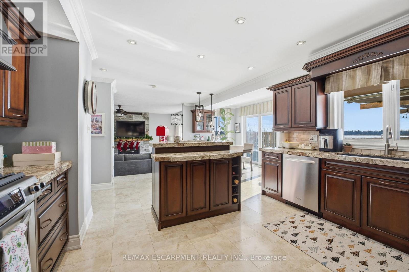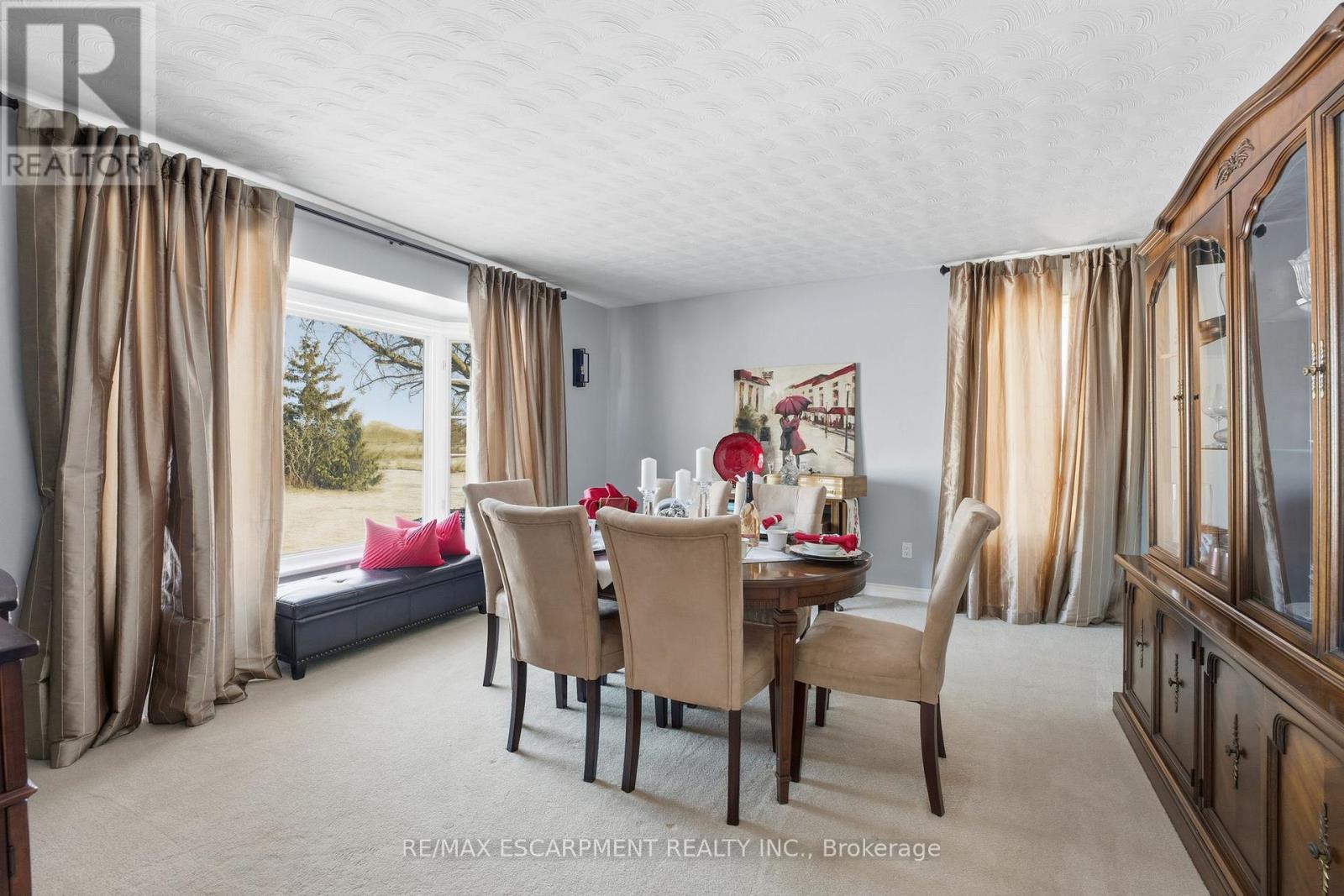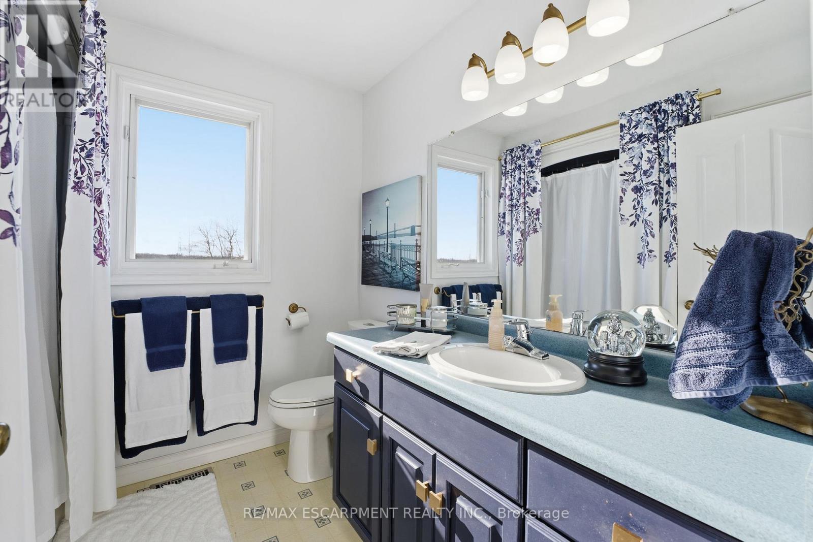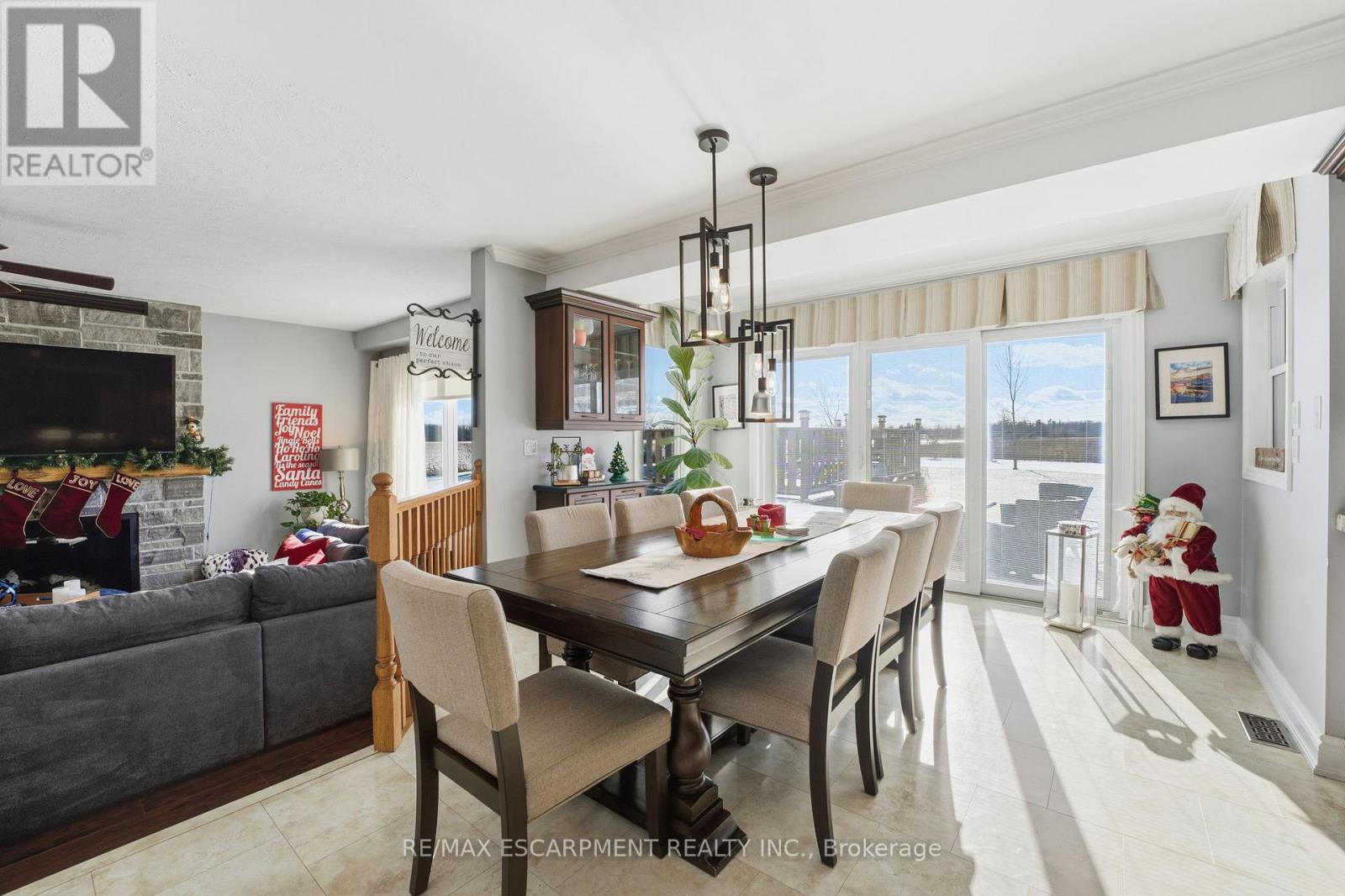 Set on nearly 20 acres with dramatic front and rear views, this custom-built 2,190 sq. ft. Cape Cod-style home offers the perfect blend of space, craftsmanship, and country living just minutes from Smithville and Grimsby. The main floor features a welcoming foyer with hardwood floors and oak staircase, a luxurious kitchen with granite counters, dark maple cabinetry, double pantry, breakfast island and eat-in area, a sunken family room with gas fireplace, separate living/dining room with bay window, private den with French doors, oversized laundry/mudroom, and a 2-piece bath with granite counter. Upstairs offers three bedrooms including a primary suite with vaulted ceiling, walk-in closet, and 4-piece ensuite with whirlpool tub and separate shower. The finished lower level includes a gym, fourth bedroom, rough-in for bath, and ample storage. Outdoor highlights include an interlock walkway, multi-level cedar deck with flower boxes and pool deck. Completing the property are a double attached garage and a separate two-storey double garage with workshop and finished upper-level office or games room, its own heating and A/C, and walkout to a deck-an exceptional rural retreat with unmatched versatility. (id:64974)