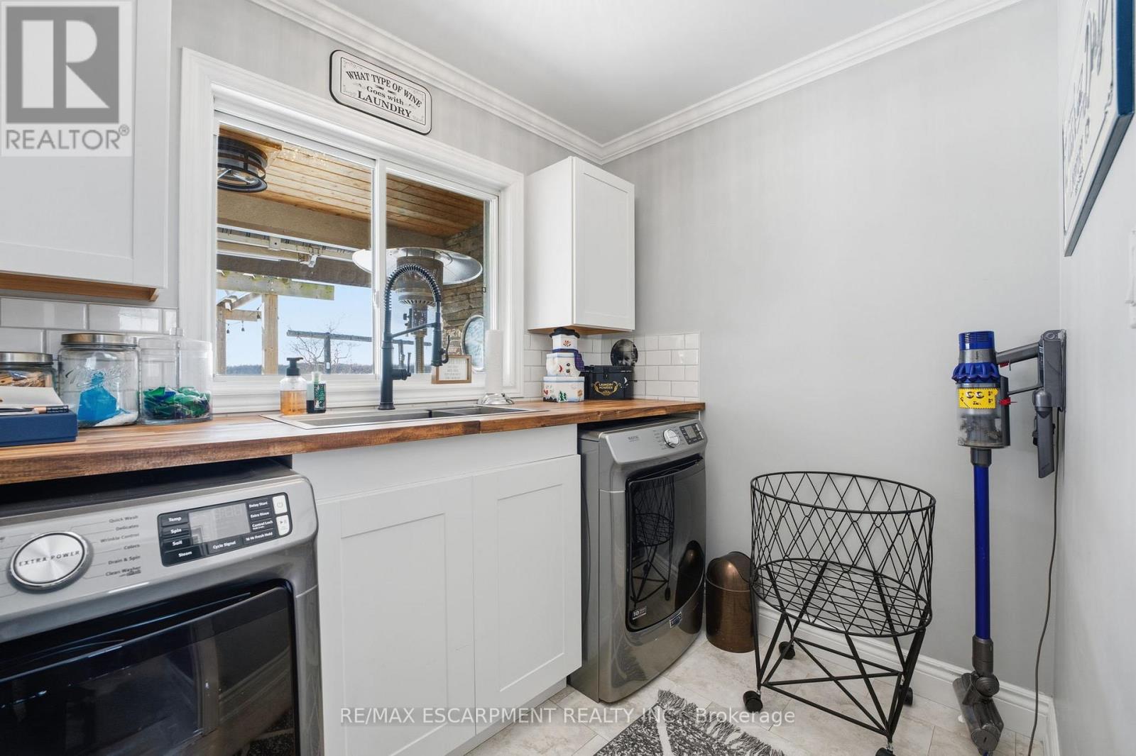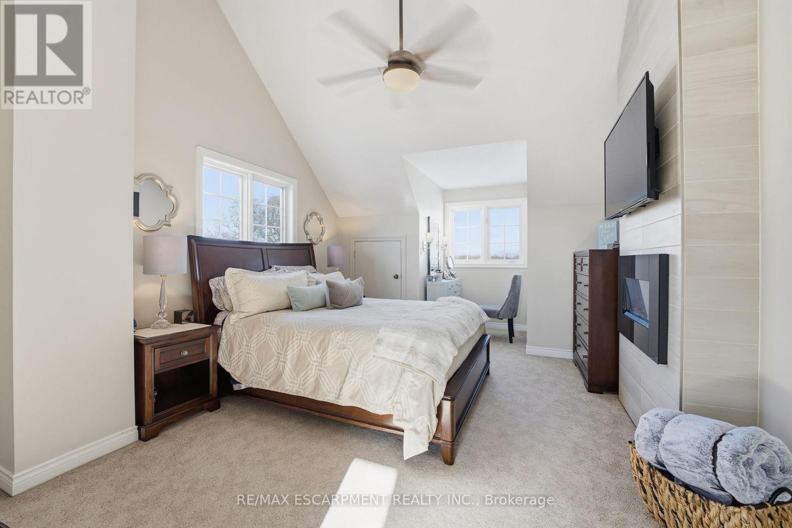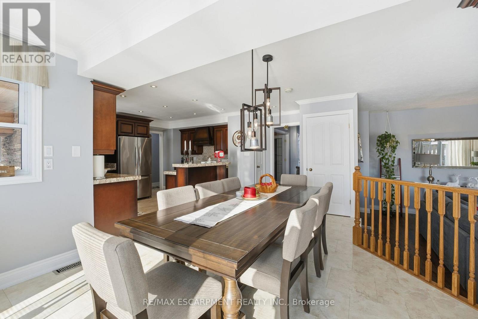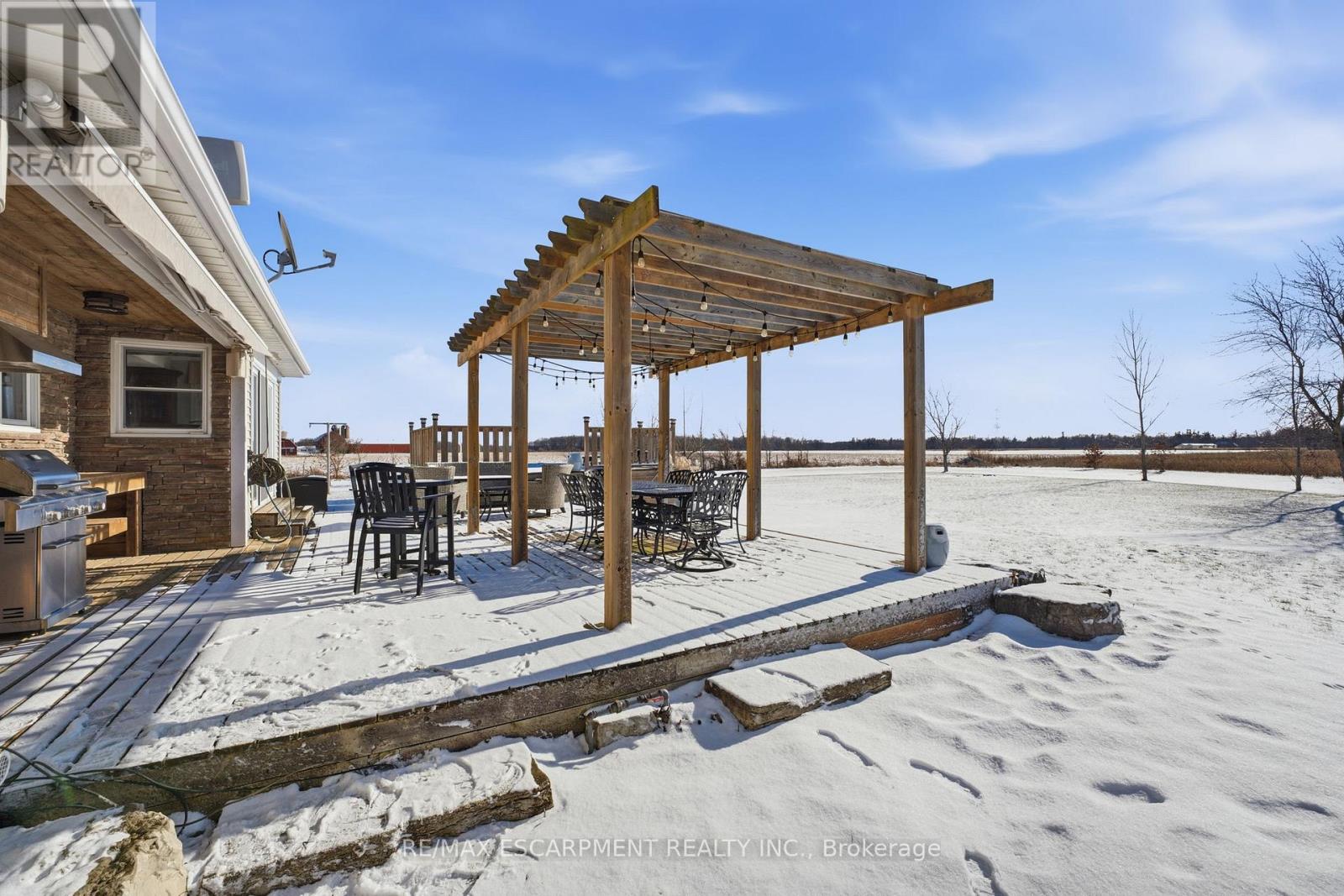 Set on nearly 20 acres with dramatic front and rear views, this custom-built 2,190 sq. ft. Cape Cod-style home offers the perfect blend of space, craftsmanship, and country living just minutes from Smithville and Grimsby. The main floor features a welcoming foyer with hardwood floors and oak staircase, a luxurious kitchen with granite counters, dark maple cabinetry, double pantry, breakfast island and eat-in area, a sunken family room with gas fireplace, separate living/dining room with bay window, private den with French doors, oversized laundry/mudroom, and a 2-piece bath with granite counter. Upstairs offers three bedrooms including a primary suite with vaulted ceiling, walk-in closet, and 4-piece ensuite with whirlpool tub and separate shower. The finished lower level includes a gym, fourth bedroom, rough-in for bath, and ample storage. Outdoor highlights include an interlock walkway, multi-level cedar deck with flower boxes and pool deck. Completing the property are a double attached garage and a separate two-storey double garage with workshop and finished upper-level office or games room, its own heating and A/C, and walkout to a deck-an exceptional rural retreat with unmatched versatility. (id:64974)
