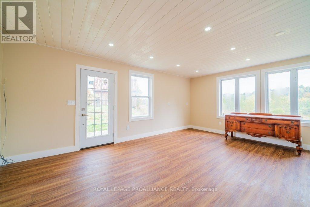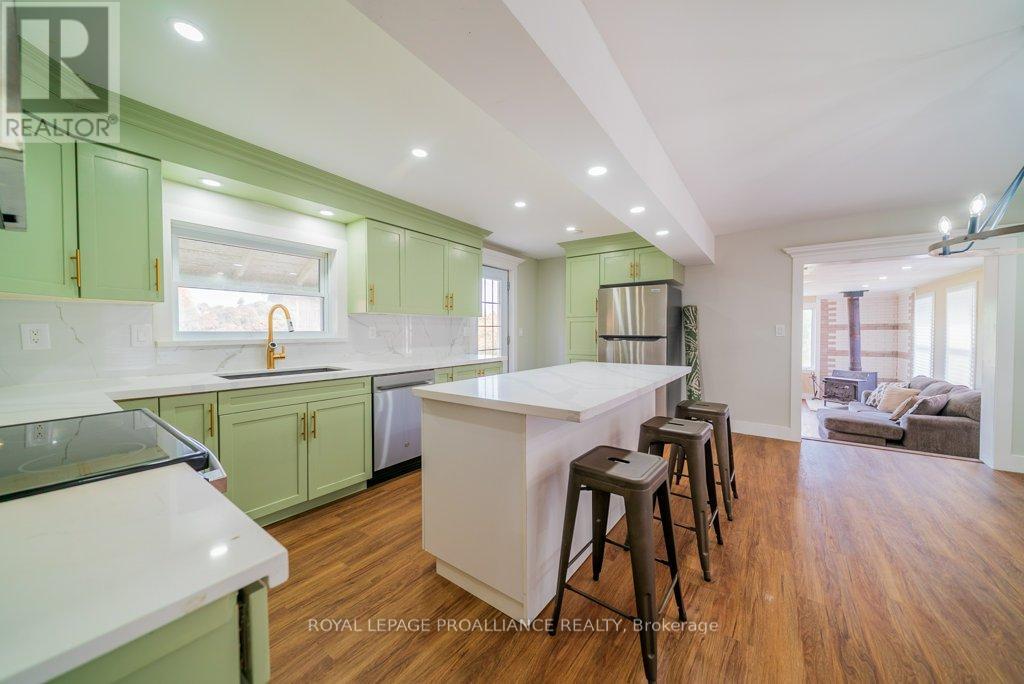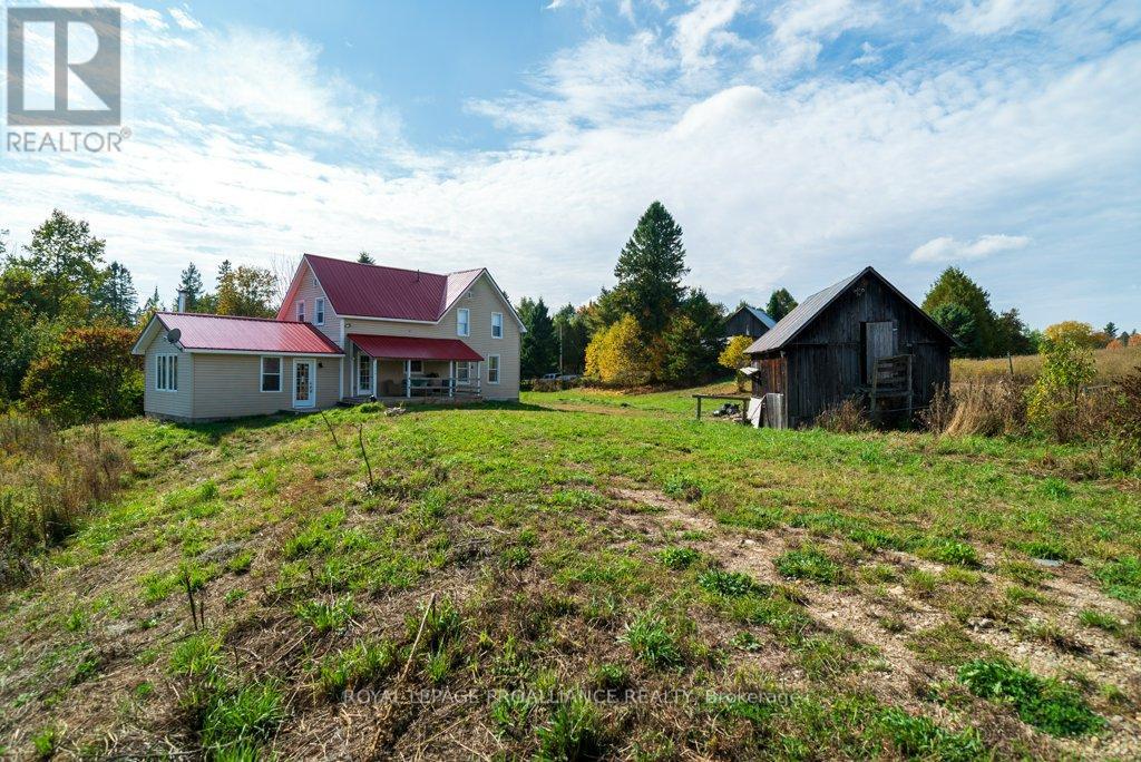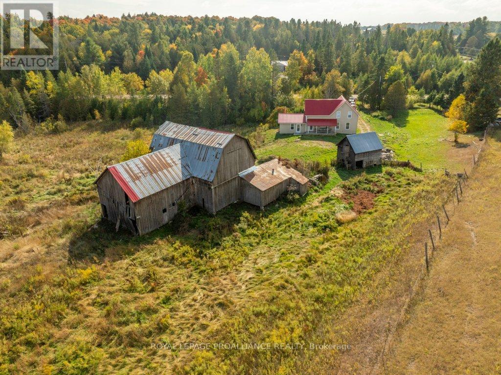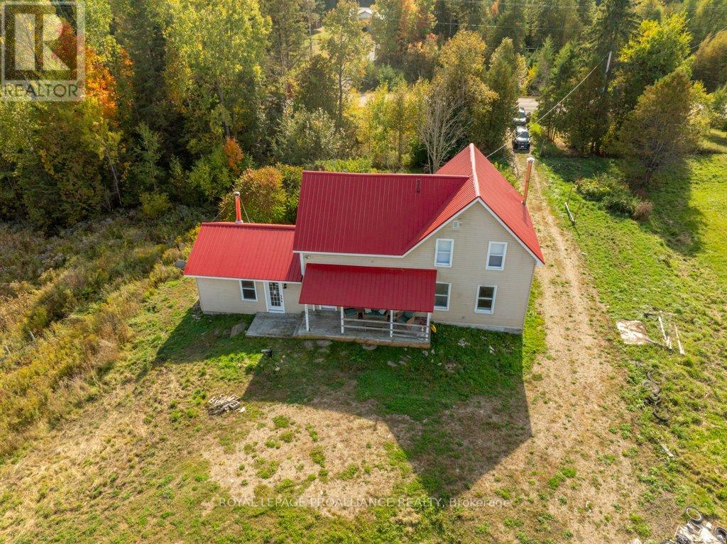 Welcome to your dream farmhouse retreat in the heart of Ardoch, Ontario, nestled within the breathtaking Land O'Lakes region. Set on over 10 acres of peaceful countryside, this beautifully renovated 3-bedroom, 2-bathroom home offers the perfect blend of rustic charm and modern comfort.With 1,547 sq ft of thoughtfully designed living space, the main floor features a bright living room, a versatile den or guest bedroom, convenient main-floor laundry, and a newly finished 3-piece bathroom. The stunning farm-style kitchen is the heart of the home, complete with quartz countertops, easy-close cabinetry, laminate flooring throughout, and brand-new stainless-steel appliances-ideal for everyday living and entertaining alike.Upstairs, you'll find three generously sized bedrooms with closets and a fully renovated 4-piece bathroom, offering comfort and functionality for families or guests.The cozy family room is warmed by a wood-burning stove and provides walk-out access to both front and rear decks, where you can enjoy spectacular sunrises, sunsets, and the soothing sounds of nature.Significant upgrades include a new propane furnace, water softener, fully renovated kitchen and bathrooms, updated plumbing, and ample storage throughout. Outside, the property features a barn for storage or hobby-farm use and a chicken coop, opening the door to endless rural living possibilities.Perfect for outdoor enthusiasts, hobby farmers, or those seeking a quieter lifestyle, this property is surrounded by pristine lakes ideal for fishing, swimming, and boating, while still being just minutes from local amenities.This is a rare opportunity to enjoy move-in-ready country living in one of Eastern Ontario's most scenic regions. Don't miss your chance to make it yours. (id:64974)