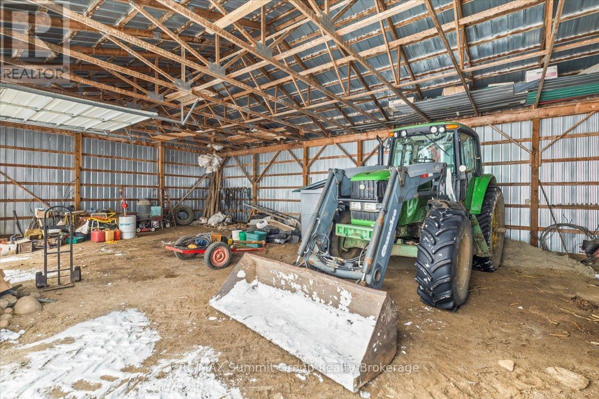 Just over 100 acres, located only 15 minutes from Collingwood, offering approximately 60 to 65 workable acres, 5 acres of pasture, and 25 acres of hardwood bush, with the balance made up of the home and outbuildings. The workable land is a combination of Listowel Silt Loam and Osprey Loam soils, both known for good drainage, strong nutrient-holding capacity, and suitability for crops. The house is a solid red brick two-storey built around 1900 with about 1,600 sq ft of living space and features five bedrooms, a 3-piece main floor bathroom, and a 3-piece ensuite on the second floor, along with original hardwood floors, older windows, a metal roof, a covered front porch, and a back mudroom. The stone foundation with poured foundation addition is in good condition and the basement includes the laundry area, a cold room, and the forced air oil furnace with convenient exterior access. Outbuildings include a 20' x 20' garage with a concrete floor, a 30' x 60' drive shed with two large doors and a dirt floor, and a traditional bank barn with water. This is an excellent farm with a practical and workable setup, quality loam soils, useful buildings, and a farmhouse ready for its next chapter. (id:64974)