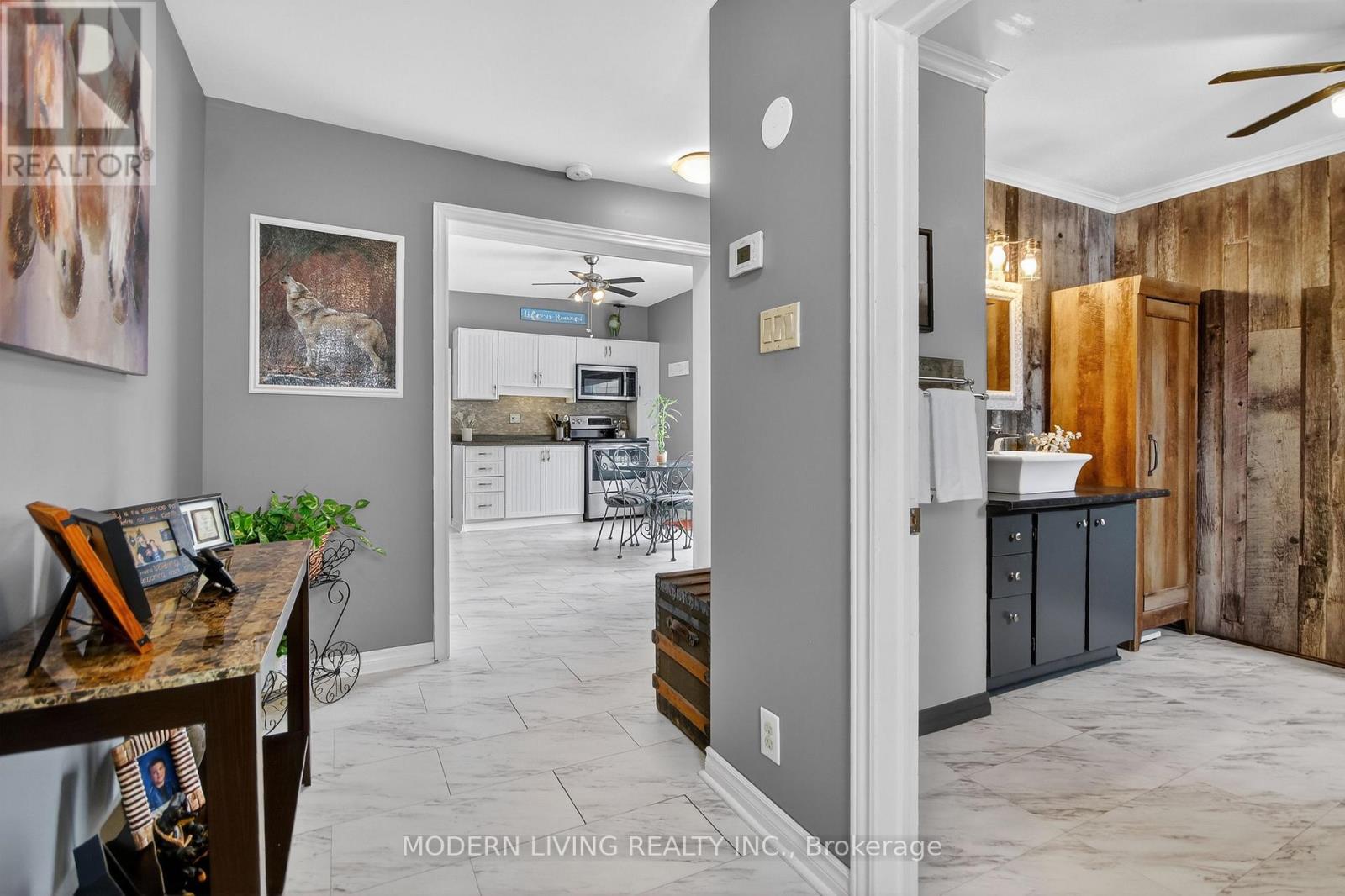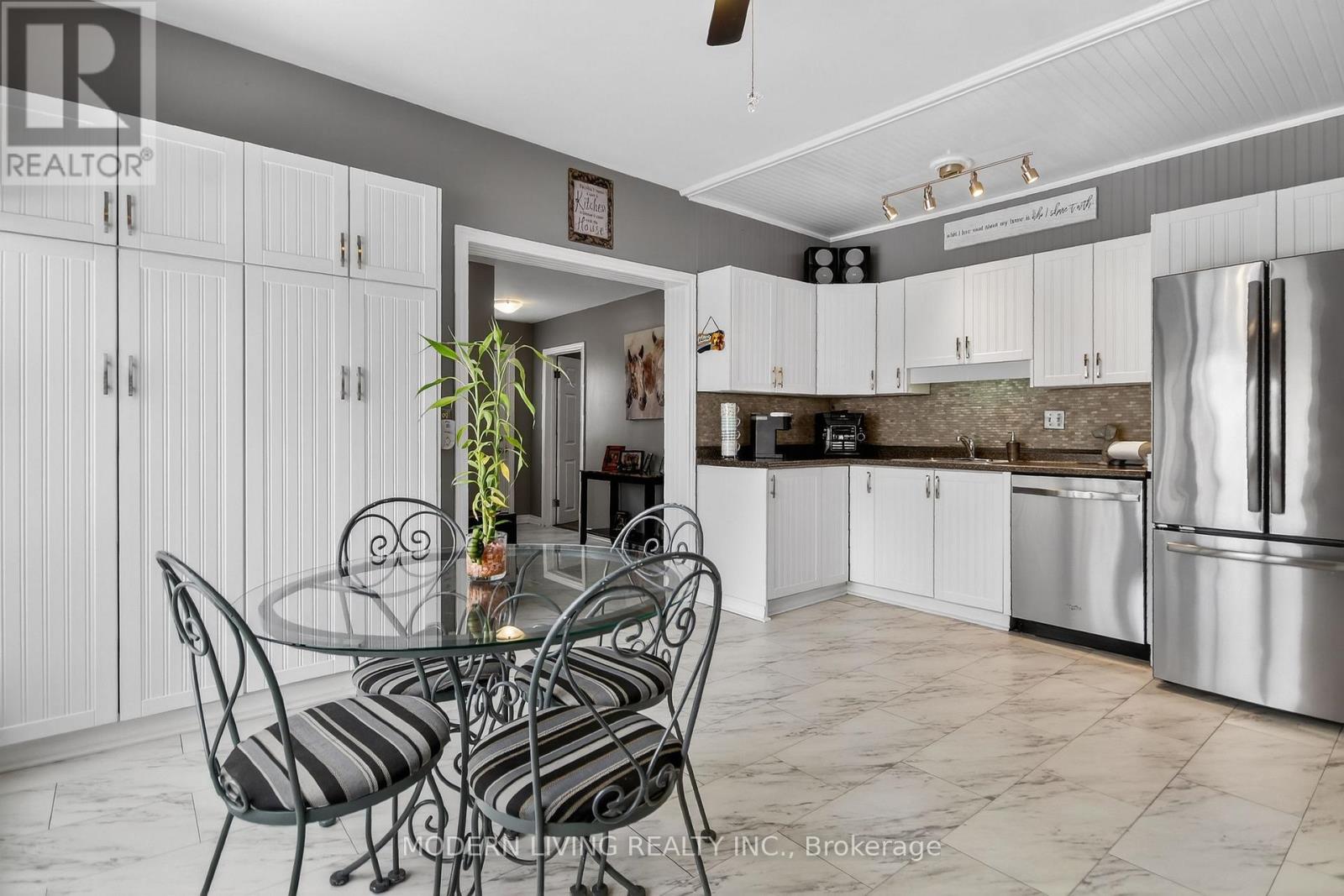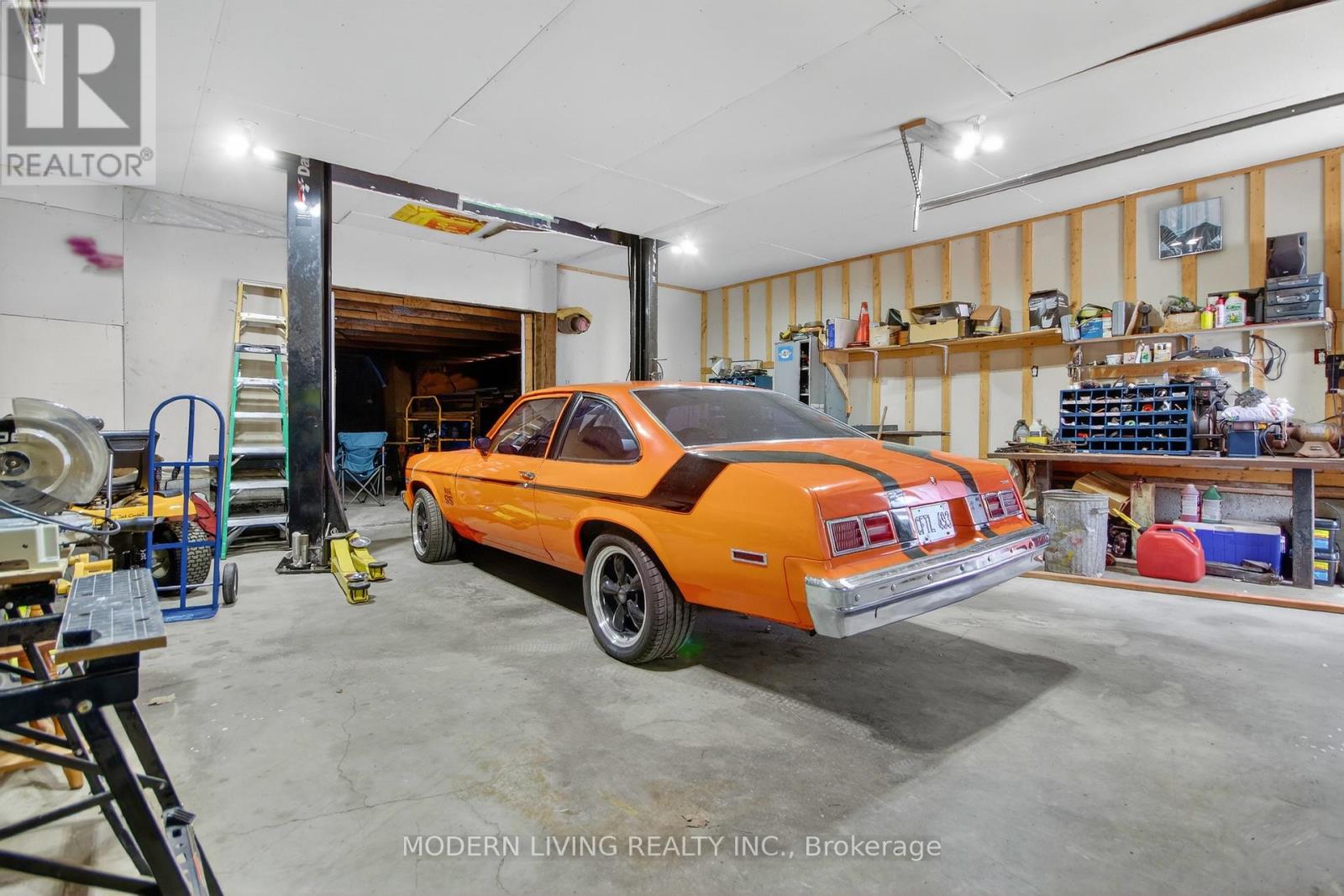 In the heart of Richmond is this sought after bungalow on a beautiful entertainment size fully fenced large yard with inground pool & Gas BBG hookup. Wow, amazing heated garage with 10ft. ceilings 26X26 + attached unheated 8ft. ceilings 24X22 building, great for storage. Garage has non-maintenance tin roof & large lift door for larger toys. Conveniently Zoned V1C which will allow to create small to medium scale commercial business to live & work at home. All this walking distance to stores. This home has great size entertaining rooms & plenty of space to install a second bathroom or put the 3rd. bedroom back. The master bedroom has 2 cedar closets, main floor washer/dryer layout. Bright eat-in Kitchen with picture window & pantry, all stainless steel appliance included. Fully finished lower level for family gatherings with Bar & fridge & large extra bedroom. Quality dry cork flooring & gas fireplace in the basement for ambiance & warmth. Most windows approx. 10 years, furnace 2008, central air 7, roof 17, well casing 2025. (id:64974)