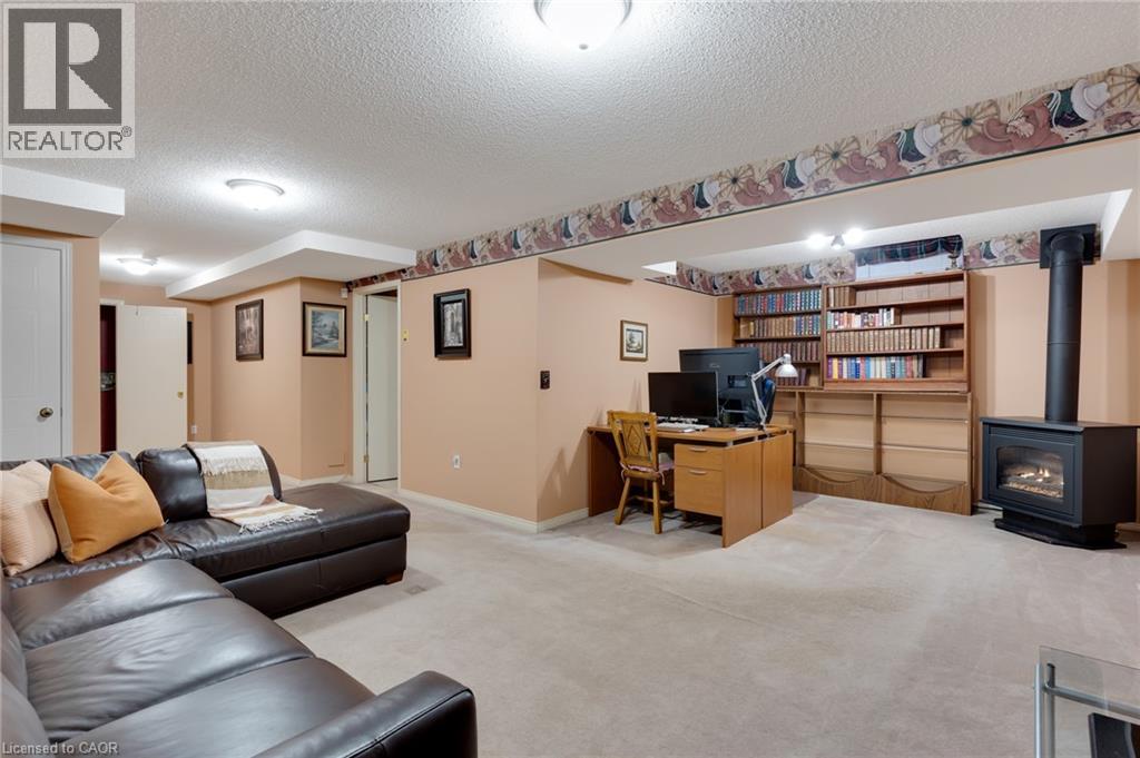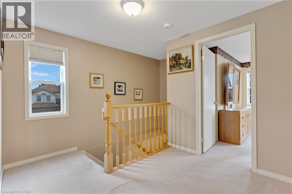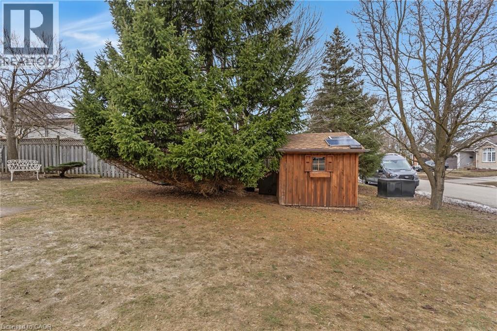 Well-maintained 3-bedroom, 4-bathroom family home situated on an oversized corner lot in the desirable Eastbridge neighbourhood. Located on a quiet crescent and cul-de-sac with minimal traffic, the property offers a unique sense of space with open yard along two sides, allowing the homeowner to enjoy the full yard and boulevard areas. Mature trees around the property provide privacy while maintaining a welcoming community setting. The main floor features a functional layout with a bright living room with a cozy gas fireplace, dining area with a sliding door to the backyard deck, and kitchen with ample cupboard space, dual sinks, pot lighting, and a gas stove. There is also a powder room and convenient indoor access to the garage. Upstairs you will find 3 good sized bedrooms, including a primary bedroom with a vaulted ceiling, lots of windows, and 3-pcs ensuite bathroom. There is also a 4-piece main bathroom serving the additional bedrooms. The finished basement provides additional living space with a recreation area featuring a gas fireplace—perfect for family movie nights or relaxing. This level also includes a powder room, laundry/utility room that seconds as a workshop or hobby space. Outside, the backyard features a unique workshop-style shed with barn-board siding, shelving, a workbench, and solar-powered lighting, making it an excellent space for projects, hobbies, or extra storage. The garage and driveway provide ample parking and storage. Located in the highly sought-after Eastbridge area, this home is within walking distance of local schools, parks, and trails. Residents enjoy easy access to the Walter Bean Grand River Trail, Kiwanis Park, RIM Park and the Manulife Sportsplex, Grey Silo Golf Course, and the nearby BlackBerry campus. Shopping, groceries, restaurants, and everyday amenities are all close by, with convenient access to the expressway and Highway 401 for commuters. Don’t miss out on this amazing opportunity and book your showing today! (id:64974)
