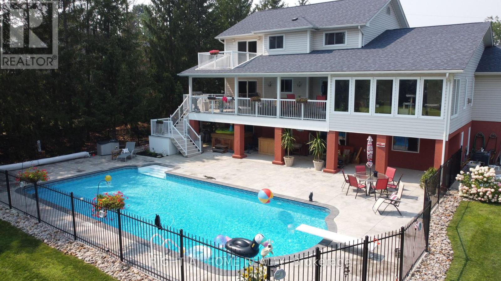 Must-See! Custom Home in desirable Peterborough estate neighbourhood. This quality, custom-built 4-bedroom, 4-bath residence sits on a private, beautifully landscaped property featuring a huge in-ground pool, expansive patio, and plenty of space to play-perfect for entertaining or relaxing in your own backyard oasis. Located in highly desirable East City, enjoy easy access to shops, restaurants, top-rated schools, and some of Peterborough's most iconic attractions. Walk to the world-famous Lift Lock, Little Lake, Beavermead Beach, Rogers Cove, and Lift Lock Golf Club. Outdoor enthusiasts will love being minutes from the Trans Canada and Rotary Greenway trail systems. Trent University is just five minutes away, with Highway 115 two minutes from your door and Highways 407/404 reachable in approximately 45 minutes. Inside, the home is packed with premium features including smooth ceilings, crown mouldings, oak hardwood floors, heated floors, and a heated garage. A bright main-floor office offers serene views-ideal for working from home-while a heated 500-sq-ft workshop provides endless possibilities for hobbies or storage. Finished walk-out lower level. With ample parking and set among an enclave of custom homes, this superb neighbourhood is known for both its quality residences and friendly community.Download the feature sheet and floor plans for full details, and be sure to view the virtual tour. Rarely available in this location-don't miss your chance to own this exceptional East City dream home. (id:64974)
