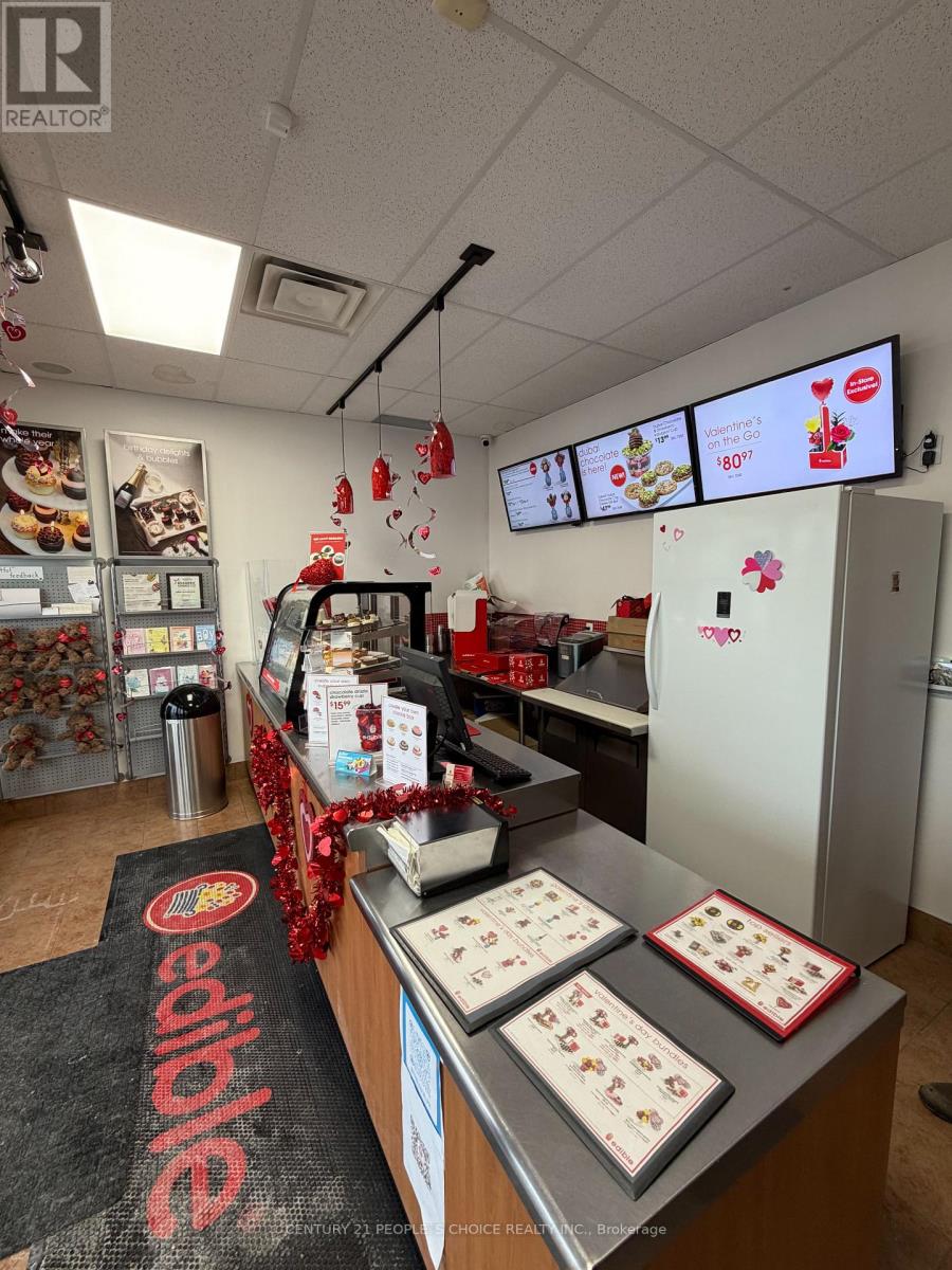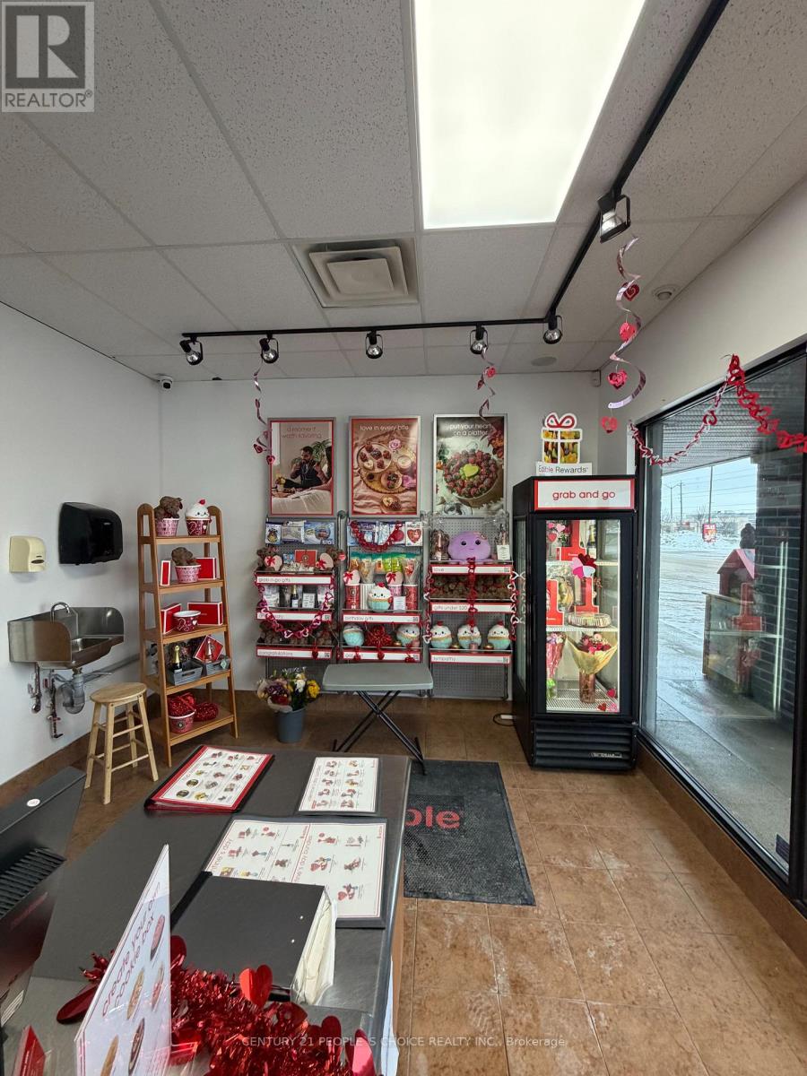 EXCELLENT BUSINESS OPPORTUNITY!!!!! Very well known EDIBLE franchise located in a Guelph region serving chocolate covered and fresh fruits gifts and treats. Conveniently located near University of Guelph and situated in front of a stone road mall. Near by Tim Horton's ,Dominos , Wendy's ,major groceries, Dentists and major banks. This store is serving over the past 18 years and the Current owners have built loyal clientele throughout Guelph and Cambridge region over the past 7+ years with lots of repeated orders. Highly profitable business. Very low food cost. Excellent lease 5944 (Including TMI and HST).Current lease until December 2028 with the option to renew 5+5 years. Very busy plaza , excellent franchise support and training. Please DO NOT GO DIRECT OR SPEAK TO THE STAFF. Easy operations, No competition , Updated equipment ,Experienced staff ,Semi-Absentee owner operation. (id:64974)