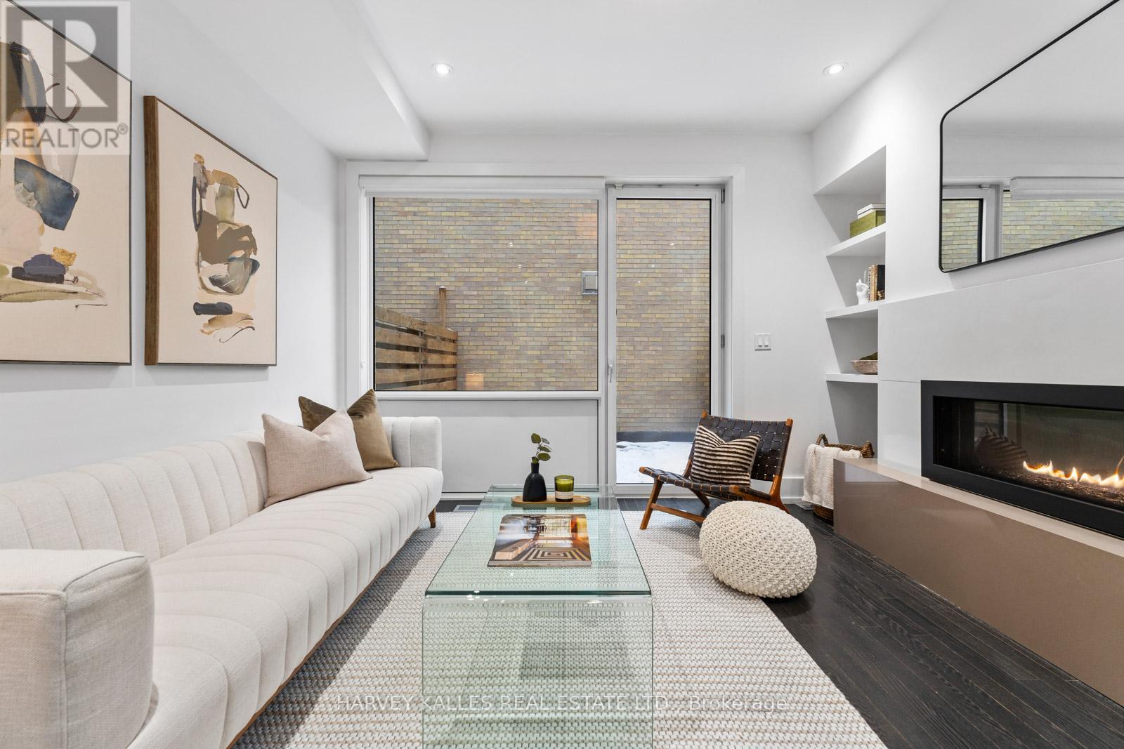Welcome to 5A Sylvan Ave, a spacious & beautifully designed 3+1 bedroom, 4-bathroom townhouse ideally located near College & Dovercourt. This move-in-ready home has been thoughtfully updated & meticulously maintained, offering a fresh,modern aesthetic thru-out. Rich hrwd flrs span every level,creating a seamless & timeless design. The main flr features a bright, open layout filled w/natural light & carefully curated designer fixtures. The modern kitchen is both stylish & functional, featuring a s/s oven and gas range, along w/a fully panelled fridge & freezer for a sleek, integrated look. A b/i island w/seating anchors the space, while clean lines & contemporary finishes flow effortlessly into the living area,highlighted by a gas fireplace. A walk-out from the kitchen leads to a private,fenced-in terrace, offering an exceptional outdoor retreat w/rare privacy, water access, & a gas line for a BBQ. A full D/R & convenient powder rm add everyday functionality, while the home's low-maintenance living makes it as practical as it is beautiful. Upstairs, generously sized bedrms offer w/i closets & comfortable proportions. The primary suite is a serene retreat, featuring a private balcony overlooking a quiet,tree-lined street & a spa-inspired ensuite w/a large glass-enclosed shower, dbl vanity, soaker tub, & large window that fills the space w/natural light.Additional bathrms are well-appointed & finished w/spa-like details.The lower level features a high-ceiling bsmnt w/excellent flexibility, ideal as an additional br, home office, or bonus living space. Underground prkg w/private garage access completes this exceptional offering.Located just steps to Dufferin Grove Park & close to TTC transit, major roadways, & a vibrant selection of restaurants & cafes,this home is located in the heart of the sought-after Dufferin Grove neighbourhood & the desirable College & Dovercourt area (id:64974)