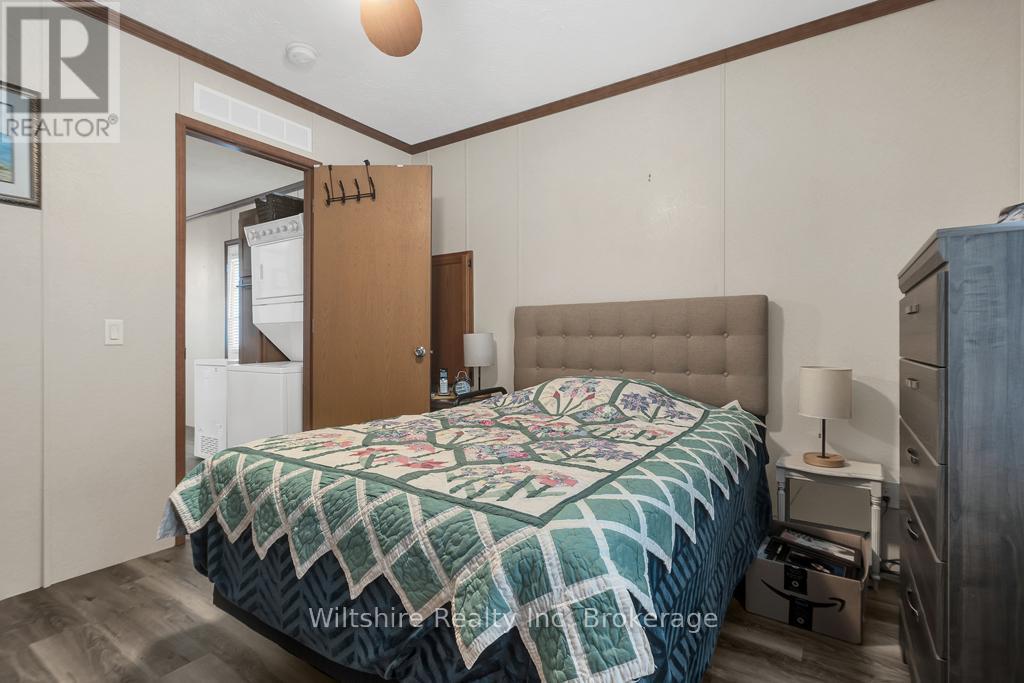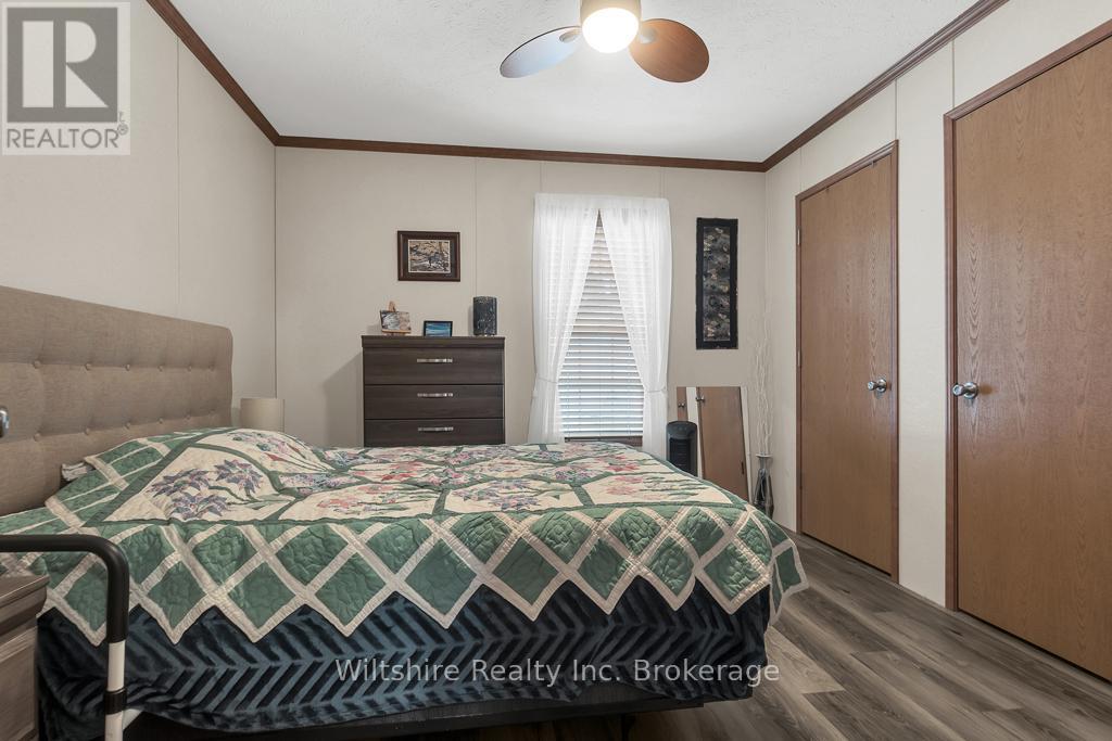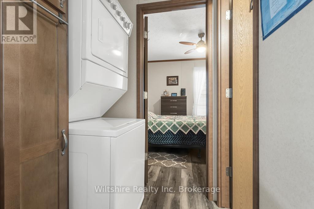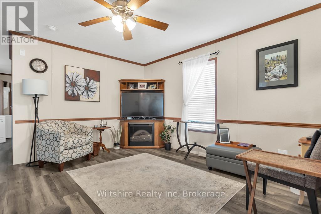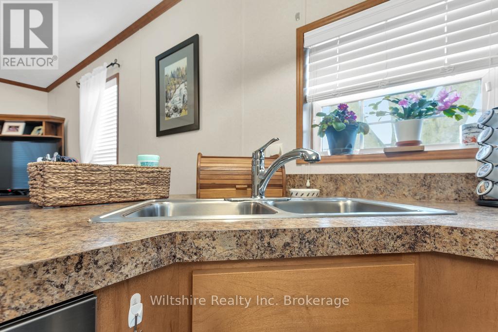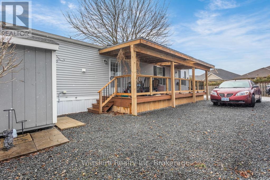 Step into a lifestyle of comfort and convenience in this beautifully maintained, 10-year-young mobile home. The heart of the unit features a spacious kitchen adorned with rich wood cabinetry and ample storage solutions, perfect for the home chef. The thoughtful layout includes a bright primary bedroom boasting double closets, a secondary bedroom for guests or a home office, and a clean 4-piece bathroom.The living space extends outdoors to a large covered deck, ideal for morning coffees regardless of the weather. Situated on an easy-to-maintain lot, the property includes a private driveway and a handy garden shed for extra storage. Perhaps the home's best feature is its location; nestled within a welcoming and friendly community, you'll find that the wonderful neighbours truly make this house a home. (id:64974)
