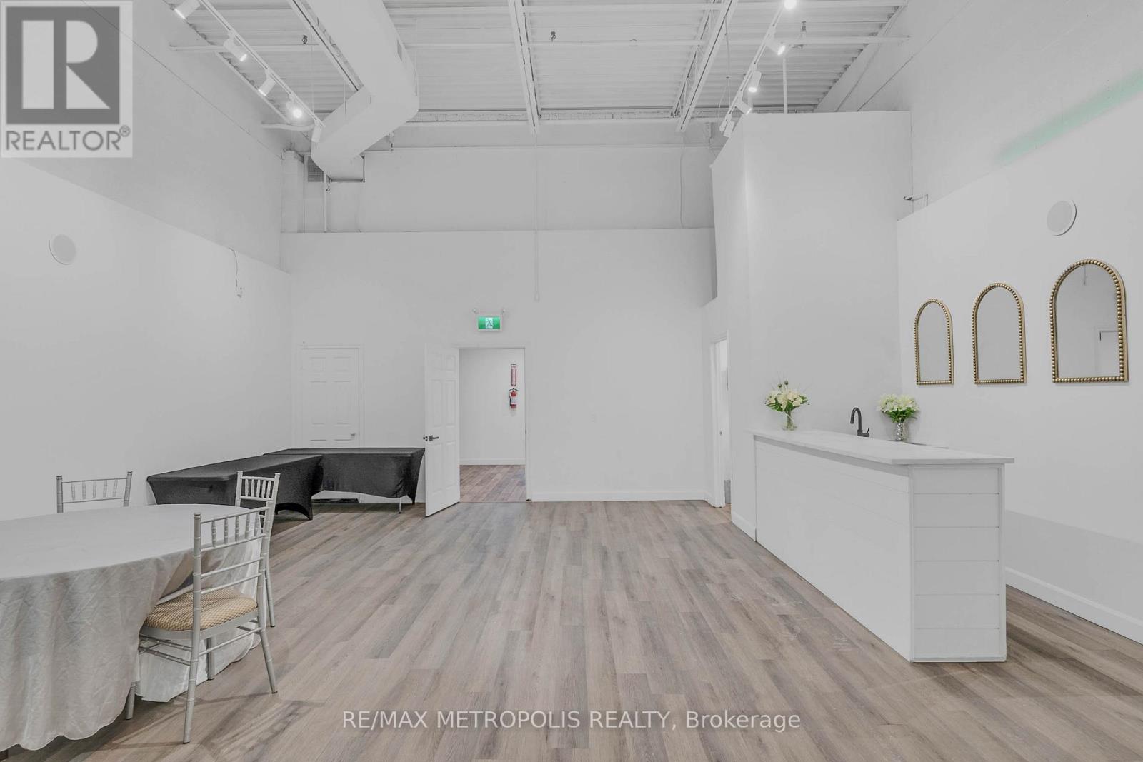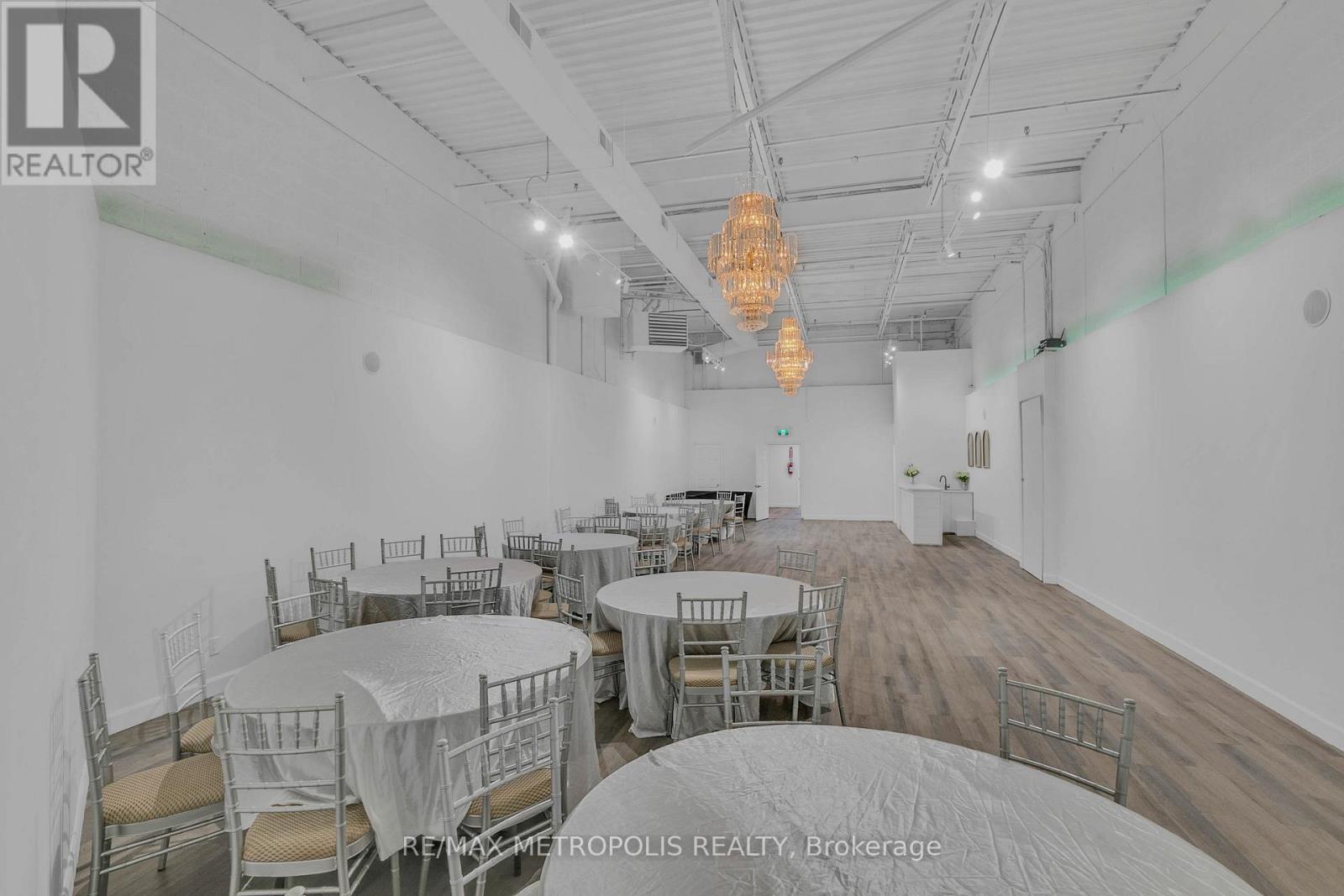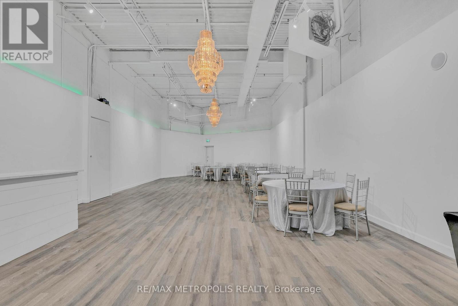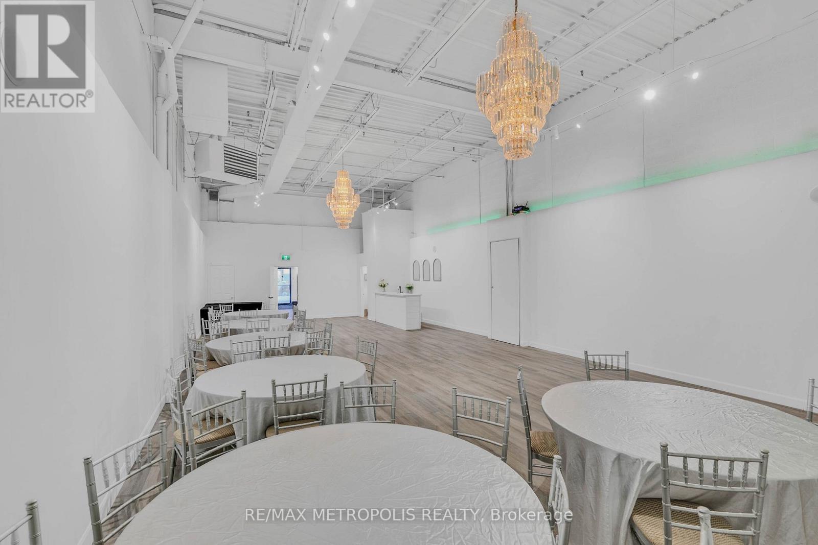 Turnkey Event Space & Cash-Flowing Business for Sale - Vibe Event Space. Approximately 2,400 sq ft featuring a premium 1,400 sq ft main party room(Seating for 80) with 18-ft ceilings, engineered hardwood flooring, two grand ballroom chandeliers, eco-friendly track lighting, and a built-in surround sound system with Bluetooth connectivity. Includes a 10-ft wet bar with fridge, sink, and microwave, plus perimeter lighting ideal for upscale events. A stylish 400 sq ft front lobby with private entrance, faux grass feature wall, and eco-friendly potlights creates a strong first impression. Space includes two washrooms, storage room, and ample parking. Sale includes all furniture and equipment: 8 round 6-ft tables, 8 rectangular 6-ft tables, Chiavari chairs, mirrors and wall accents, sofas, and table coverings-allowing immediate operation with no additional capital required. Major upgrades completed: brand new furnace and air conditioner (June 2025) and new roof (August 2025). Business comes with confirmed 2026 bookings included in the sale, providing immediate forward cash flow. Additional income upside with four offices upstairs available for new owner to lease out as individual offices or to use themselves. Sale also includes website, email, phone number, and social media accounts for seamless brand continuity. Owner willing to provide training for an easy transition. Ideal for investors or owner-operators seeking a proven, turnkey event business with existing revenue and growth potential. Lease Approx $5368.27 for this year 2026 including Base Rent, TMI and HST. Low Utilities however based on usage. Water Included in Condo Fee Paid by Landlord. Lease has 2 Years left Plus option to renew for 3 years. (id:64974)
