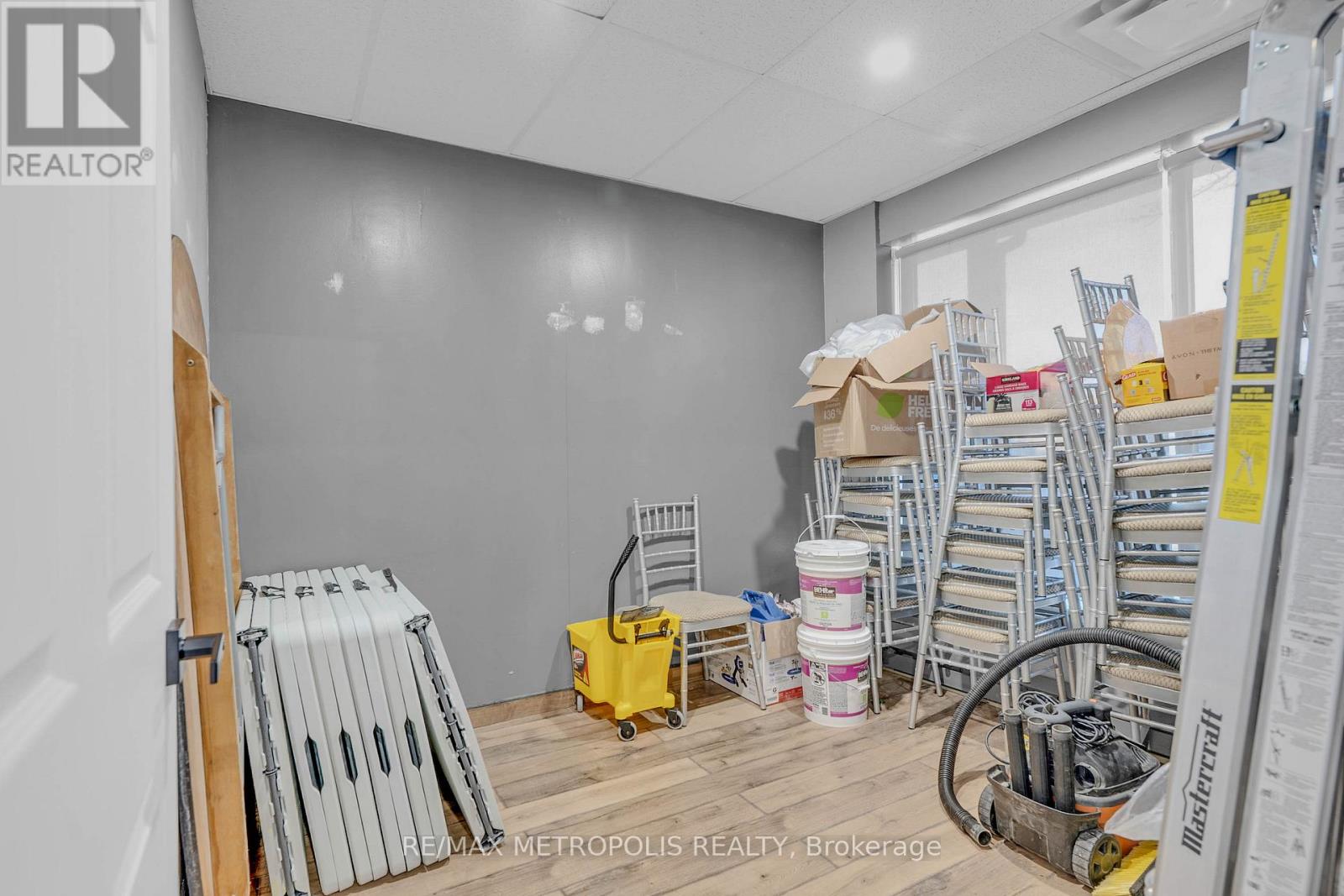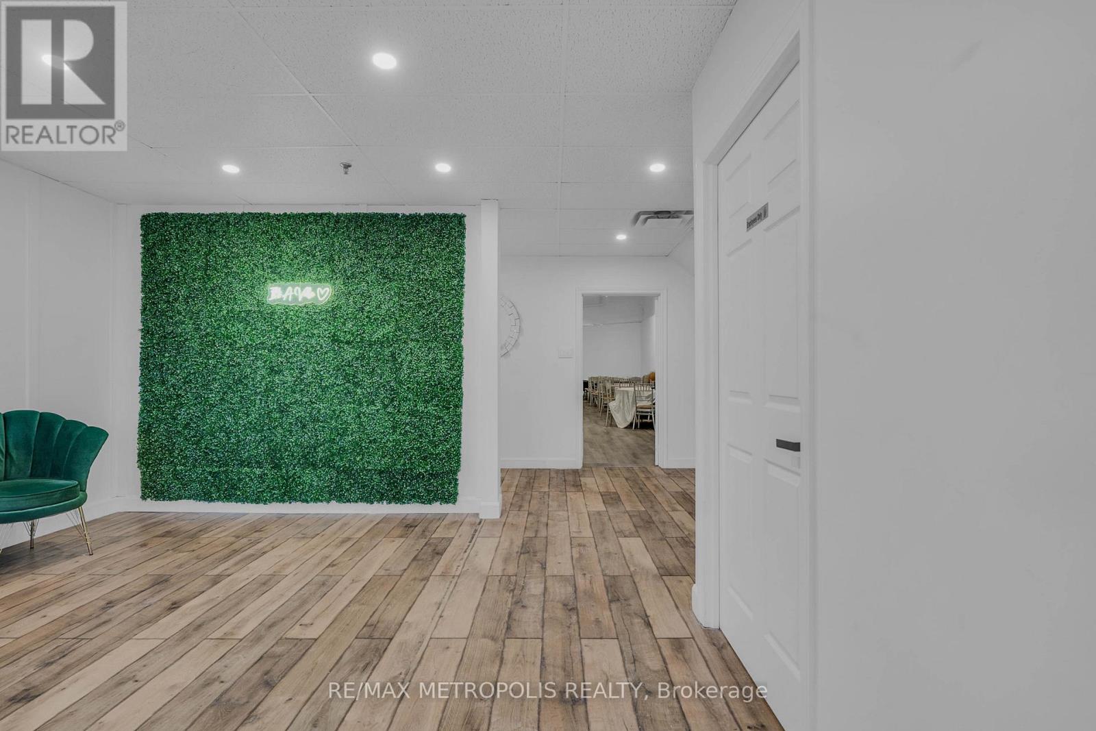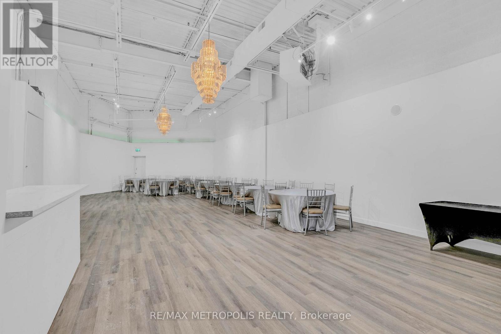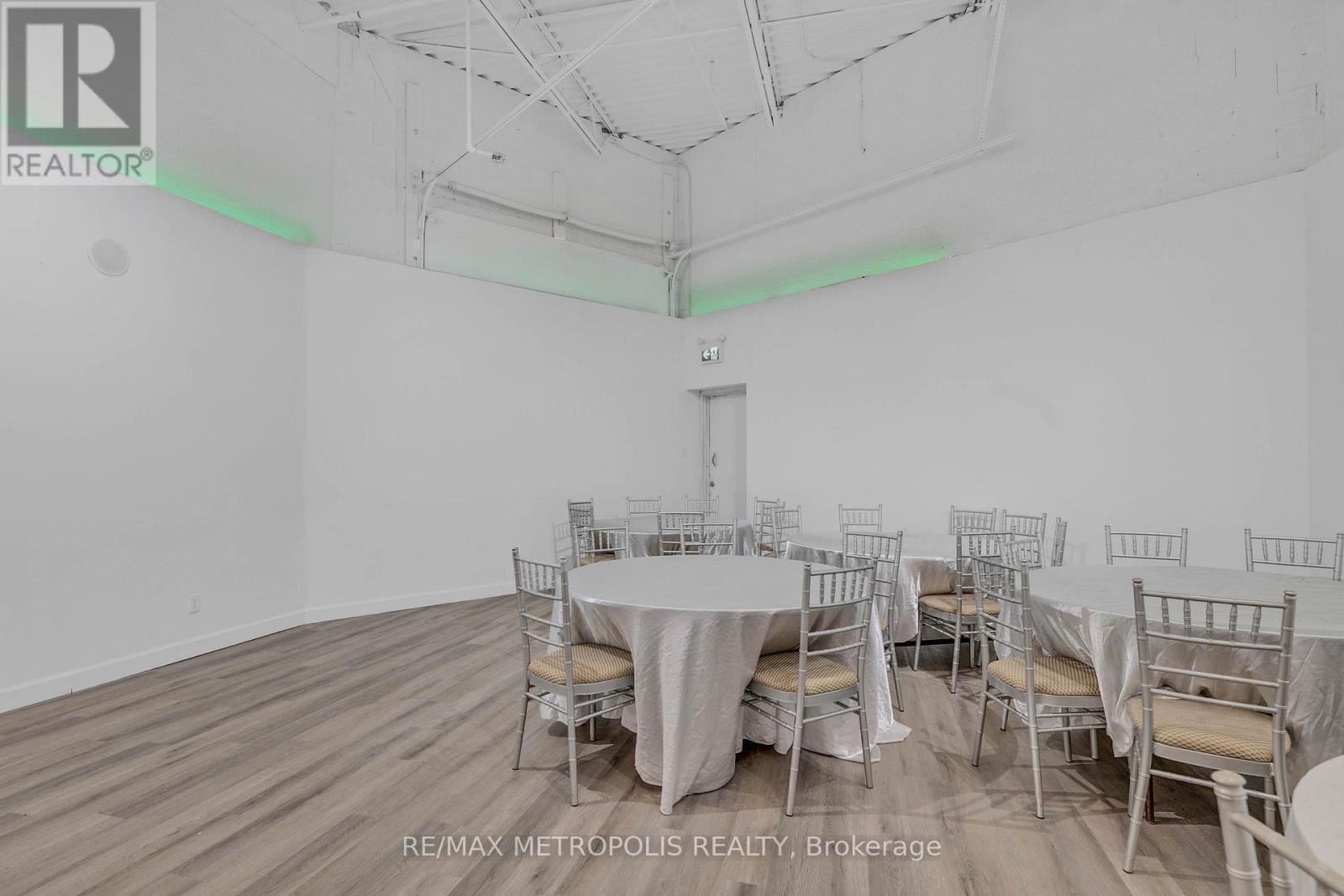 Turnkey Event Space & Cash-Flowing Business for Sale - Vibe Event Space. Approximately 2,400 sq ft featuring a premium 1,400 sq ft main party room(Seating for 80) with 18-ft ceilings, engineered hardwood flooring, two grand ballroom chandeliers, eco-friendly track lighting, and a built-in surround sound system with Bluetooth connectivity. Includes a 10-ft wet bar with fridge, sink, and microwave, plus perimeter lighting ideal for upscale events. A stylish 400 sq ft front lobby with private entrance, faux grass feature wall, and eco-friendly potlights creates a strong first impression. Space includes two washrooms, storage room, and ample parking. Sale includes all furniture and equipment: 8 round 6-ft tables, 8 rectangular 6-ft tables, Chiavari chairs, mirrors and wall accents, sofas, and table coverings-allowing immediate operation with no additional capital required. Major upgrades completed: brand new furnace and air conditioner (June 2025) and new roof (August 2025). Business comes with confirmed 2026 bookings included in the sale, providing immediate forward cash flow. Additional income upside with four offices upstairs available for new owner to lease out as individual offices or to use themselves. Sale also includes website, email, phone number, and social media accounts for seamless brand continuity. Owner willing to provide training for an easy transition. Ideal for investors or owner-operators seeking a proven, turnkey event business with existing revenue and growth potential. Lease Approx $5368.27 for this year 2026 including Base Rent, TMI and HST. Low Utilities however based on usage. Water Included in Condo Fee Paid by Landlord. Lease has 2 Years left Plus option to renew for 3 years. (id:64974)