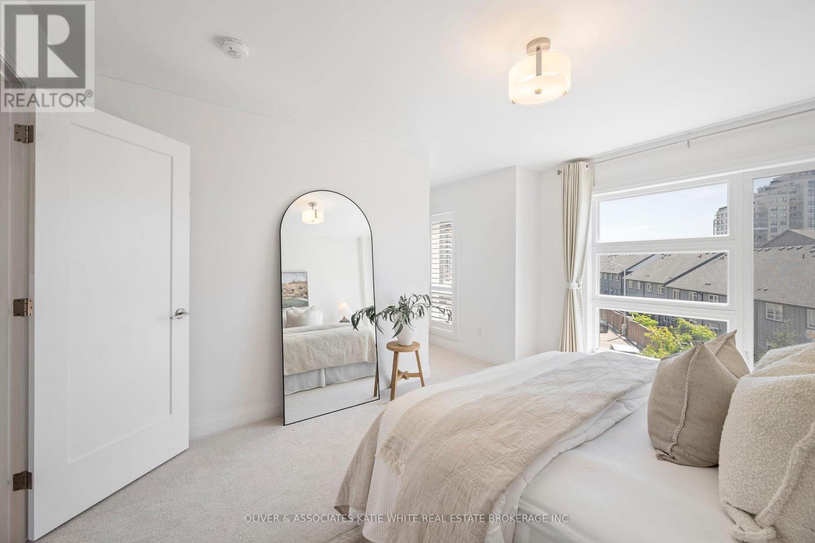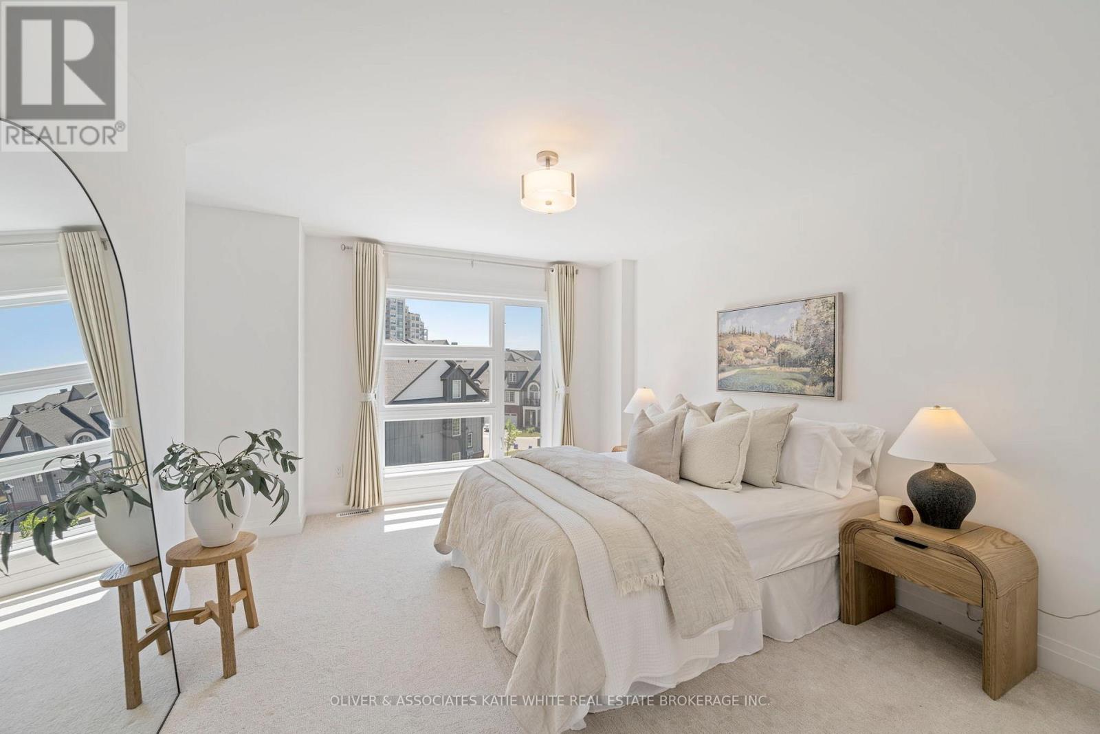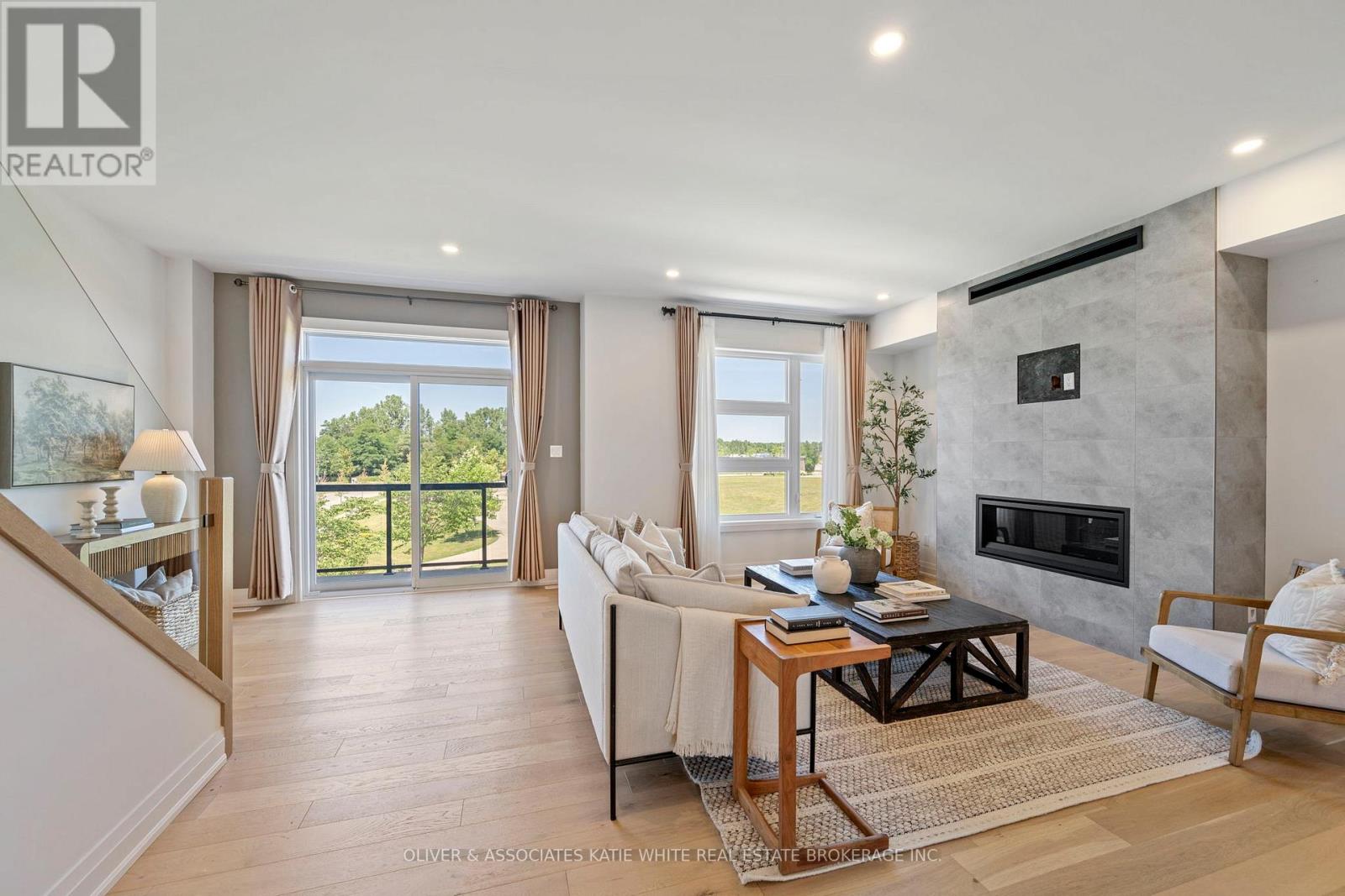 Luxury townhome nestled in an exclusive enclave in the Upland's neighbourhood. Contemporary design and modern finishes throughout. Very spacious floor plan with tons of living space. The main level has inside entry from the double car garage, welcoming entrance foyer, bedroom (perfect for a home office) and guest bathroom. The second floor offers an open concept living space perfect for entertaining. Sparkling kitchen with island and breakfast bar that overlooks the dining area and great room with fireplace and sliding doors to balcony. Bonus separate den/small bedroom. Upper level features 2 generously-size bedrooms with large windows with beautiful views. Primary Suite that has a walk-in closet with built-in shelving, and ensuite bath with spacious glass walk-in shower and dual sink vanity. Convenient upper level laundry and access to private terrace. Finished basement area that offers an additional full bathroom. Snow removal and ground maintenance included in low monthly condo fee. Prime location near shopping centres, parks, walking trails, schools and golf course. Move-in-ready with quick possession available. (id:64974)
