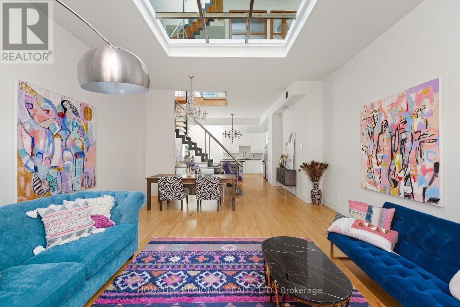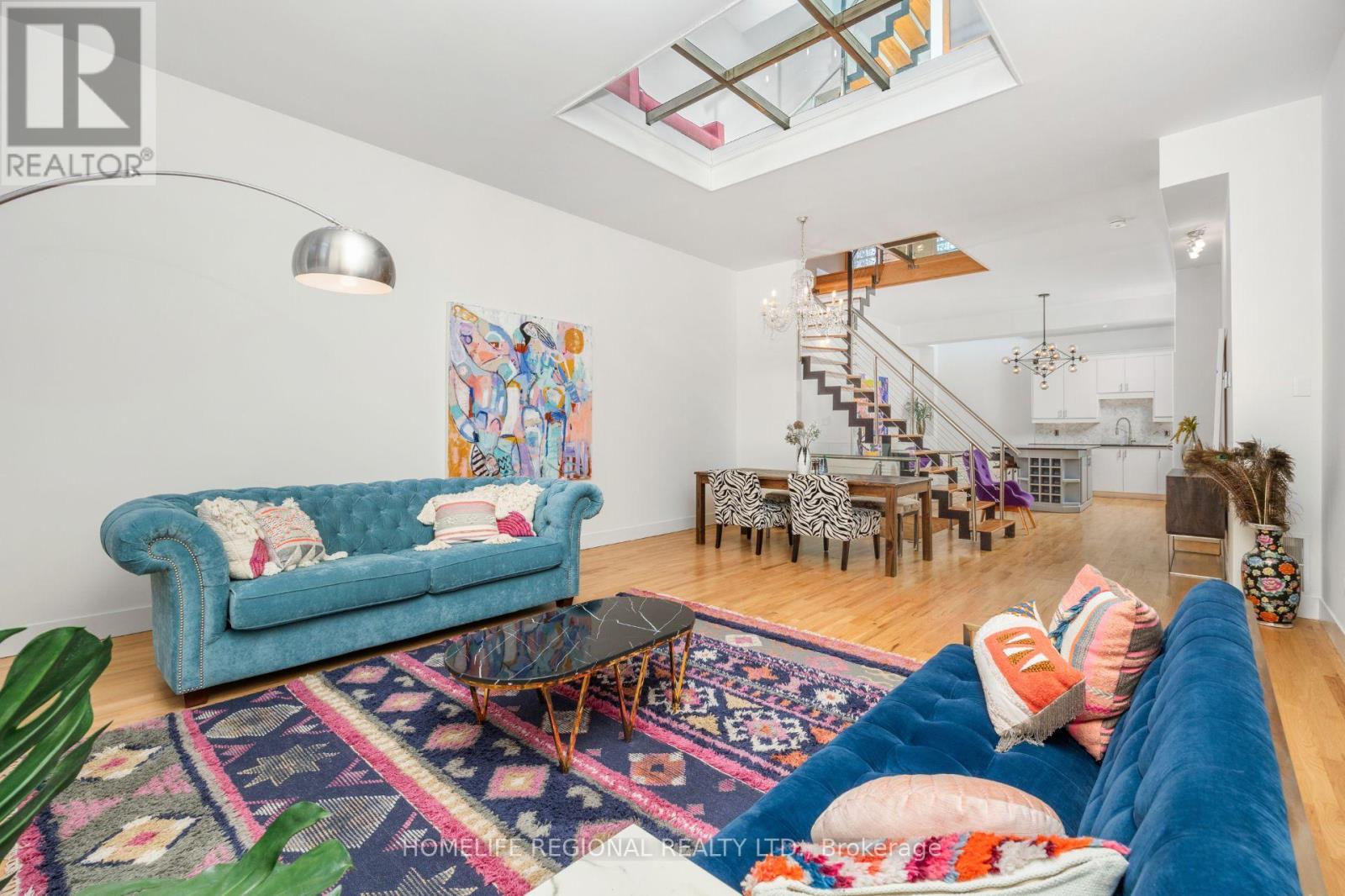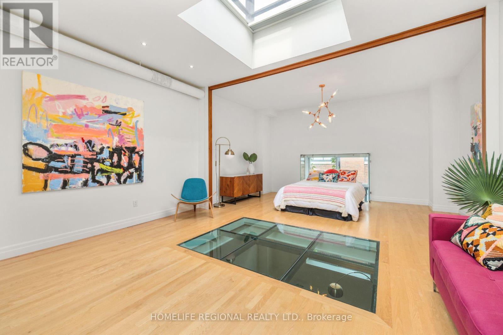 Welcome to Toronto's Multi-Level Super Loft in Trinity Bellwoods! Experience a rare fusion of history, style, and modern urban living in one of Toronto's most sought-after neighbourhoods. Tucked inside the exclusive Claremont Lofts a striking 1930's banquet hall transformed into just eight boutique residencesthis is no ordinary loft. Unit #6 is the crown jewel of the building. Offering the largest foot print of all the residences, this spectacular multi-level loft pairs architectural drama with thoughtful design. Step inside to soaring ceilings, massive skylights, and an open-concept layout bathed in natural light. A glass catwalk and unique floor panels create a dazzling play of sunlight across levels, setting this loft apart as a true architectural showpiece. Highlights include, a bright, airy main floor perfect for everyday living and entertaining, 2 + 1 bedrooms (ideal for a guest suite, office, or creative studio) A luxurious primary retreat with ensuite bath and in-unit laundry, modern kitchen with stainless steel appliances, gorgeous hardwood floors, private garage parking, private rooftop terrace spanning nearly 700 sq. ft. With sweeping skyline views and total privacy, its your own urban sanctuary whether youre hosting summer soirées or enjoying quiet evenings under the stars. All of this is just steps from Queen West and the vibrant heart of Trinity Bellwoods, where iconic parks, eclectic boutiques, buzzing cafés, and some of the citys best dining and nightlife are at your doorstep. Don't miss this rare opportunity to own a one-of-a-kind loft in a location that truly has it all. (id:64974)