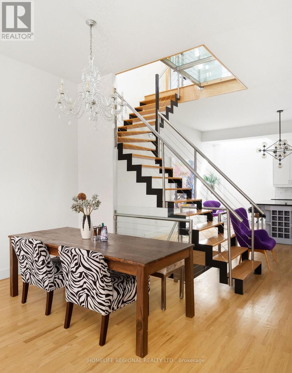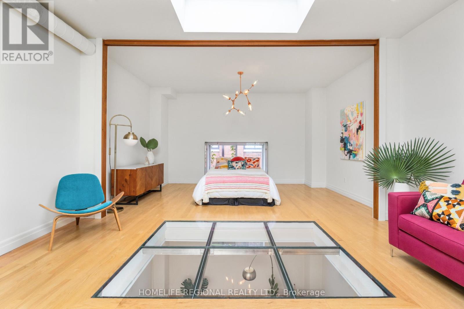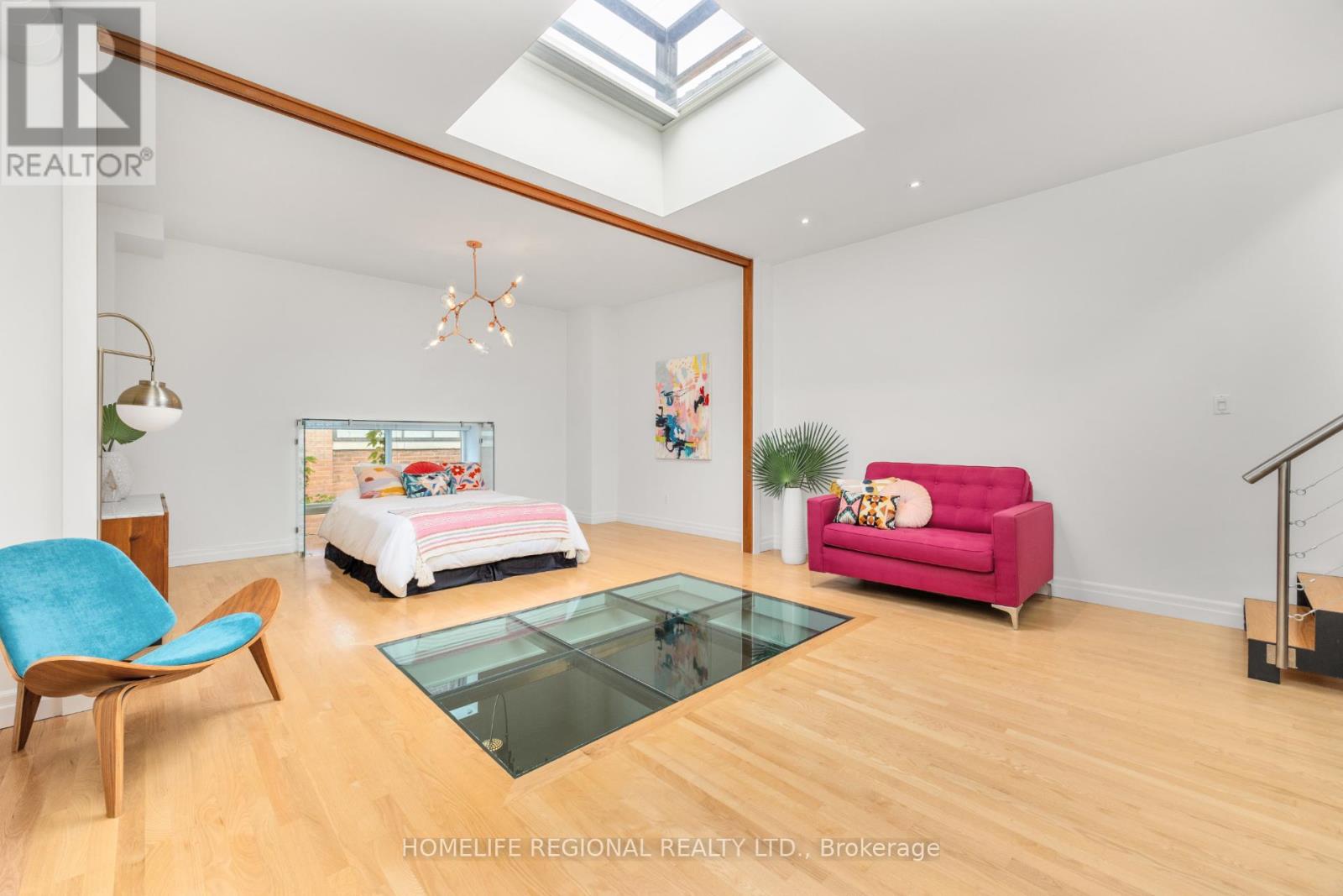 Welcome to Toronto's Multi-Level Super Loft in Trinity Bellwoods! Experience a rare fusion of history, style, and modern urban living in one of Toronto's most sought-after neighbourhoods. Tucked inside the exclusive Claremont Lofts a striking 1930's banquet hall transformed into just eight boutique residencesthis is no ordinary loft. Unit #6 is the crown jewel of the building. Offering the largest foot print of all the residences, this spectacular multi-level loft pairs architectural drama with thoughtful design. Step inside to soaring ceilings, massive skylights, and an open-concept layout bathed in natural light. A glass catwalk and unique floor panels create a dazzling play of sunlight across levels, setting this loft apart as a true architectural showpiece. Highlights include, a bright, airy main floor perfect for everyday living and entertaining, 2 + 1 bedrooms (ideal for a guest suite, office, or creative studio) A luxurious primary retreat with ensuite bath and in-unit laundry, modern kitchen with stainless steel appliances, gorgeous hardwood floors, private garage parking, private rooftop terrace spanning nearly 700 sq. ft. With sweeping skyline views and total privacy, its your own urban sanctuary whether youre hosting summer soirées or enjoying quiet evenings under the stars. All of this is just steps from Queen West and the vibrant heart of Trinity Bellwoods, where iconic parks, eclectic boutiques, buzzing cafés, and some of the citys best dining and nightlife are at your doorstep. Don't miss this rare opportunity to own a one-of-a-kind loft in a location that truly has it all. (id:64974)
