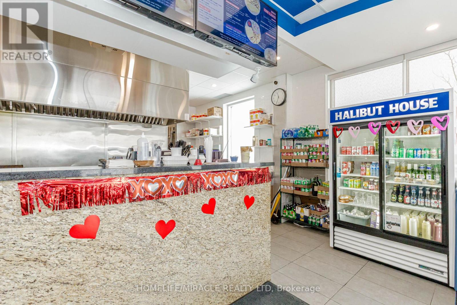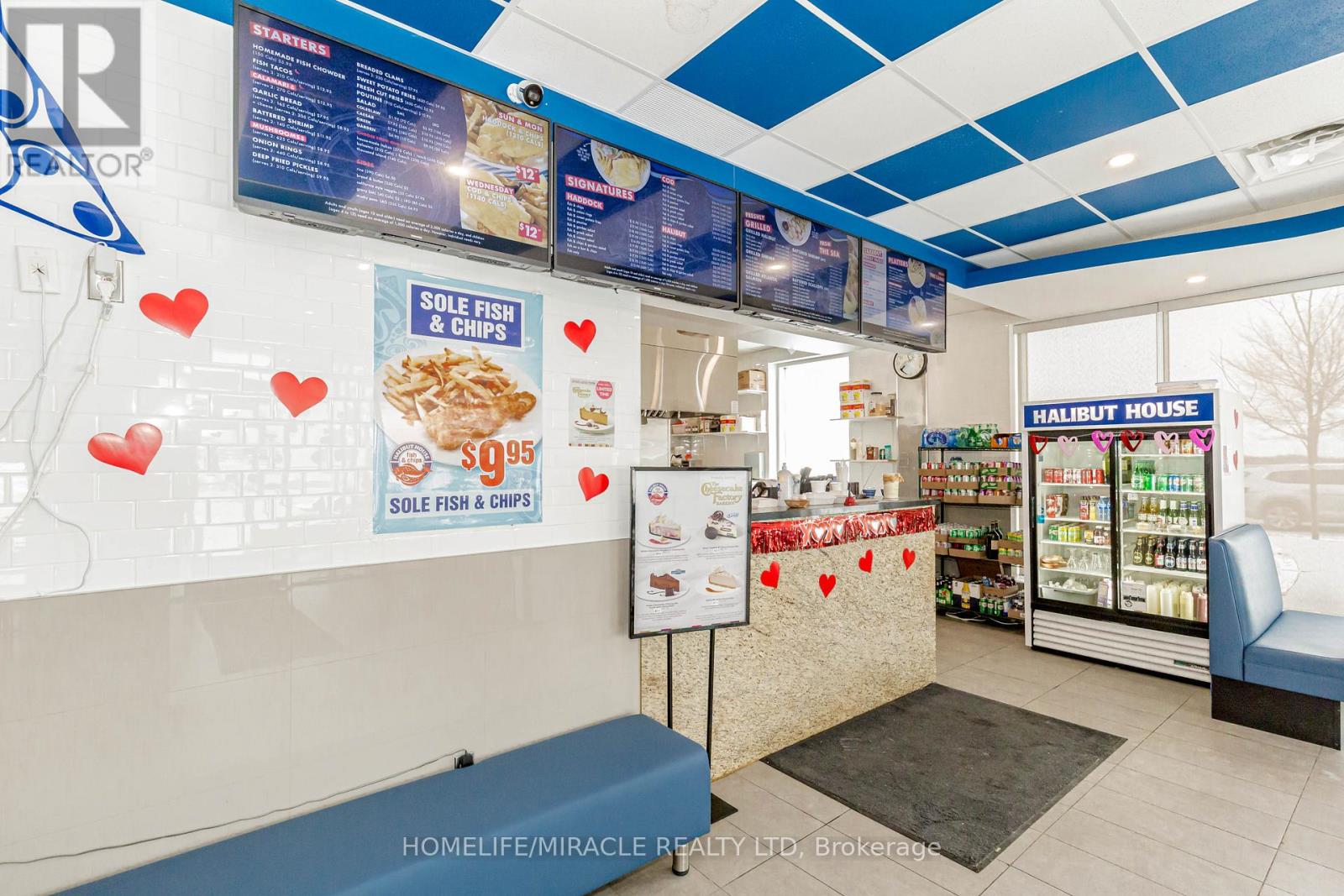 Halibut House Fish and Chips in Vaughan, ON is For Sale. Located at the intersection of McNaughton Rd E/Major Mackenzie Dr. Business is centrally located across busy area of Vaughan and Richmond hill. Surrounded by Fully Residential Neighbourhood, Close to Schools, Park, big box stores and more. Excellent Business with High Sales Volume, Low Rent, Long Lease, and More. Monthly Sales: Approx. $60000, Royalty: $2500/m, Area: 2900 sqft, Rent: 13,964/m (including HST), Lease Term: Existing till 2032 + option to renew. (id:64974)
