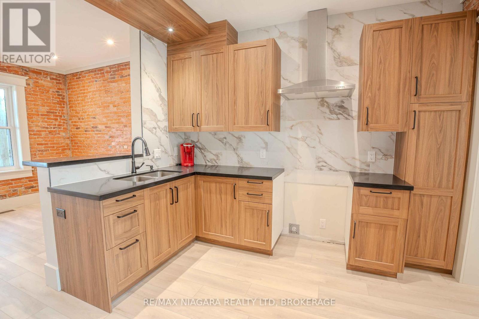 Absolutely stunning transformation! This fully renovated gem in the heart of St. Catharines is an absolute must-see! Bursting with character, the exposed brick interior adds charm and warmth, while sleek modern finishes bring a fresh, upscale feel. Featuring 2 spacious bedrooms, 2 stylish bathrooms, and a fully fenced backyard perfect for relaxing or entertaining. No rear neighbours and unbeatable convenience - just a short stroll to local amenities and minutes from the QEW, 406, Pen Centre, Niagara Outlet Mall, Brock University, and Niagara College. Full, unfinished basement is ideal for additional storage. Leased until Dec 31st 2025 (id:64974)
