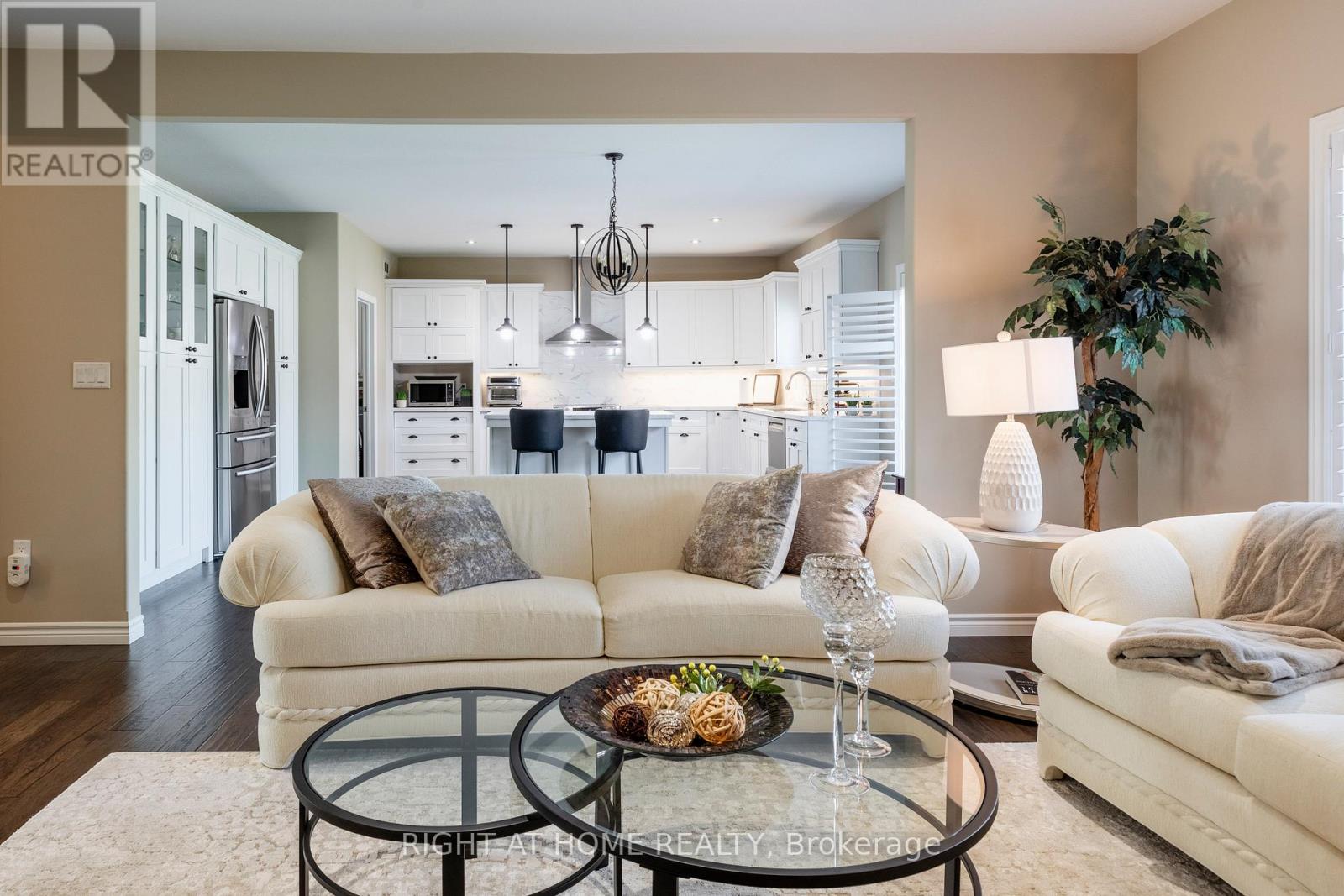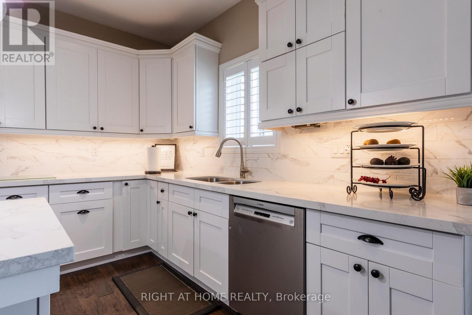 Immaculate and move-in ready, this exceptional family home is nestled in one of Port Dover's most sought-after communities. Welcome to 6 Bluenose Drive conveniently located near premier golf courses, excellent restaurants, and the town's renowned sandy shoreline. From the moment you arrive, the home's impressive curb appeal stands out, featuring well-kept landscaping, a modern concrete driveway, and a charming covered entrance with double doors that lead inside. The interior is thoughtfully designed for hosting, showcasing a spacious kitchen any cook would appreciate complete with ample cabinetry, quartz countertops, a stylish tile backsplash, and a central island that flows into a generous living area featuring a striking floor-to-ceiling stone fireplace. The main floor also includes two guest bedrooms, a full four-piece bathroom, and a roomy primary suite offering a spa-inspired five-piece ensuite and a walk-in closet with plenty of storage. Access the fully finished lower level through the laundry/mudroom conveniently situated off the attached double garage. Downstairs, you'll find an extensive layout that includes two more bedrooms, a three-piece bath, an exercise room, and a massive recreation room with its own fireplace perfect for entertaining or cozynights in. Step outside to a large deck that overlooks a fully fenced backyard, ideal for outdoor gatherings or peaceful relaxation. This home checks all the right boxes-perfect for families or anyone seeking the ease of main floor living. Room sizes approximate. (id:64974)