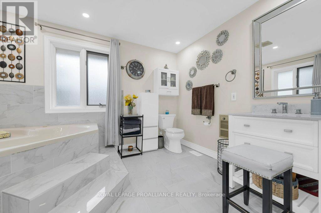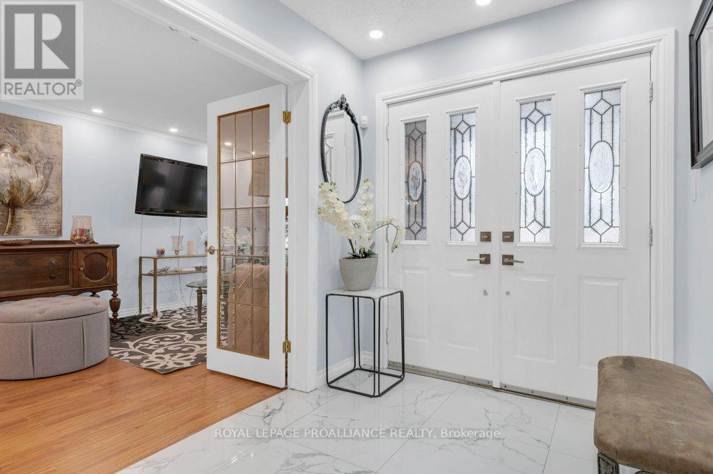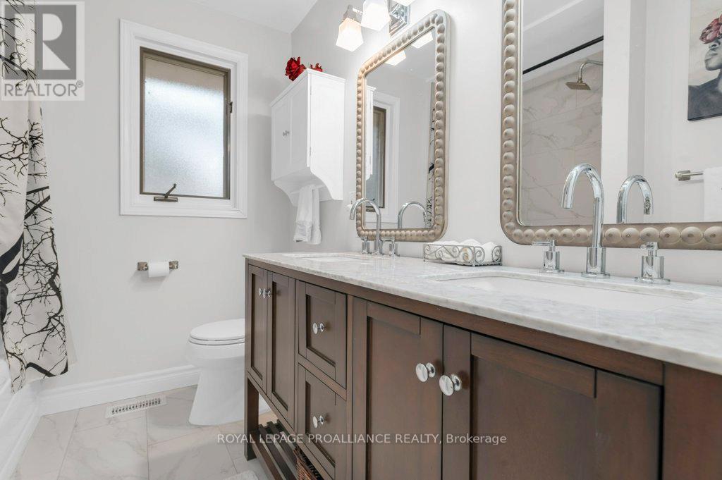 Beautifully updated 2-storey home backing onto green space in a desirable Trenton neighbourhood. This spacious 4+1 bedroom, 4 bathroom home offers a functional layout ideal for growing families or multi-generational living. The renovated kitchen features modern finishes and ample space for everyday living and entertaining, while updated bathrooms provide comfort and style throughout. The fully finished basement adds valuable additional living space with in-law potential, offering flexibility for extended family or guests. Enjoy the privacy of a backyard that backs onto green space, creating a quiet and natural setting. Complete with an attached garage and located in a family-friendly neighbourhood close to schools, parks, and local amenities. A great opportunity to own a move-in ready home in a sought-after area - book your showing today. (id:64974)