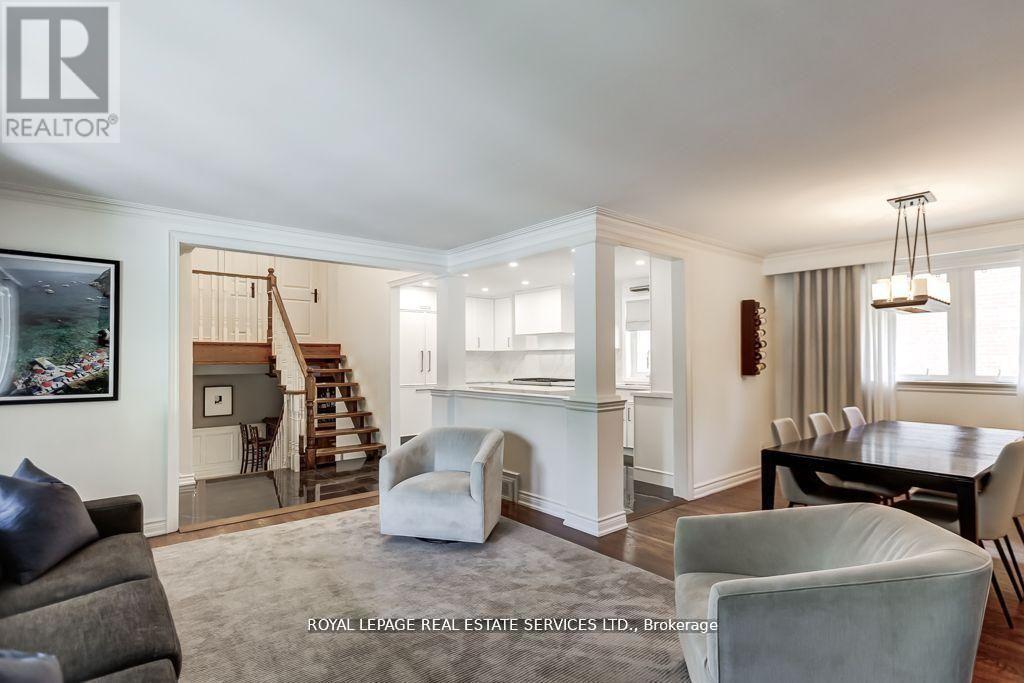 The property is situated in the highly desirable Edenbridge-Humber Valley neighbourhood, just steps away from a newly built elementary school (completion 2027) and within walking distance to the beautiful James Gardens Park and Humber River trails.This 2023 renovated sidesplit offers a bright, open-concept main floor anchored by a fully updated kitchen. The space is enhanced by large windows, pot lights, and hardwood flooring throughout, creating a clean and cohesive aesthetic.The upper level features three well-proportioned bedrooms, including a primary suite with a renovated two-piece ensuite and a generous closet complete with custom built-ins.The above-grade lower level provides additional living space with a comfortable family room and direct walkout access to the private backyard, offering seamless indoor-outdoor flow.. Short drive to all area highways, transit, shopping and future Eglinton crosstown LRT. Richview school district. (id:64974)