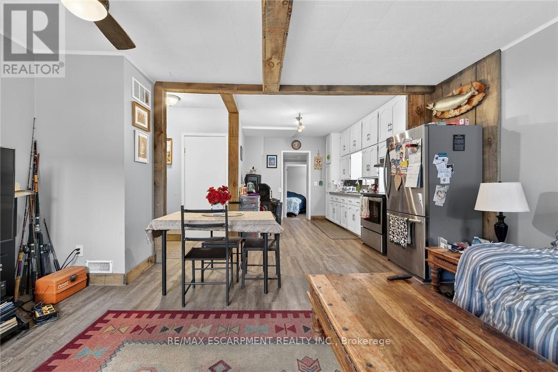 Prime Downtown Office/Retail/Rental Apartment Opportunity- located in the heart of downtown Cayuga with excellent exposure and high traffic visibility. Zoned CD- Downtown Commercial. This multi-functional property caters to a wide range of professional business types and presents a fantastic opportunity for investors looking to grow their portfolio, entrepreneurs starting out or expanding and established business owners looking for a new office location. The main level is complete with a kitchenette, 2 piece bath, ample storage and features big bright display windows. Street level entrance to the main floor allows for full accessibility. The basement is an ideal space for even more office/business storage. The main level can be rented for $1400 monthly + hydro. The upper level is a 2 bed, 1 bath apartment occupied by tenant paying $1423 monthly + hydro. The building has been very well maintained and remains in great shape with multiple upgrades made over the years to the flooring, bathrooms, kitchen, HVAC systems and plumbing. Hydro is separate for the main floor and apartment above. Upgraded alarm system and cameras for added security. Ample street parking for staff and clients. Solid construction, practical layout, and a central location make this property ideal for medical, professional, retail or service-based businesses seeking convenience and visibility in a growing community. The opportunities this building provides are limitless. Run your business and live upstairs OR have the tenant help pay the mortgage OR earn income and equity renting both spaces. (id:64974)
