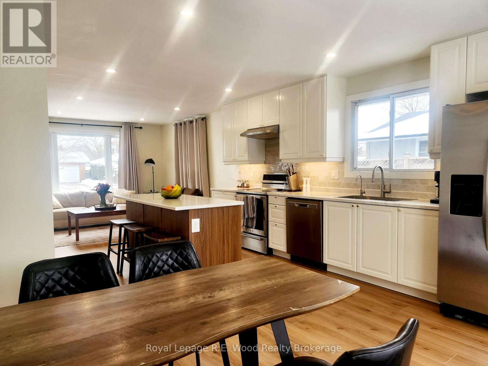Welcome to this beautifully remodeled 3+1 bedroom, 2 bathroom home, perfectly situated on a quiet street just steps from the local rec center. Thoughtfully updated and move-in ready, this home blends modern finishes with comfortable family living. Step inside to a brand new kitchen designed to impress, featuring stylish cabinetry, updated fixtures, and a bright eat-in area perfect for casual meals or entertaining. The adjoining living room has also been completely refreshed, creating a warm and inviting space to gather. New flooring throughout the home adds a seamless, contemporary feel. From the kitchen, patio doors lead to a gorgeous deck, overlooking a generously sized backyard - ideal for summer barbecues, kids, pets, or simply relaxing outdoors. Downstairs, the fully finished basement offers incredible additional living space, including a spacious rec room, a large fourth bedroom or flex room, and an impressive oversized bathroom. Additional major updates include a new roof (2025) and an on-demand water heater, providing peace of mind for years to come.With modern upgrades, ample space, and a fantastic location in a family-friendly neighbourhood, this home truly has it all. Don't miss your opportunity to make it yours! (id:64974)