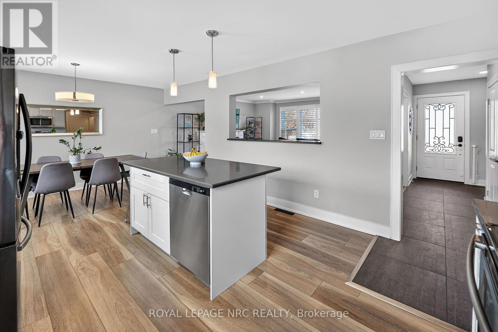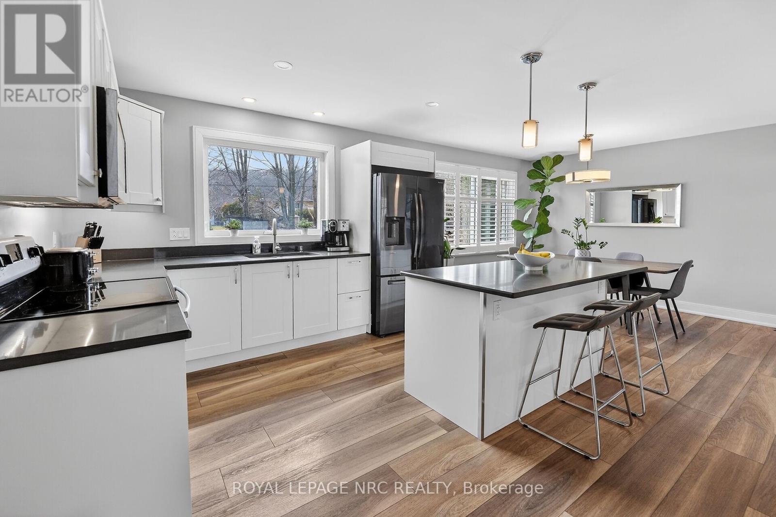 Much sought after south end neighbourhood. Outstanding curb appeal with stately pillars, and a covered porch . This gorgeous, updated, 4 bedroom two story is situated on a large 70x210 ft lot at the end of the cul de sac. Excellent and safe family friendly area. Close to great schools including Brock University. A short walk for city transit and close to shopping and all amenities. This home does not disappoint! Tastefully renovated from top to bottom. Walk through the front door to a welcoming foyer that leads to a large living room complete with a natural wood fireplace. The combined kitchen/dining area is a great place to entertain and enjoy a family meal together. The kitchen has been enhanced with new cabinetry, stainless steel appliances and a large island with quartz counter tops. A two piece bathroom is conveniently located on the main floor as well as a bonus, 3 seasoned sunroom adding an additional 180 sq ft. The new tile and pet friendly luxury vinyl floors add class and style to the main and lower levels.. Upstairs you will find a spacious primary bedroom, 3 additional bedrooms and an updated 4 pc bathroom. Descend to the lower level where there is a large recreation room, 4 pc bathroom and additional room that could be used as an office, playroom, bedroom etc. Enjoy countless hours of fun and entertaining in the huge, fully fenced backyard. Lots like this are a rare find! The exterior has been refreshed with new exposed aggregate concrete driveway and stamped walkways, newer exterior doors and windows and extensive landscaping and large stamped patio out back complete with a pergola. (id:64974)