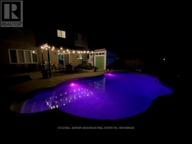 Welcome to this exceptional 2-storey, 2,400 sq.ft. family home perfectly situated on a premium corner lot in one of the area's most sought-after locations. From the beautiful stone and stucco exterior to the private inground pool oasis, this property offers the ideal blend of luxury, space, and lifestyle. Step inside to find hardwood flooring throughout most of the home, complemented by ceramic tile in key areas. The main floor features a spacious living room with a cozy gas fireplace, a large formal dining room, and a bright kitchen complete with a generous size island and granite countertops, servery/butler's pantry, and plenty of cabinetry-perfect for cooking, hosting, and everyday family living. Upstairs, you'll find three oversized bedrooms, each with walk-in closets, plus an upper loft ideal for a second family room, office, or kids' zone. The primary suite boasts a spa-like ensuite with a relaxing soaker tub. The main floor also includes laundry, direct access to the double garage, and a layout designed for comfort and convenience. Outside is where this home truly shines: a gorgeous, private backyard featuring mature landscaping, fully turfed lawn, lounging areas, and a sparkling inground pool-your own personal retreat. The lower level is roughed-in for a 4th bathroom and offers a blank canvas ready for your finishing touches, whether you envision a rec room, gym, or extended living space. (id:64974)