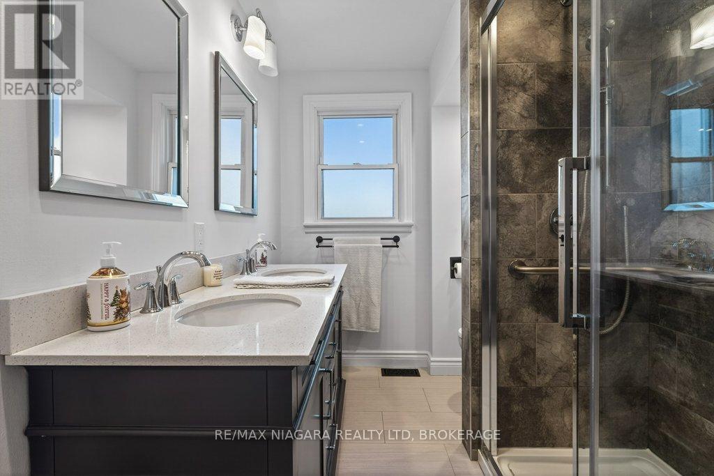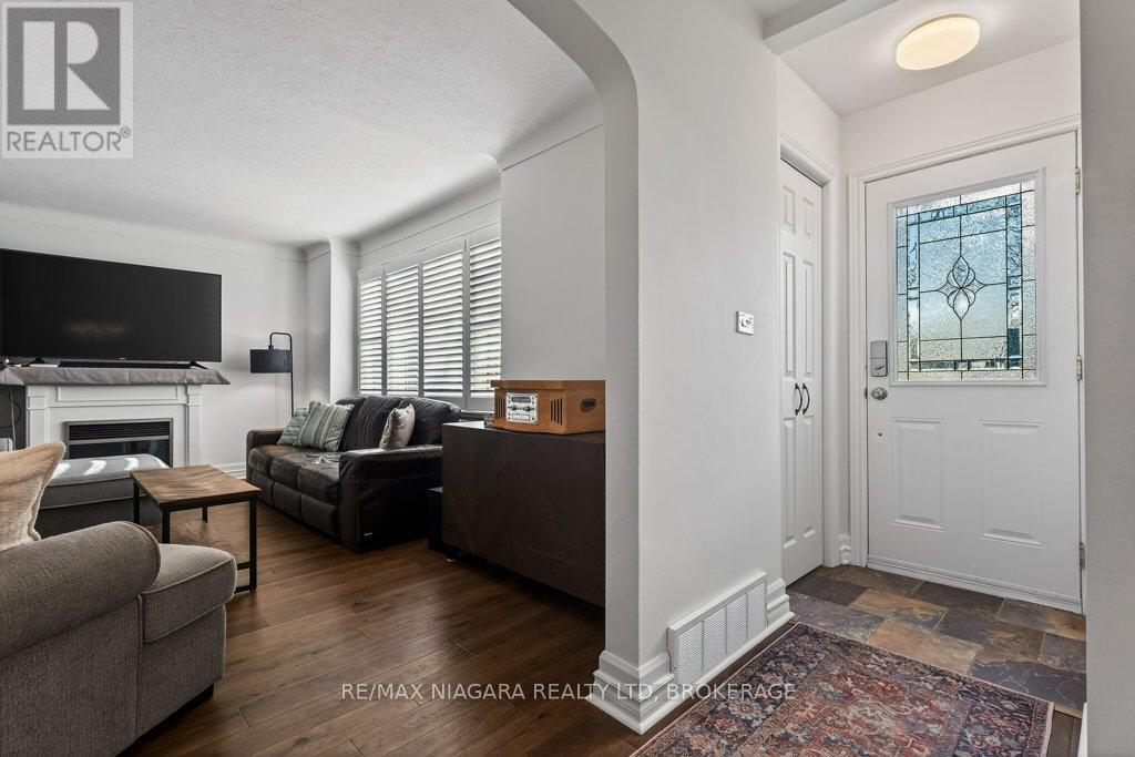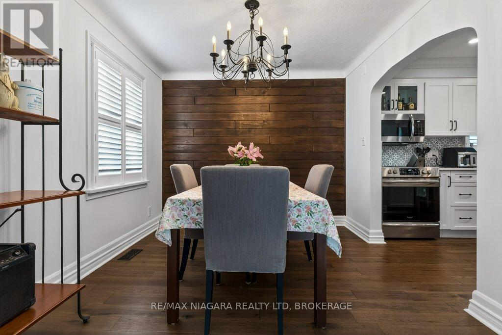 Welcome to this beautifully renovated 1.5-storey residence, ideally situated on a quiet, sought-after street in North End St. Catharines. Thoughtfully redesigned with both style and function in mind, this home offers 3+1 bedrooms across three impeccably finished levels.The main floor showcases effortless living, featuring a spacious primary bedroom and elegant 4-piece bathroom, perfect for convenience and comfort. Upstairs, you'll find two generously sized bedrooms, each offering warmth and charm.The fully finished lower level is a true extension of the home's living space, complete with a large recreation room, an additional bedroom or private office, a 2-piece bath, and a well appointed laundry area ideal for family living or hosting guests.Extensive upgrades elevate the home throughout, including a stunning designer kitchen (2020), rich engineered hardwood flooring on the main level (2020), plush basement carpeting (2020), and a new garage door (2020).Step outside to your own private retreat, an expansive lot with exceptional outdoor living space, highlighted by a relaxing hot tub which is perfect for entertaining or unwinding in total privacy. (id:64974)