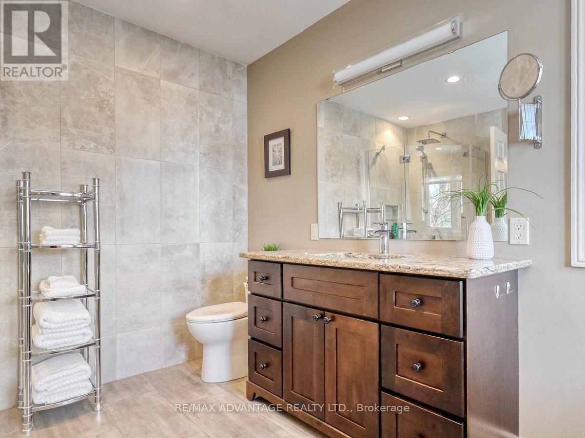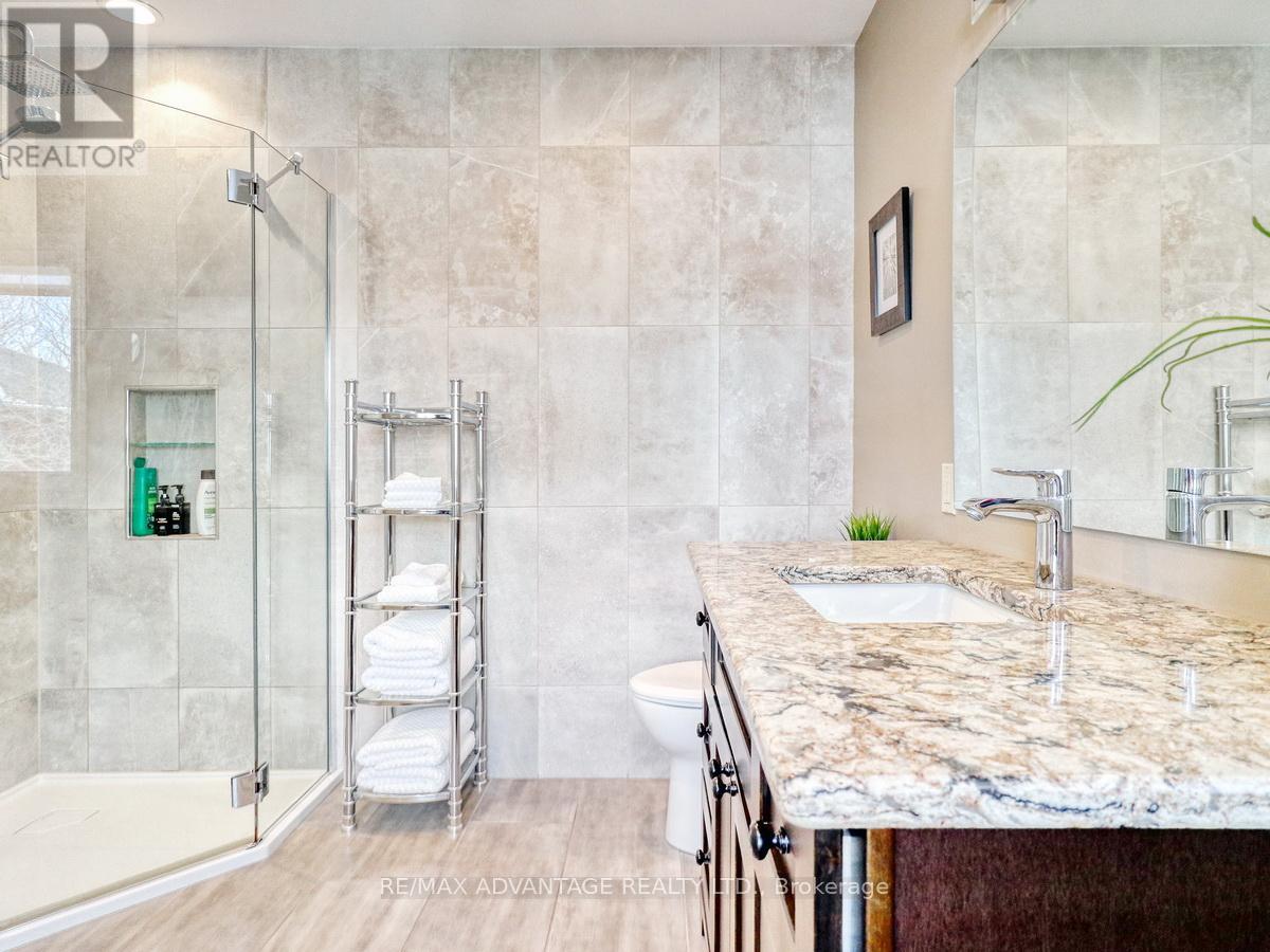 Superb family home in the popular Hazelden North area in beautiful West London! Great schools, great shopping, golf courses, and an abundance of parks with walking trails! Spacious Rooms throughout! Quality kitchen with stainless steel appliances and granite counters open to spacious family room with beautiful wood burning insert fireplace and open shelving. Tall trees visible through all windows! All hardwood and tile floors on upper 2 levels other than bedrooms. Spacious master bedroom suite with enlarged walk-in closet and renovated ensuite with free-standing soaker tub. Finished open recreation/games area in basement with bar and gas fireplace! Rough-in for basement bath plus lots of additional storage. Owned water heater. Shingles 2018. Windows (except front bay) replaced. High Quality Custom window coverings. This beautiful home in one of the prettiest areas in the city is a must see and a great place to raise a family! Showings by appointment only - call today! (id:64974)
