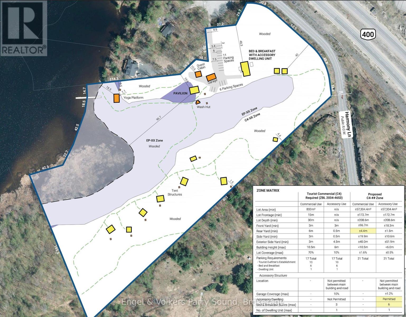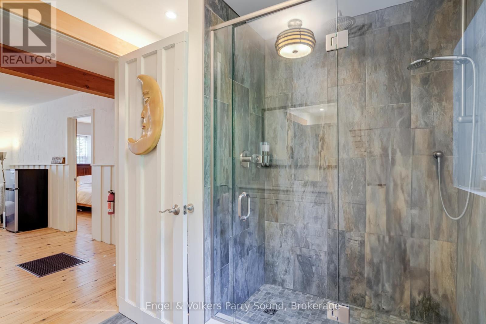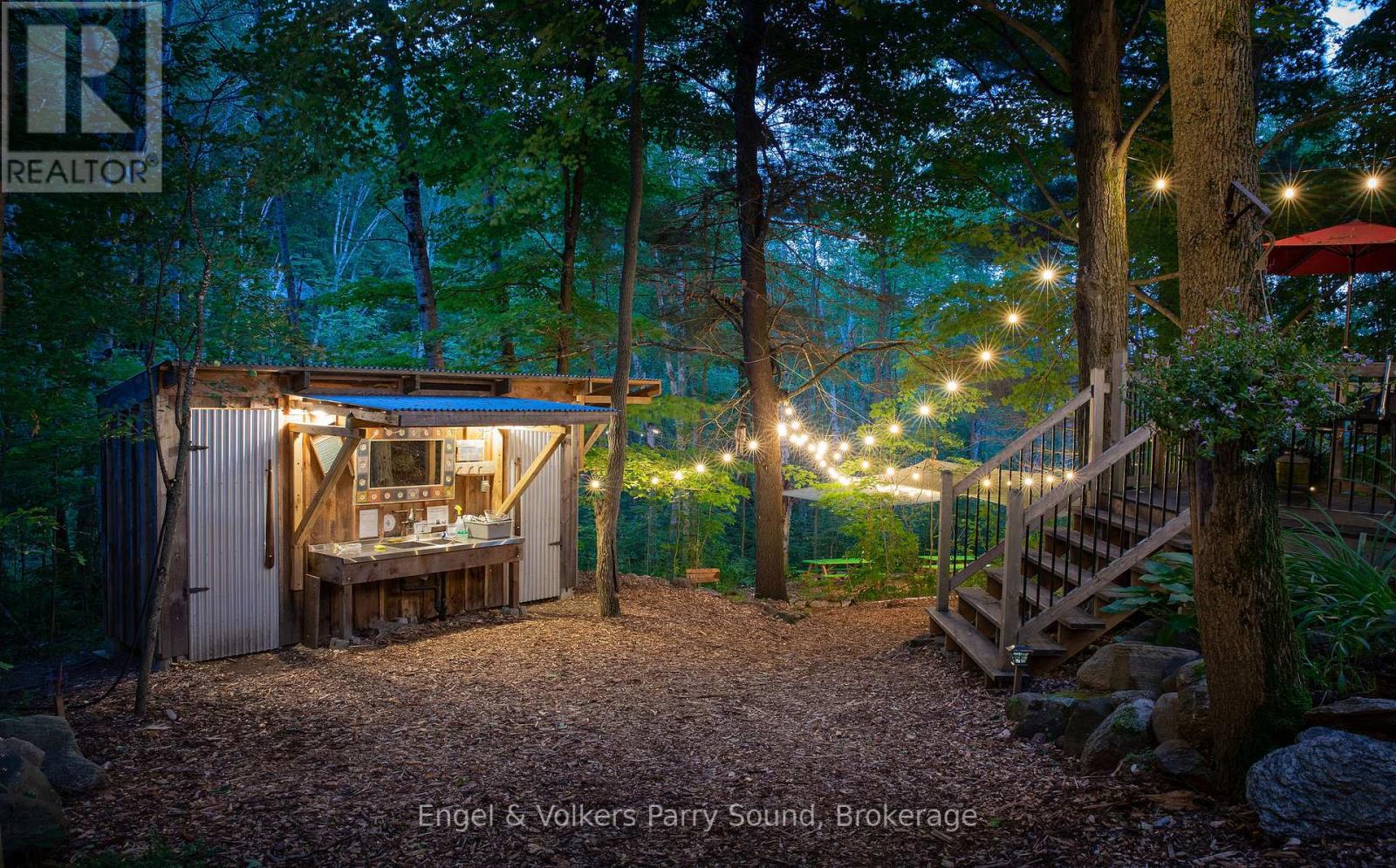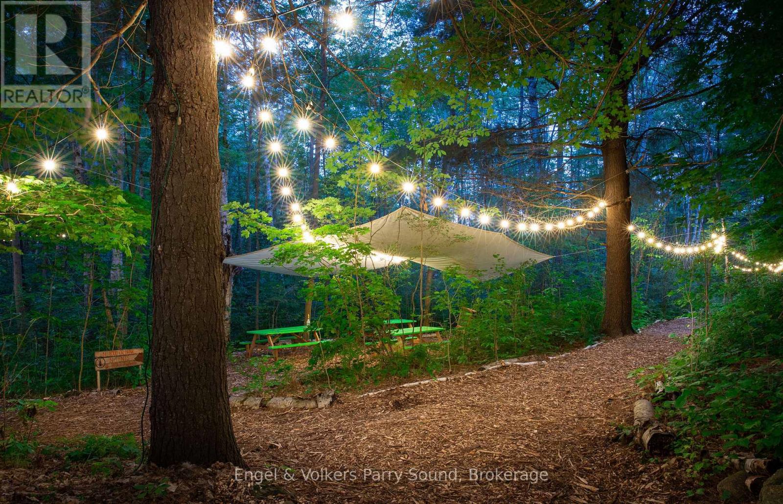 Rare Commercial Waterfront Opportunity in Parry Sound - Harmony Outdoor Inn. A truly rare opportunity to acquire Parry Sound's only waterfront hospitality retreat or use personally for your own private oasis! This well-established and highly rated business sits on 14.16 acres of commercially zoned waterfront land, boasting nearly 500 feet of shoreline on the scenic Seguin River and surrounded by tranquil forest trails. Minutes from the downtown core, yet immersed in nature, this unique property offers an unparalleled fusion of seclusion and convenience. Zoned for six guest suites and up to ten campsites or tourist accommodation units (up to 500 SF each), the property presents a tremendous opportunity for a visionary entrepreneur or outdoor enthusiast seeking to grow an already thriving enterprise. The main house features three bedrooms, further sleeping accommodations in the lower level, and inviting open concept common living and dining spaces. Two wood burning fireplaces on the main floor and lower level. A thoughtfully designed Pavilion anchors the property, offering guests, friends & family a communal hub for dining, working remotely, or relaxing after a day of adventure. Seven glamping-style campsites are already in place, each outfitted with eco-conscious, chemical-free composting outhouses. At the waters edge, guests enjoy a sandy beach, dock, yoga platform, fire-pit and serene riverfront vistas ideal for kayaking, canoeing, stand-up paddle-boarding, or simply unwinding by the water. In the winter, the experience transforms with snowshoeing, skating, and cozy fireside moments, offering four-season revenue potential. This is a once-in-a-generation offering; a fully zoned, turnkey hospitality retreat or personal oasis. All within moments of Parry Sound's vibrant shops, restaurants, and hospital, with direct highway access. A premier investment and lifestyle opportunity unlike any other in the region. (id:64974)