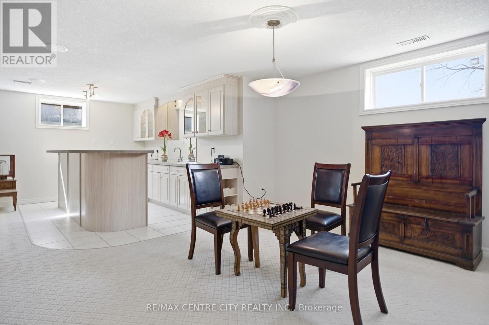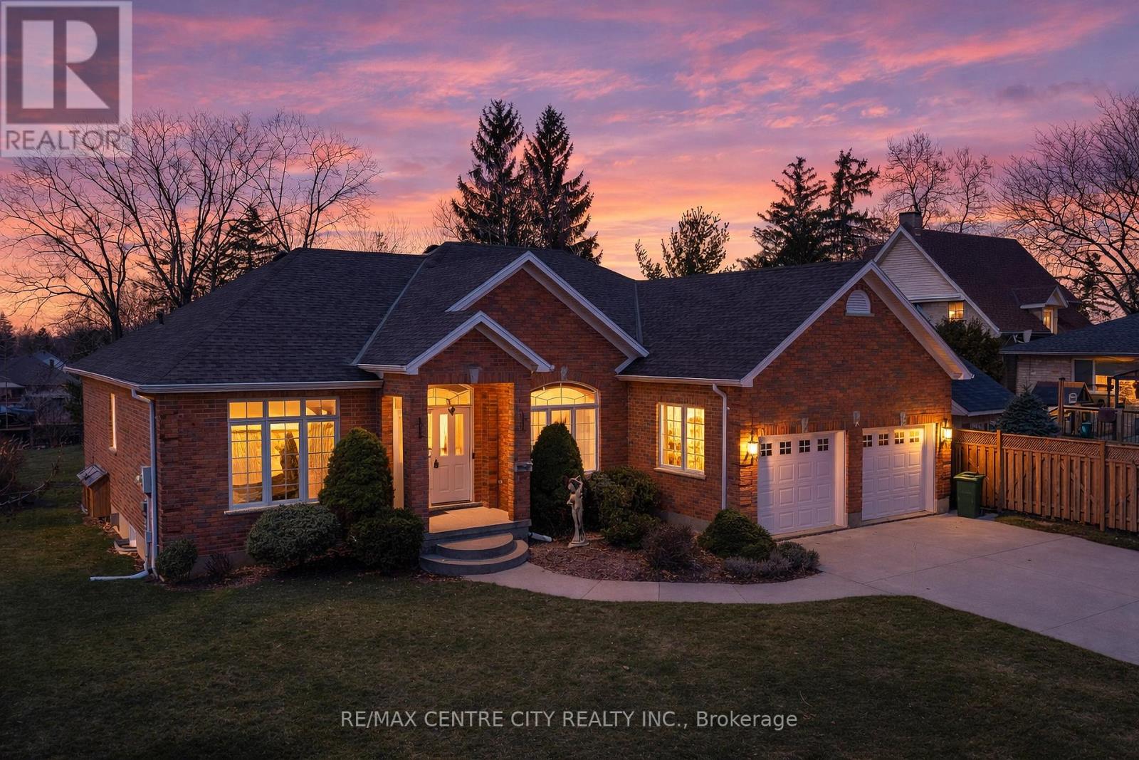 Welcome to this impressive all-brick executive bungalow offering approximately 2,300 sq ft on the main level plus a beautifully finished lower level, delivering nearly over 4,500 sq ft of total living space. This spacious home features 3+1 bedrooms and 3 full bathrooms, designed for both elegant living and everyday comfort. Step inside to soaring 10-foot ceilings, maple hardwood floors, oversized windows, with transoms that flood the home with natural light and create a bright, open atmosphere throughout the main level. The thoughtfully designed layout includes an inviting living room anchored by a stunning gas fireplace, a large formal dining room perfect for entertaining, a generous eat-in kitchen with hard-surface countertops, a large pantry, and a breakfast bar area. Convenient main floor laundry adds to the home's practicality. The primary suite offers a private retreat with a walk-in closet and a luxurious 4-piece ensuite bath. The fully finished lower level provides exceptional additional living space featuring a large recreation room with a gas fireplace and wet bar, an entertaining area, a den/craft room, along with an additional bedroom, a full bathroom, 2 cold rooms and a second full kitchen. This is an ideal setup for an in-law suite or multigenerational living. Situated on a quiet terrace in a desirable location, this home offers close proximity to shopping with easy access to Port Stanley and London, making it ideal for those seeking both convenience and lifestyle. Outside, enjoy the partially fenced yard, large double concrete driveway with parking for 6, oversized double car garage and rear covered porch with a gas BBQ hookup. Additional Features & Updates, Furnace (2018), Central Air (2012), Roof (2013), fresh air exchanger system, owned water heater.A rare opportunity to own a spacious executive bungalow offering nearly 4,500 sq ft and has in-law capabilities, located in a peaceful yet convenient location. (id:64974)