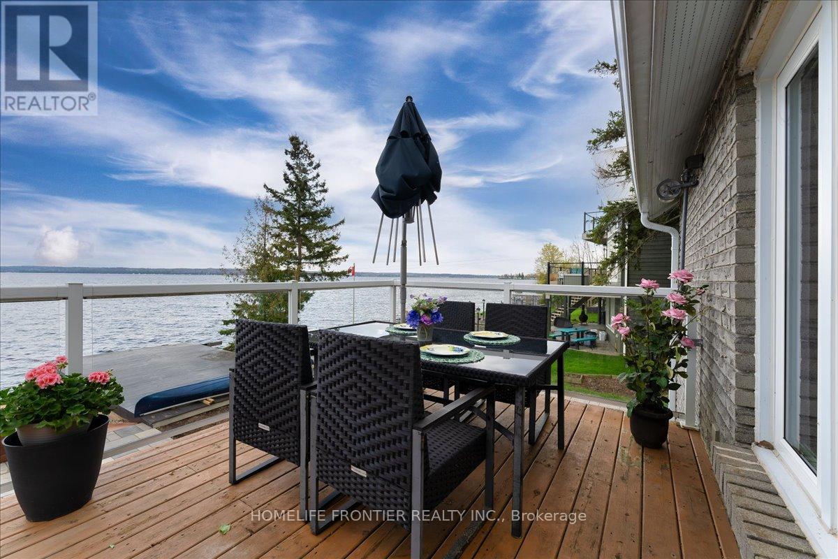 Stunning Lakefront Retreat with Breathtaking South-Facing Views of Sturgeon Lake! This exceptional 4-season home offers a rare chance to embrace the ultimate lakeside lifestyle, featuring panoramic south-facing views of the pristine waters of Sturgeon Lake. Enjoy these spectacular vistas from the spacious bedroom, living room, & kitchen, all designed to maximize natural light & showcase the surrounding beauty. Set on a beautifully landscaped lot, this home is a water lover's dream. It boasts a renovated wet slip boathouse for storage, a newly built sauna for relaxation, & a sprawling deck perfect for entertaining or unwinding while taking in the view. The seaweed-free, crystal-clear waterfront is ideal for swimming, boating, fishing, & water sports. The large dock offers ample space for gatherings or quiet moments, with incredible lake views in all directions. Just steps away, enjoy 2 nearby golf courses, snowmobile & ATV trails, & miles of boating along the Trent-Severn Waterway. Easy access to Lindsay, Fenelon Falls, & Bobcaygeon ensures convenience. Inside, the home impresses with a newly renovated 3-piece bath, a kitchen with sleek quartz countertops, center island, & open-concept living/dining area featuring a cozy wood-fire stove. The spacious primary bedroom has a luxurious 5-piece ensuite, while 3 additional lower-level bedrooms (1 with a fireplace) offer ample space for family & guests. Recent upgrades totaling over $200K include professional landscaping, utility ramp, indoor storage, & water filtration system. Dual heating (baseboard & heat pump) ensures comfort year-round. Thoughtful touches like a dog bathroom, underdeck ceiling with drainage, & a veggie garden with irrigation add even more appeal. Whether a full-time home or perfect cottage getaway, this incredible property offers everything you need for lakeside living. (id:64974)