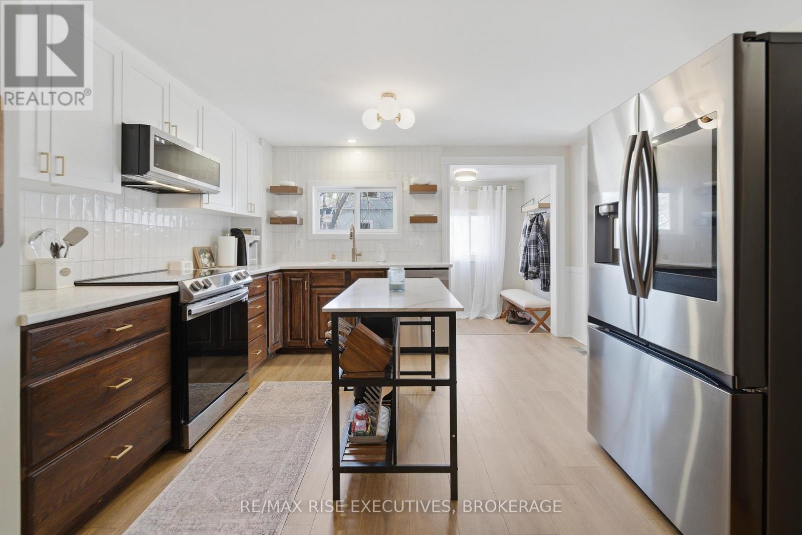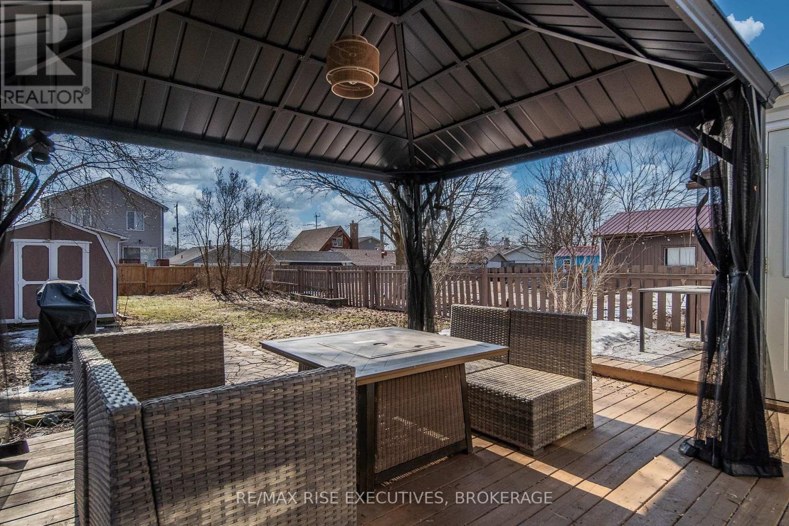 Welcome to 6 Leopold Street, a beautifully maintained and thoughtfully updated 3-bedroom,2-bath home located in a convenient Quinte West neighborhood just minutes from downtown, CFBTrenton, shopping, schools, parks and Highway 401. The main floor features a spacious openkitchen and dining area, refreshed with new flooring throughout (2025) along with updatedcabinetry, countertops and backsplash (2023), creating a bright and modern space perfect foreveryday living and entertaining. The inviting living room offers plenty of natural light andconvenient walk-out access to the large deck overlooking the fully fenced huge backyard. TheMain floor also includes laundry, a 2- piece bathroom, and a bedroom , along with a versatileadditional space that can be used as a mudroom, sitting area, playroom or additional storage.Upstairs you will find two additional bedrooms and a stunning fully renovated spa-inspiredbathroom (2023). This impressive 6-piece bathroom features a walk-in glass shower with dualshower heads, a freestanding soaking tub, and elegant tile finishes, offering a level of luxuryrarely found in homes at this price point.The backyard provides an excellent space for entertaining or relaxing, complete with a spaciousdeck, sitting area, large shed and an additional storage space. Additional updates include roof(2023), deck (2019), newer windows, and plumbing 2023. This move-in ready home offersincredible value for first-time buyers, investors, or military families looking for awell-maintained property close to CFB Trenton. (id:64974)