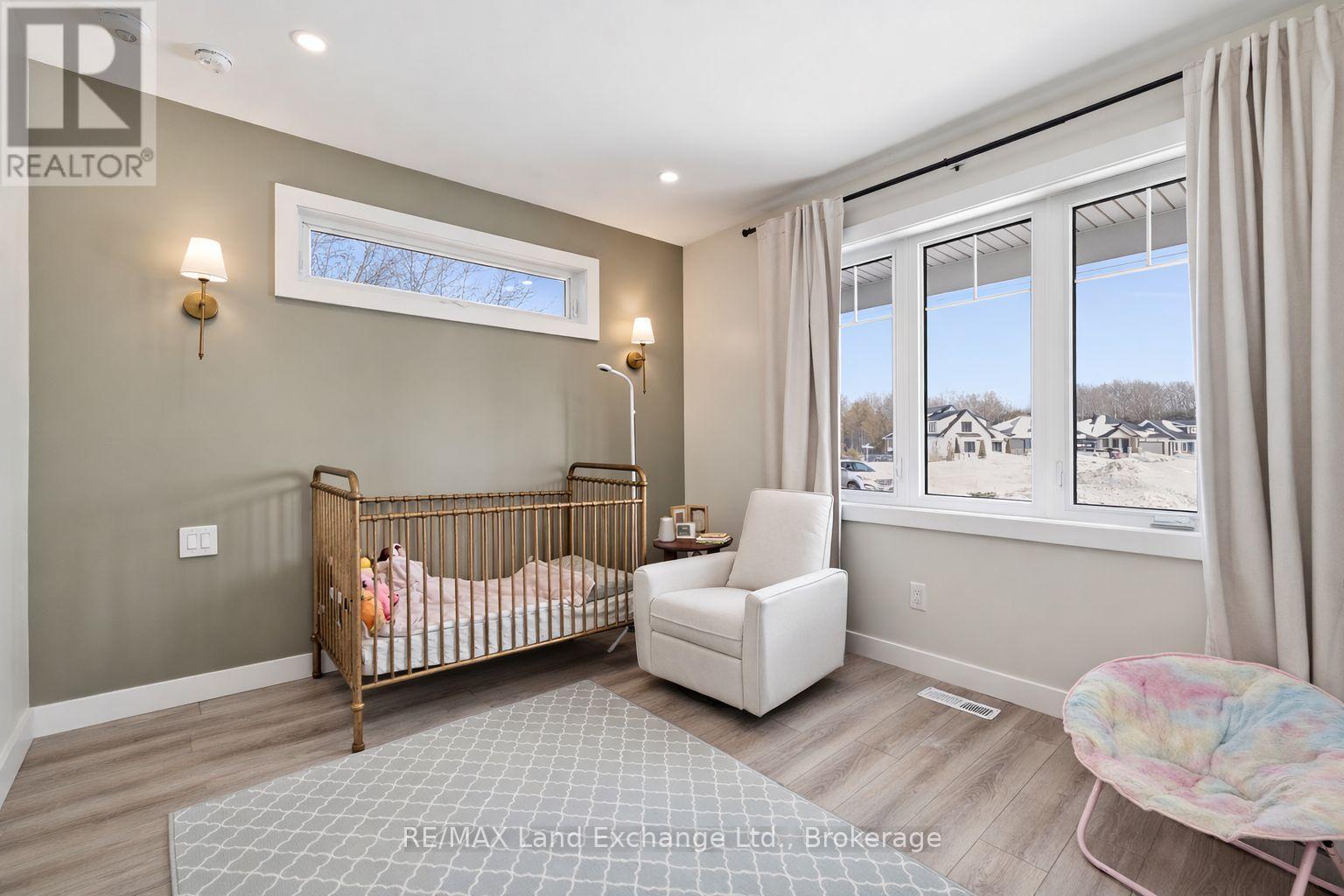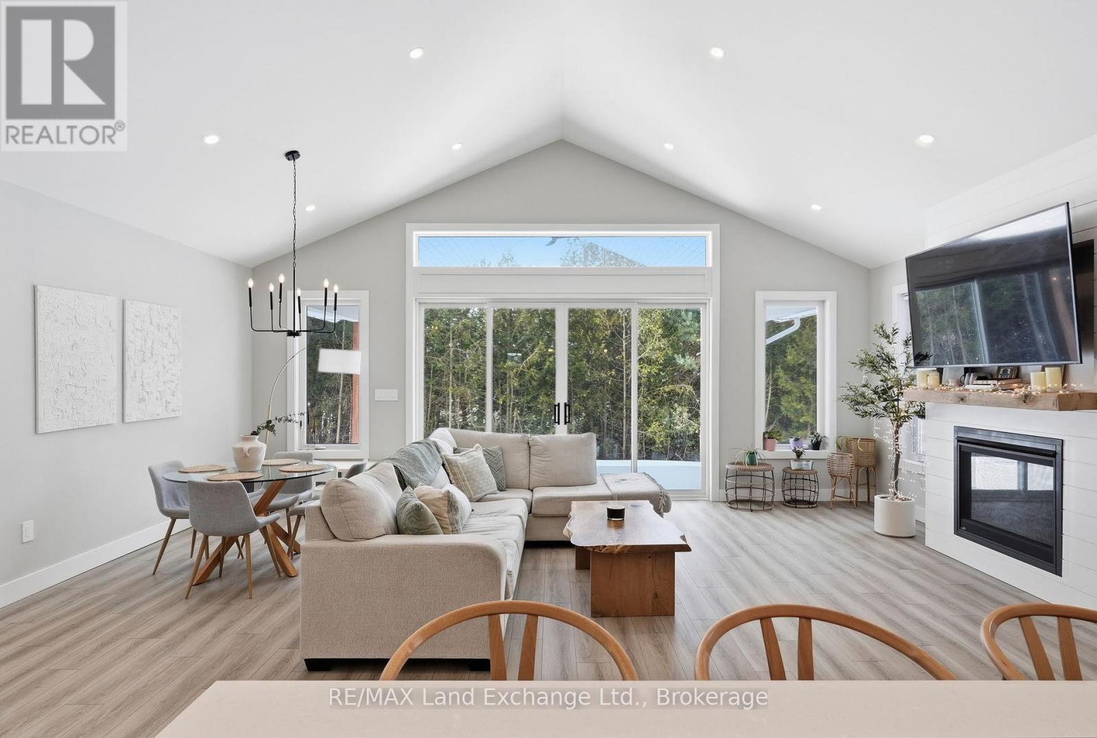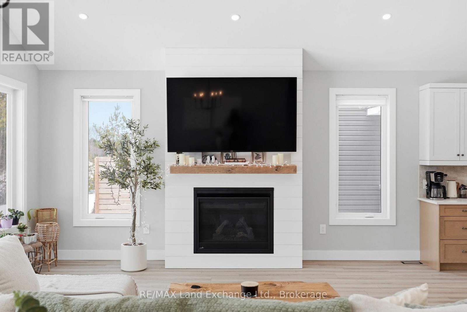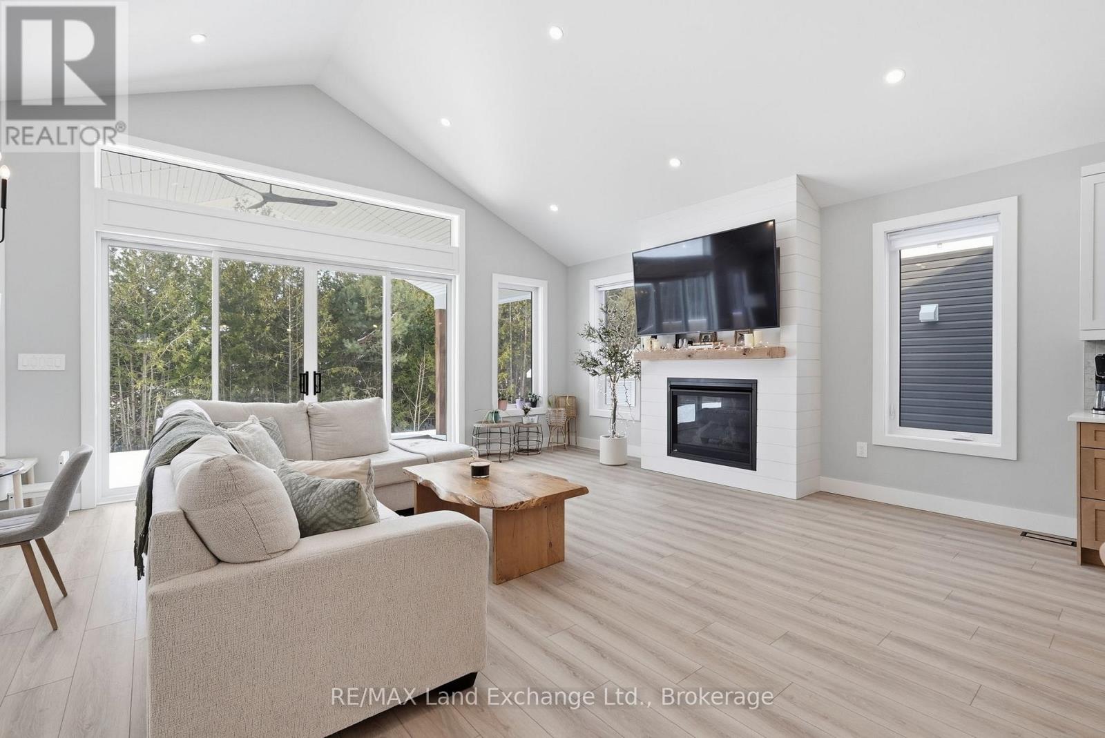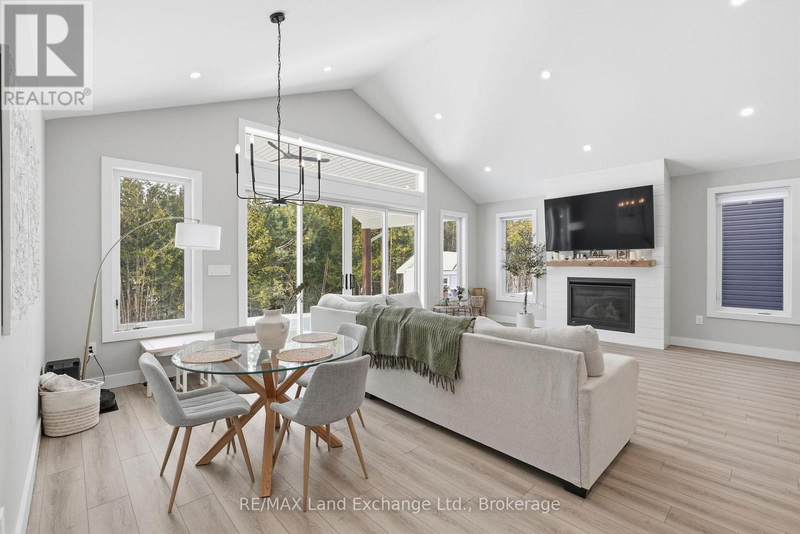 Welcome to 6 Marshall Place in the highly sought-after Southampton Landing community in beautiful Southampton. Built by renowned builder Alair Homes just four years ago, this thoughtfully designed 1,671 sq ft bungalow blends quality craftsmanship with stylish, family-friendly finishes. From the moment you step onto the covered front porch and into the spacious foyer, you'll appreciate the smart layout. At the front of the home, two generous bedrooms and a stunning 4-piece bath featuring custom tile work and a unique designer sink that adds personality and charm. Luxury vinyl plank flooring runs throughout-durable, scratch-resistant, and ideal for busy families or pets.The heart of the home is the breathtaking open-concept kitchen, living, and dining area, highlighted by cathedral ceilings and oversized patio doors that flood the space with natural light. The kitchen is a showstopper with white upper cabinetry, light oak lowers, a navy island, quartz countertops, custom shelving, and statement lighting. Built in stainless steel appliances all included. The cozy gas fireplace with shiplap surround creates a warm focal point for gatherings. Privately tucked at the rear of the home, the spacious primary suite offers built-in closet systems, and a luxurious 4-piece ensuite complete with a large tiled shower and double vanity. Even the laundry/mudroom off the oversized single car garage is elevated with custom cabinetry, drawers, and exceptional storage. The accessible crawl space adds even more practical storage options. Step outside to a generous covered back deck-perfect for summer entertaining and relaxing evenings. Move in, unpack, and enjoy everything Southampton has to offer this summer. Book your private showing today. (id:64974)