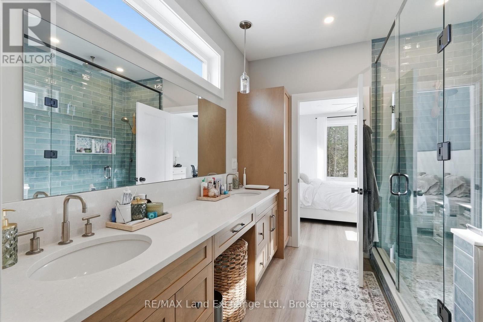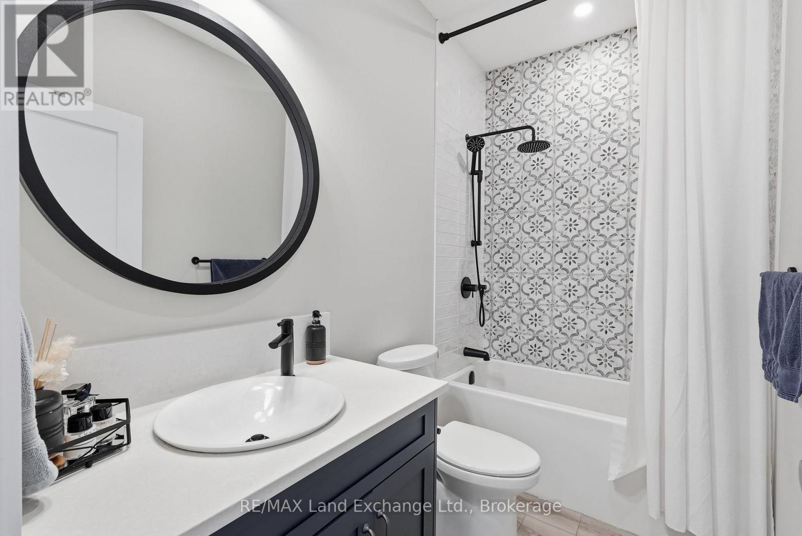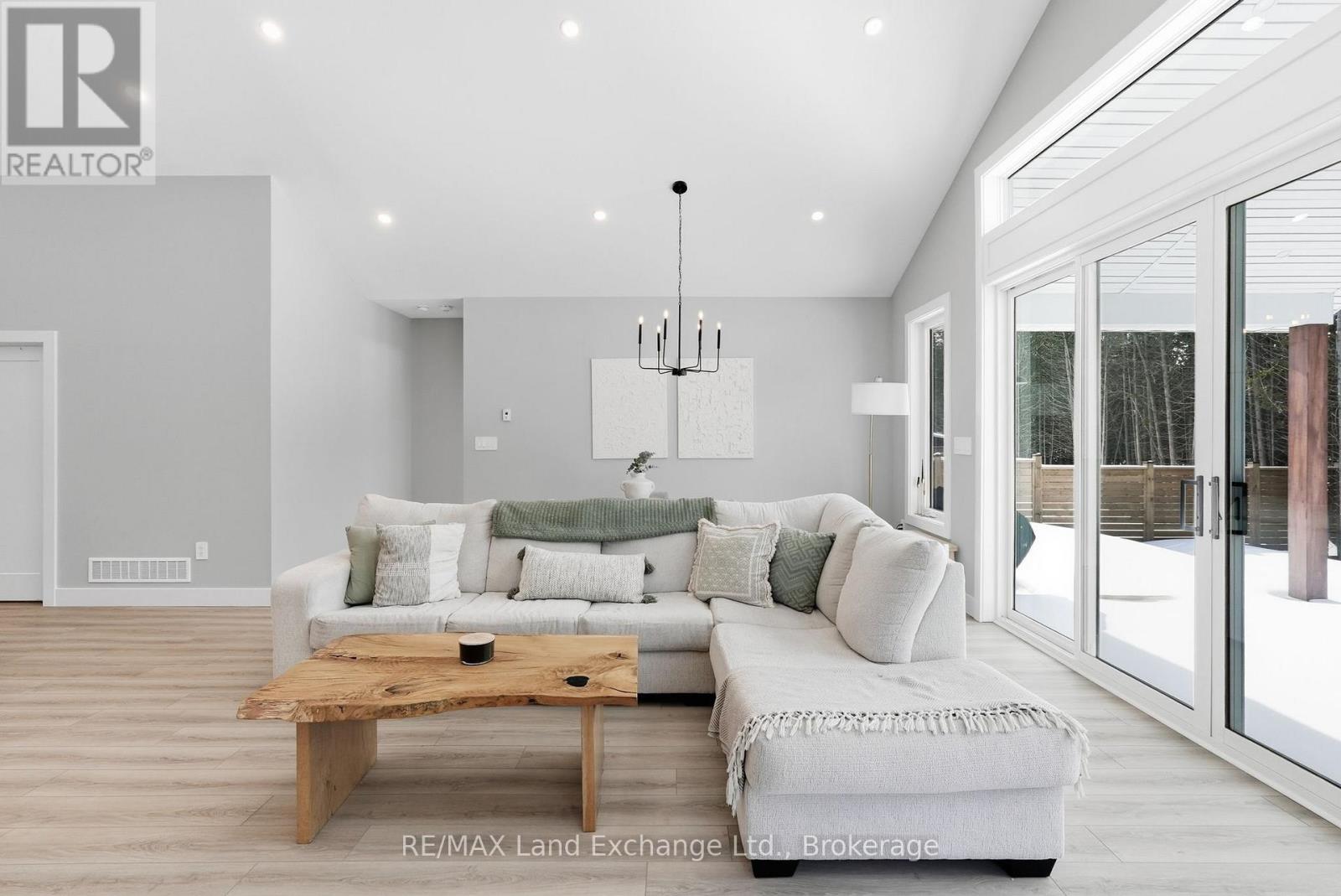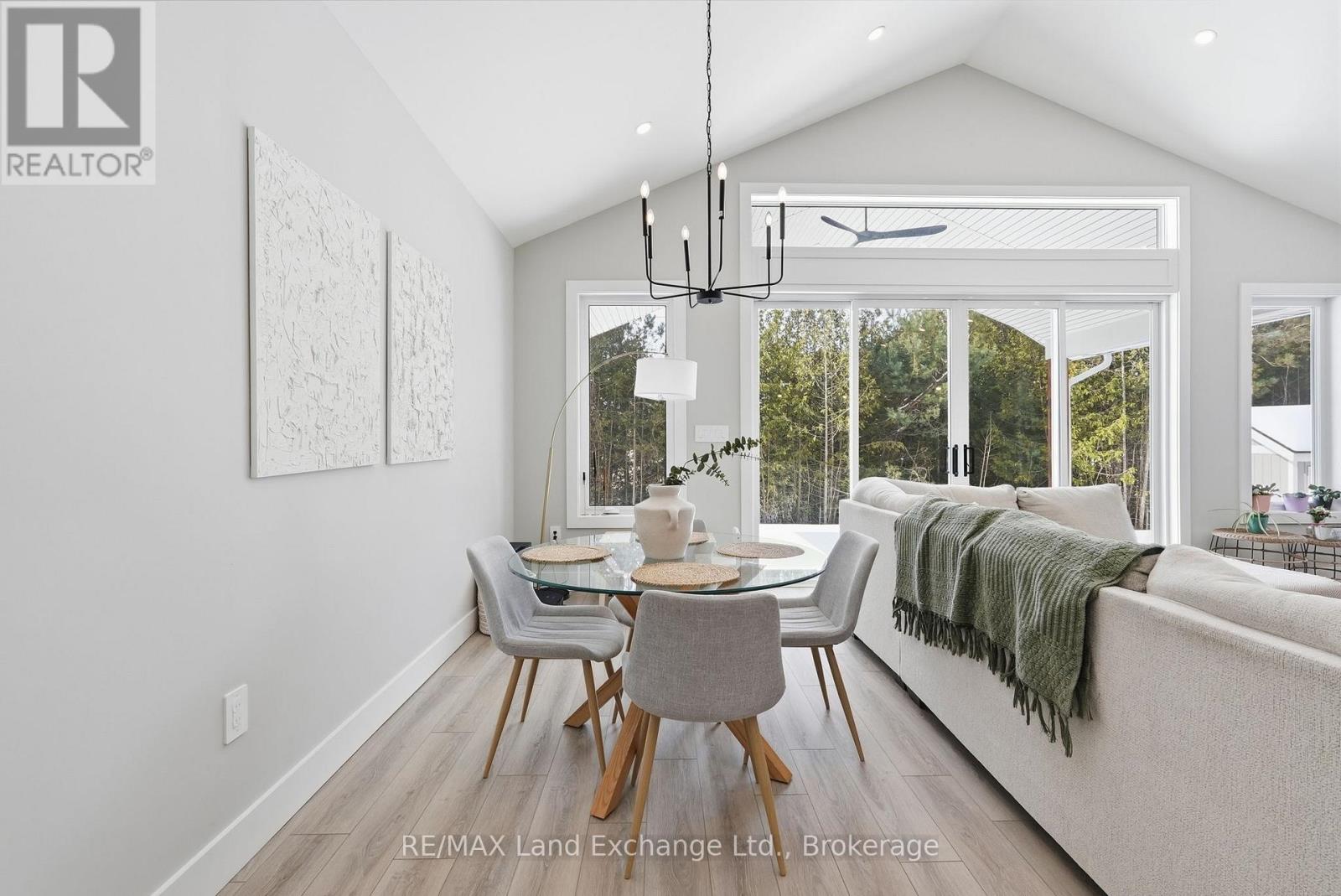 Welcome to 6 Marshall Place in the highly sought-after Southampton Landing community in beautiful Southampton. Built by renowned builder Alair Homes just four years ago, this thoughtfully designed 1,671 sq ft bungalow blends quality craftsmanship with stylish, family-friendly finishes. From the moment you step onto the covered front porch and into the spacious foyer, you'll appreciate the smart layout. At the front of the home, two generous bedrooms and a stunning 4-piece bath featuring custom tile work and a unique designer sink that adds personality and charm. Luxury vinyl plank flooring runs throughout-durable, scratch-resistant, and ideal for busy families or pets.The heart of the home is the breathtaking open-concept kitchen, living, and dining area, highlighted by cathedral ceilings and oversized patio doors that flood the space with natural light. The kitchen is a showstopper with white upper cabinetry, light oak lowers, a navy island, quartz countertops, custom shelving, and statement lighting. Built in stainless steel appliances all included. The cozy gas fireplace with shiplap surround creates a warm focal point for gatherings. Privately tucked at the rear of the home, the spacious primary suite offers built-in closet systems, and a luxurious 4-piece ensuite complete with a large tiled shower and double vanity. Even the laundry/mudroom off the oversized single car garage is elevated with custom cabinetry, drawers, and exceptional storage. The accessible crawl space adds even more practical storage options. Step outside to a generous covered back deck-perfect for summer entertaining and relaxing evenings. Move in, unpack, and enjoy everything Southampton has to offer this summer. Book your private showing today. (id:64974)